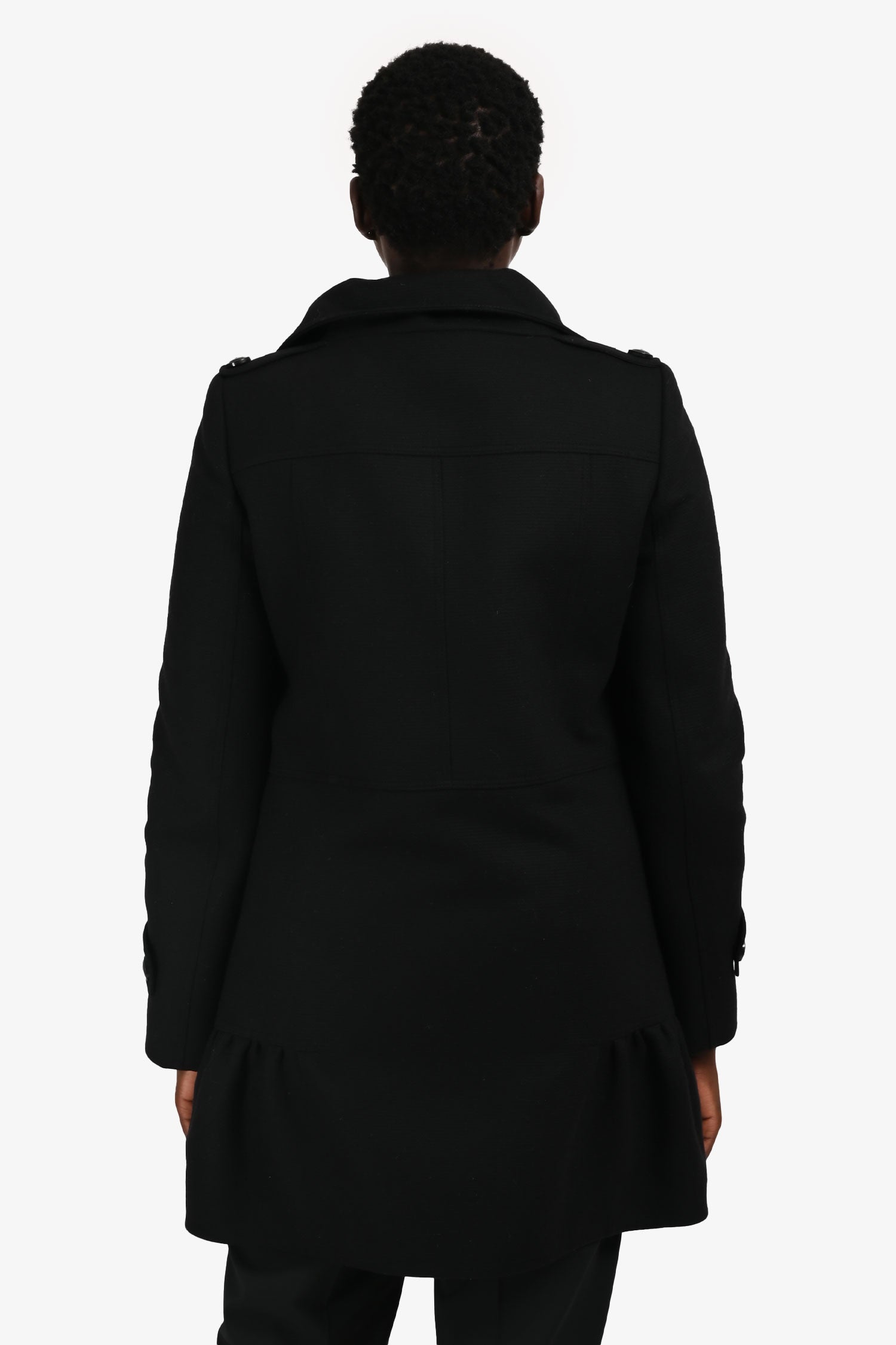 Burberry Black Wool/Cashmere Ruffled Hem Coat Size 8