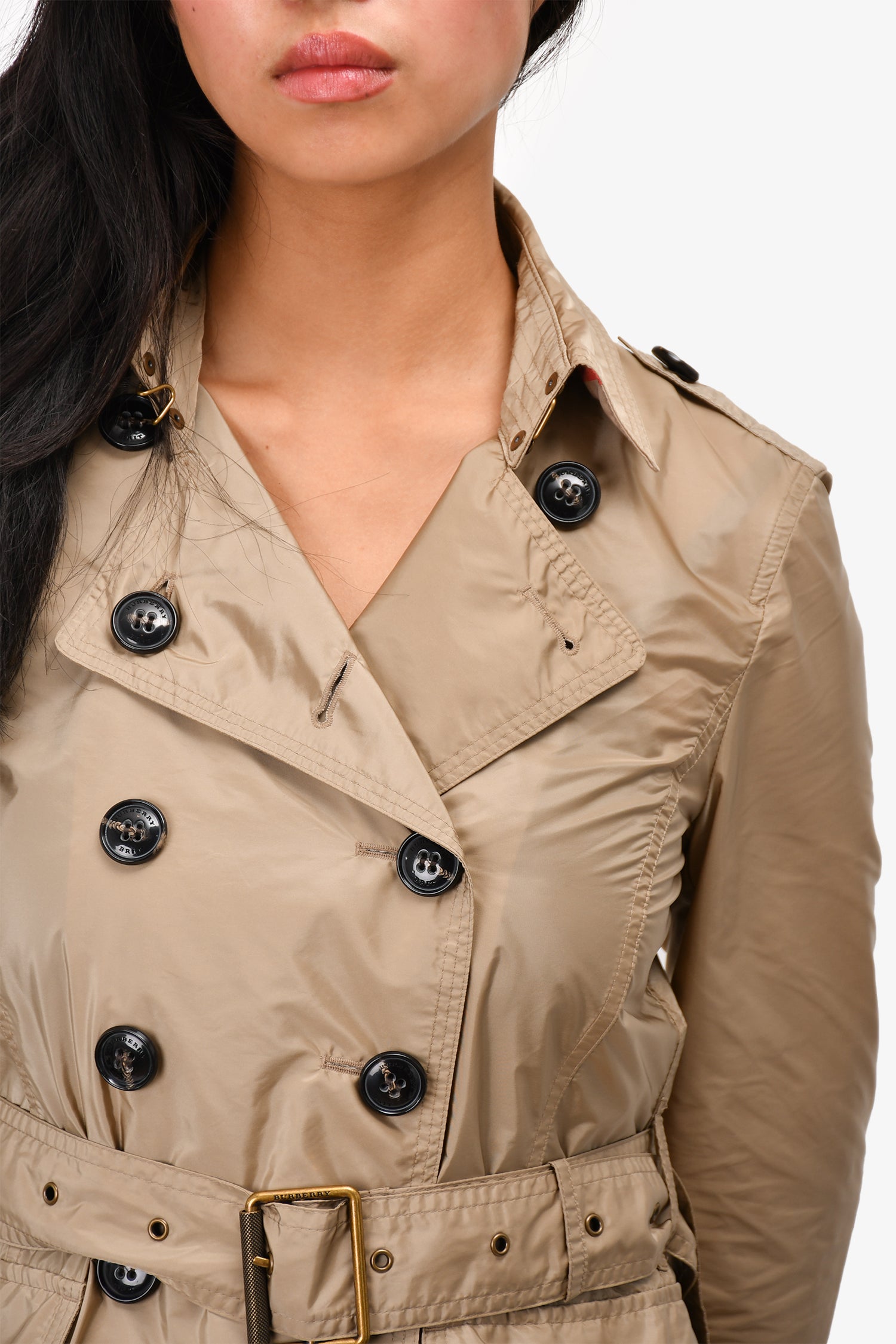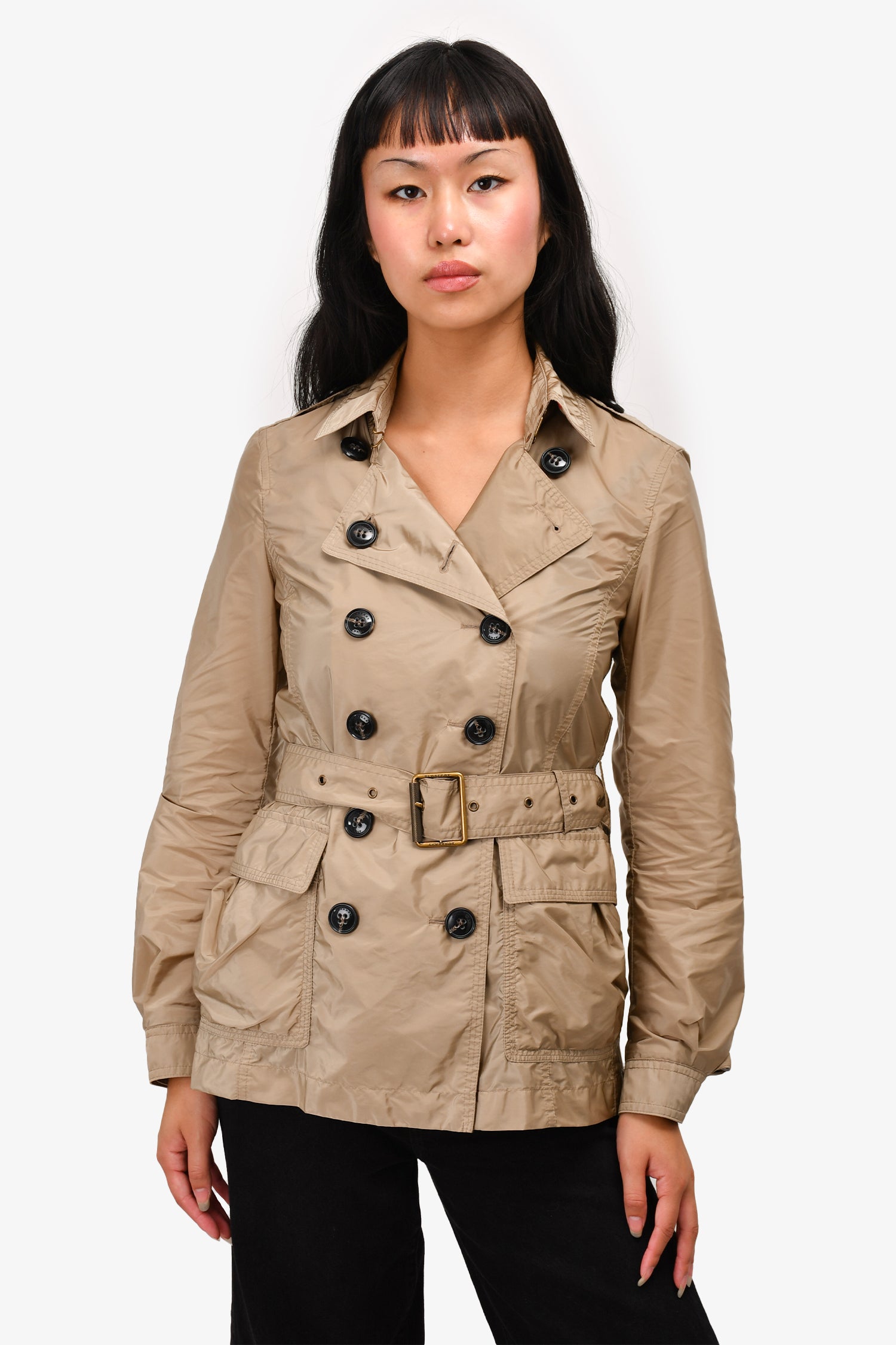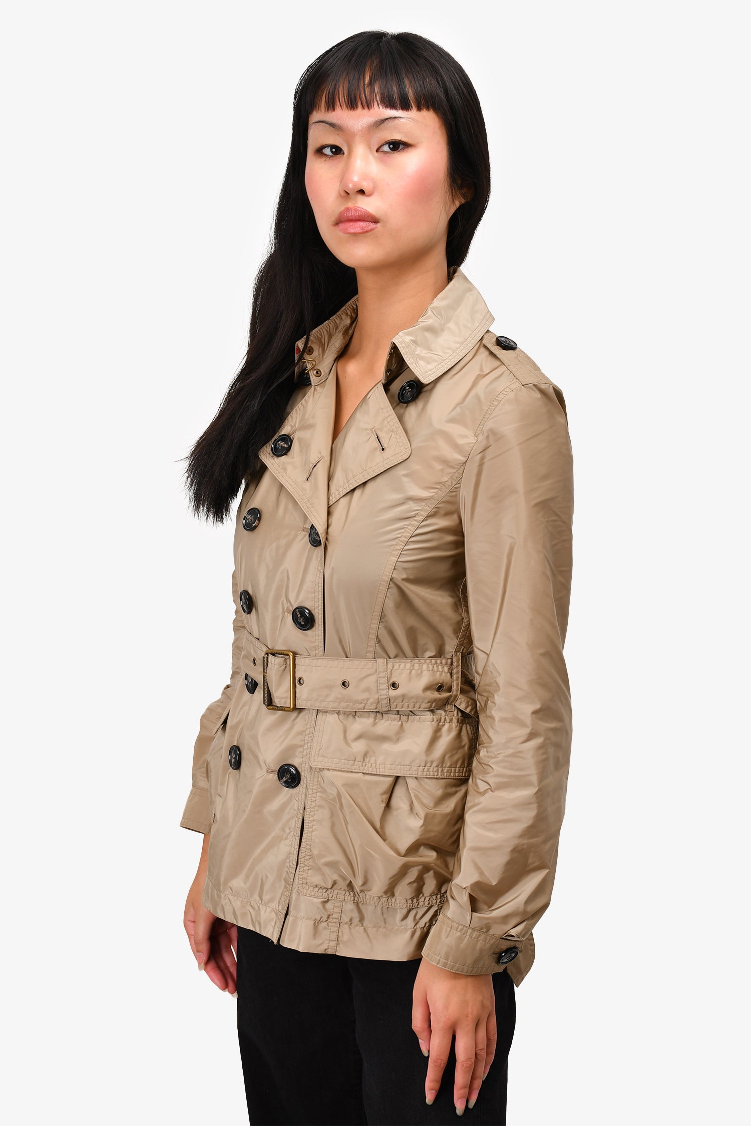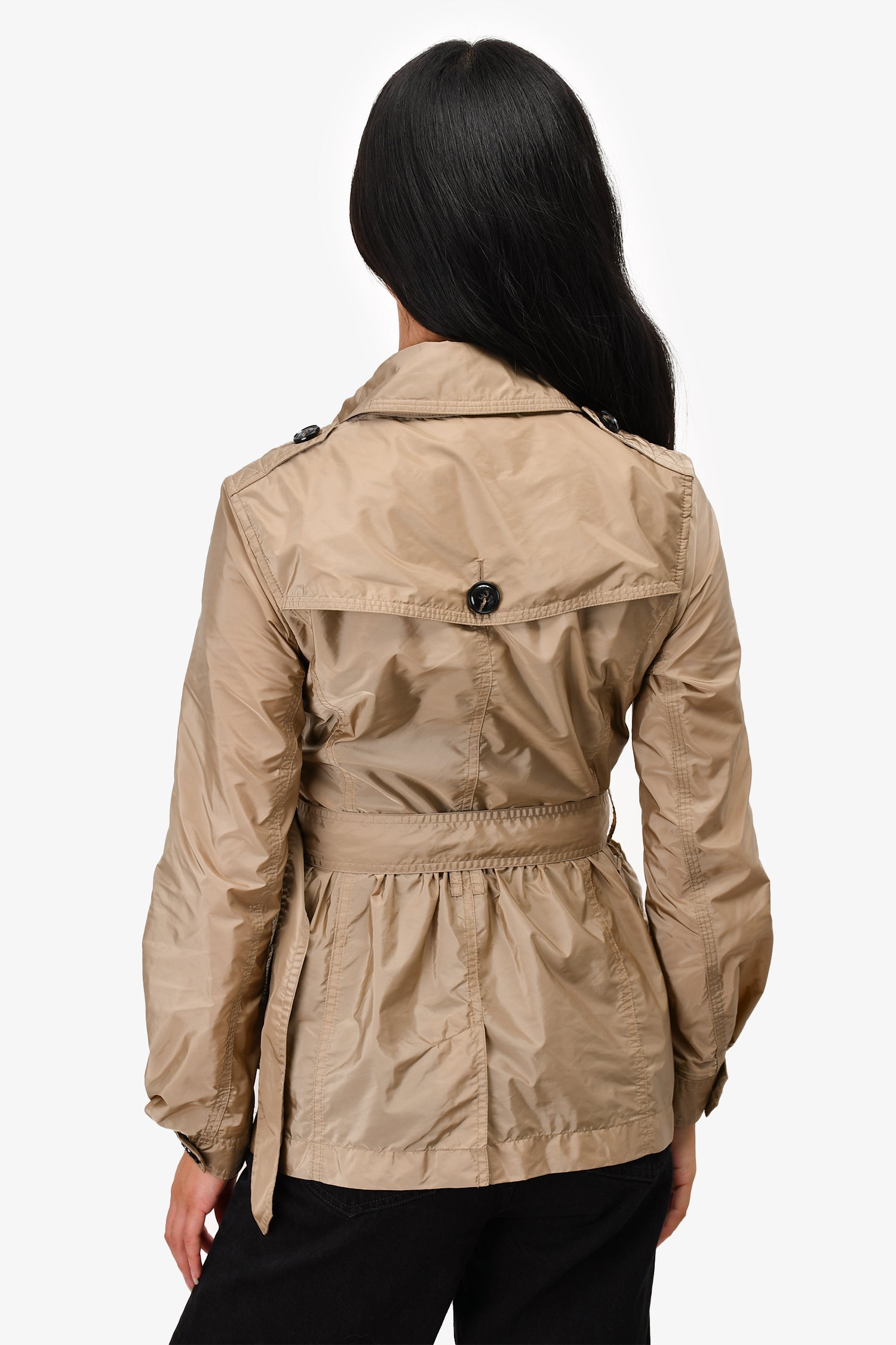 Burberry Brit Beige Nylon Double Breasted Jacket Size 2 US
