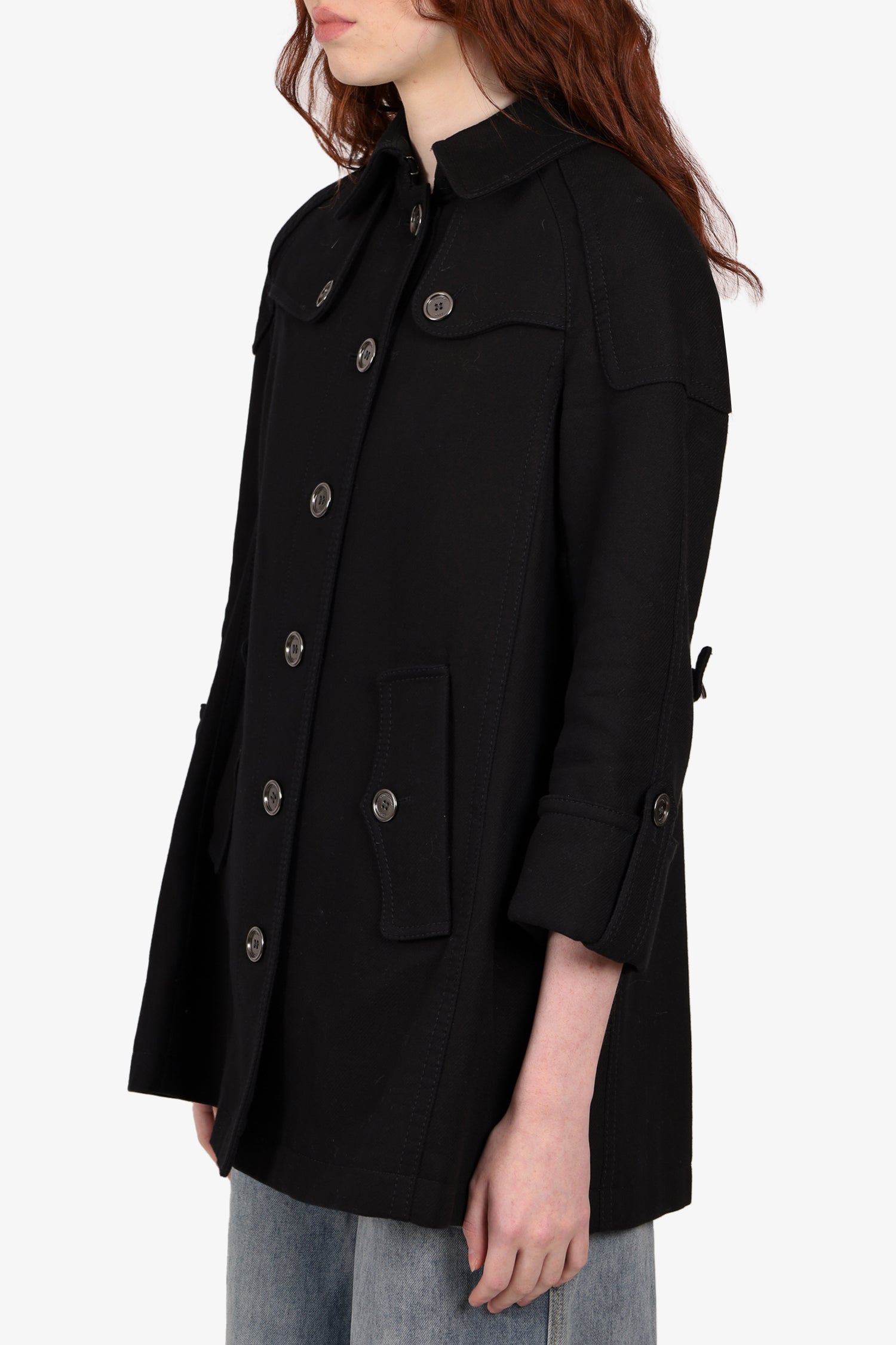 Burberry Brit Black Cotton Button Up Coat Size 10