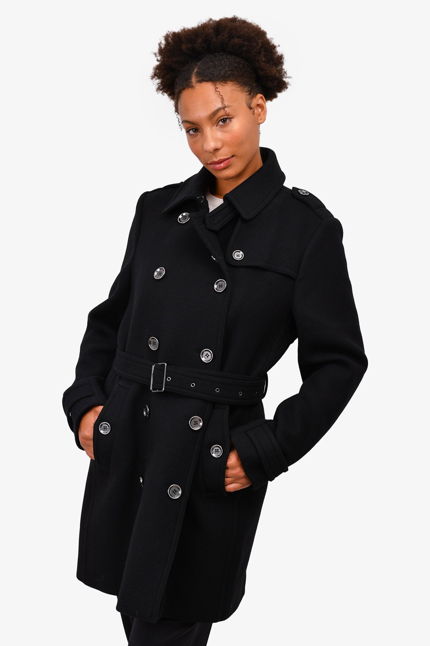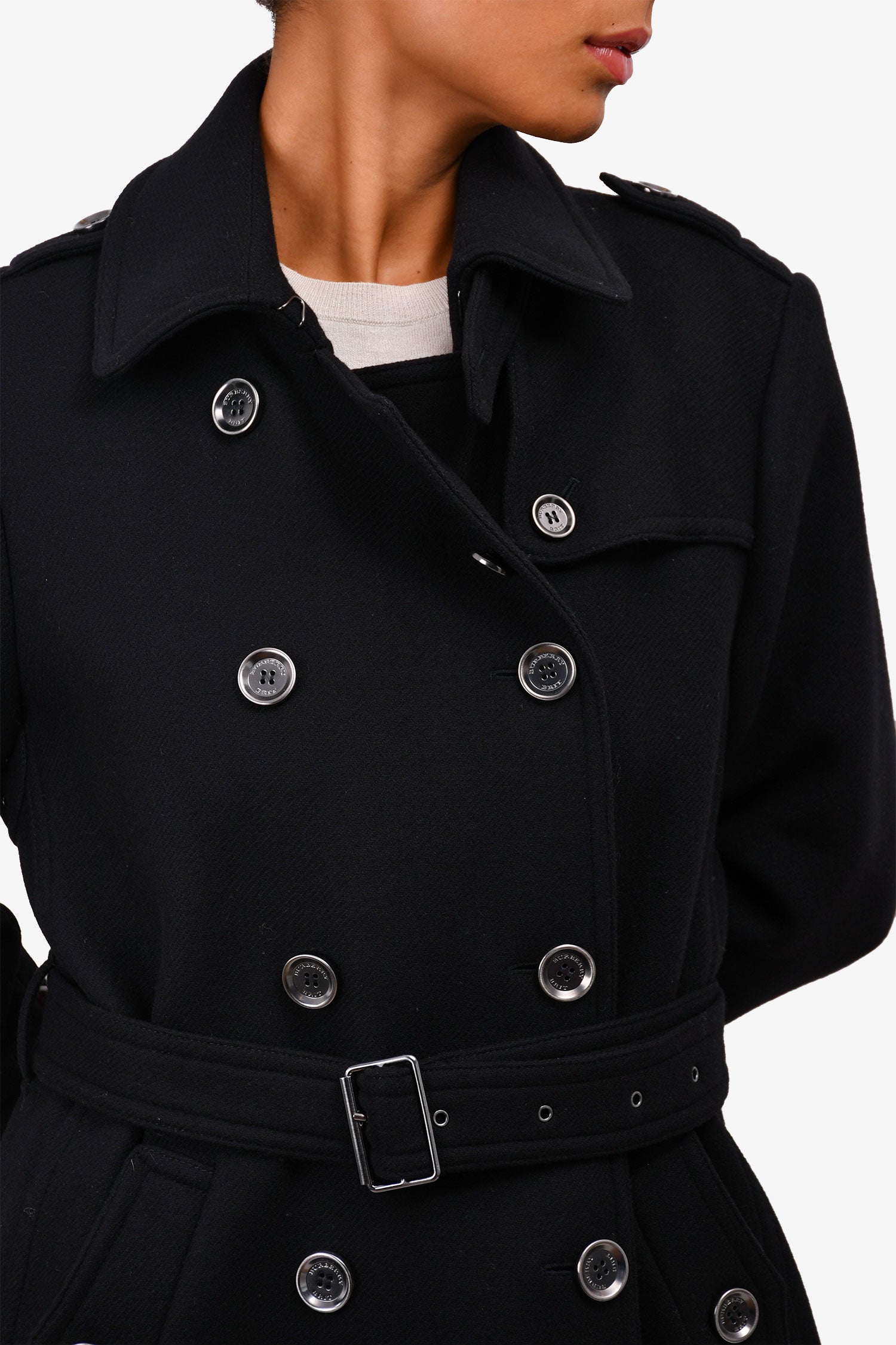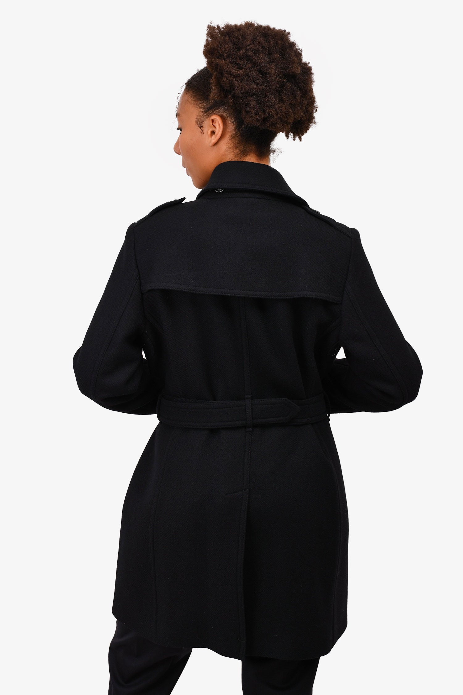 Refresh availabilityBurberry Brit Black Wool Buttoned Belted Midi Coat. Tonal stitching. Lined interior.