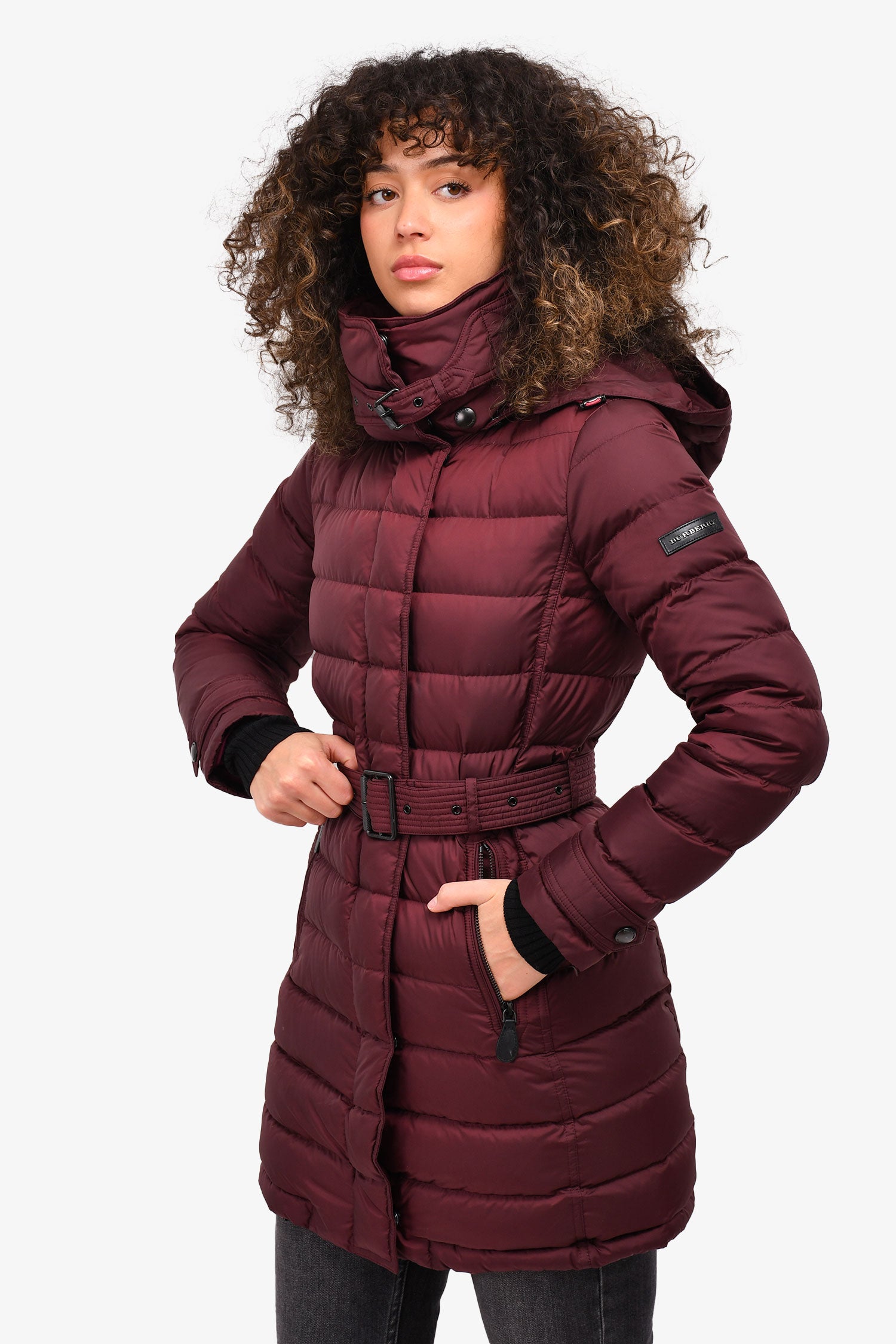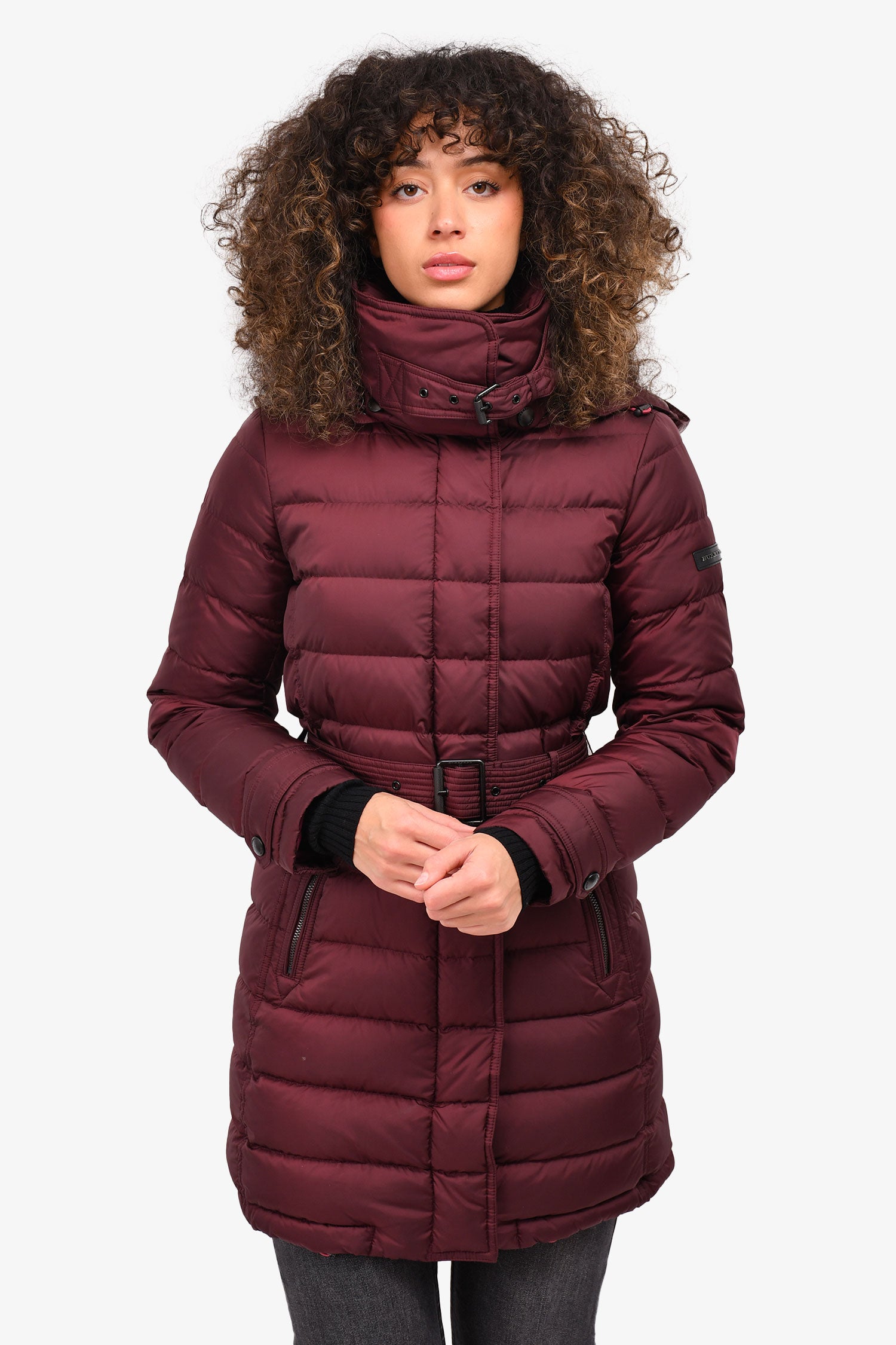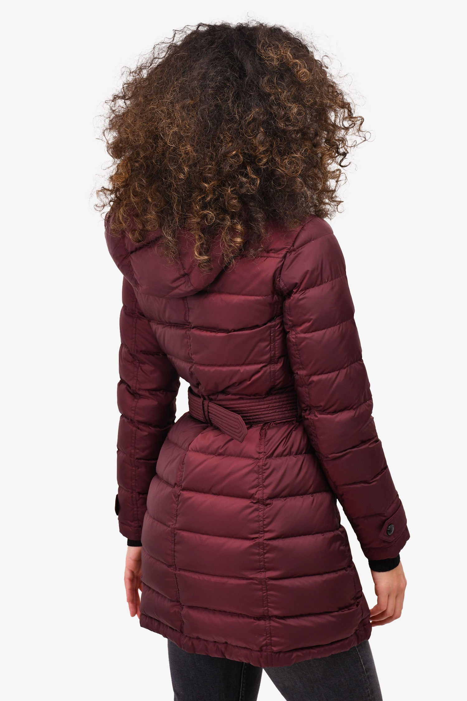 Burberry Brit Burgundy Puffer Down Jacket with Belt Size XS