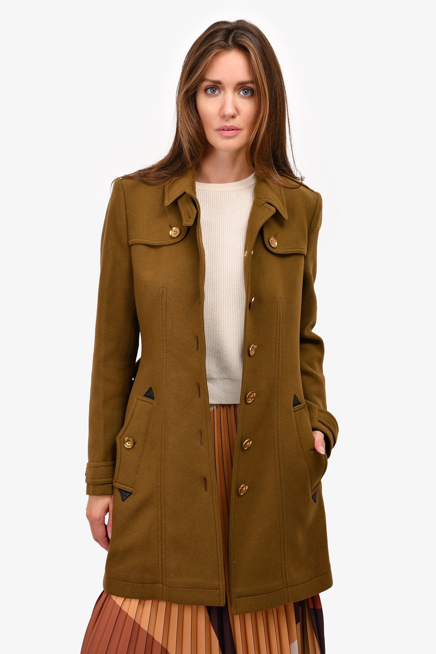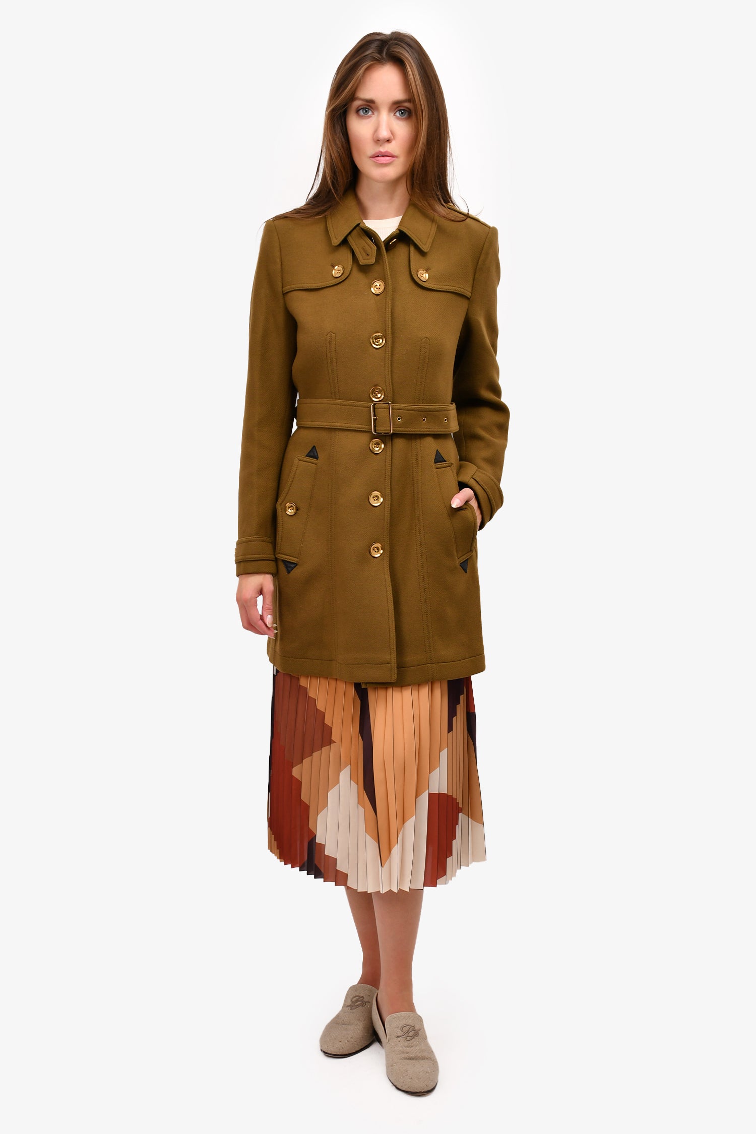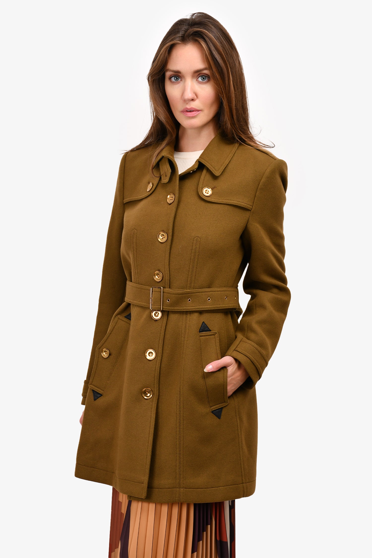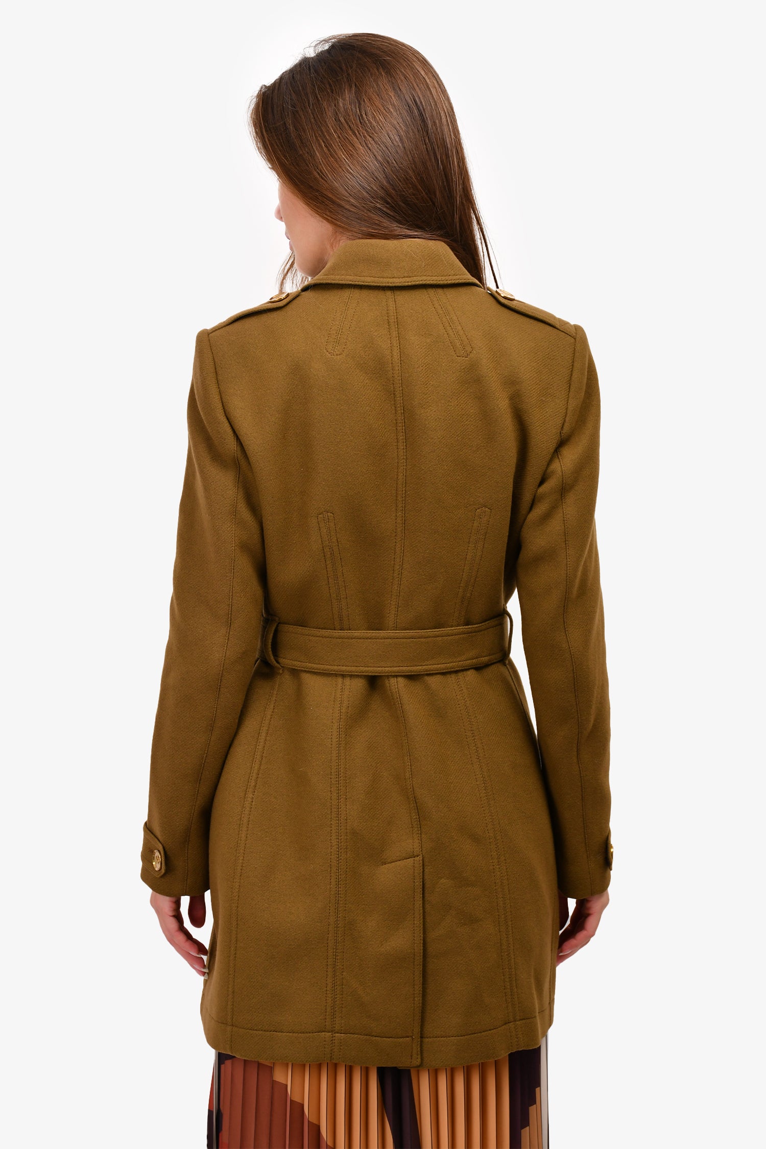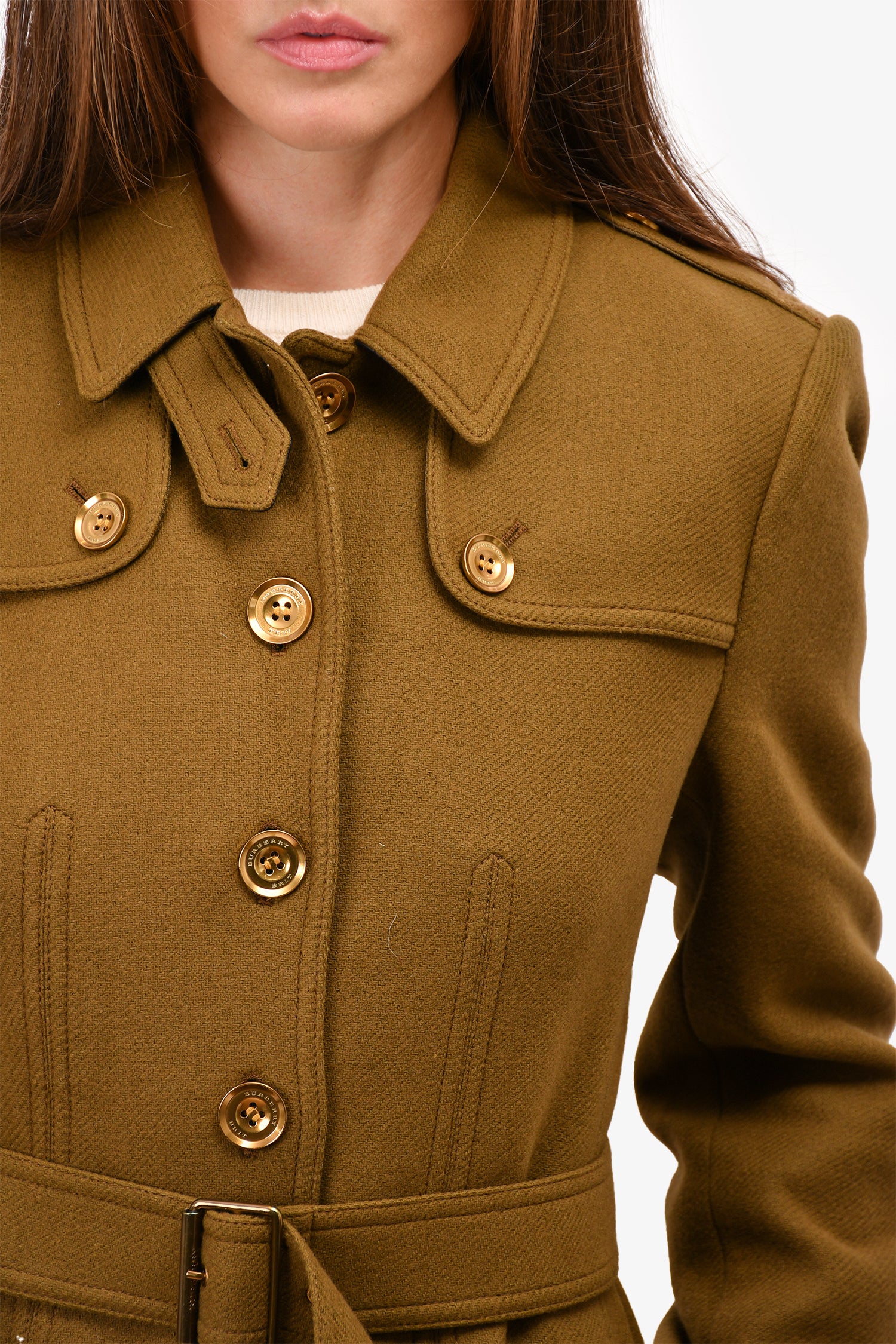 Burberry Brit Khaki Wool Belted Coat Size 10