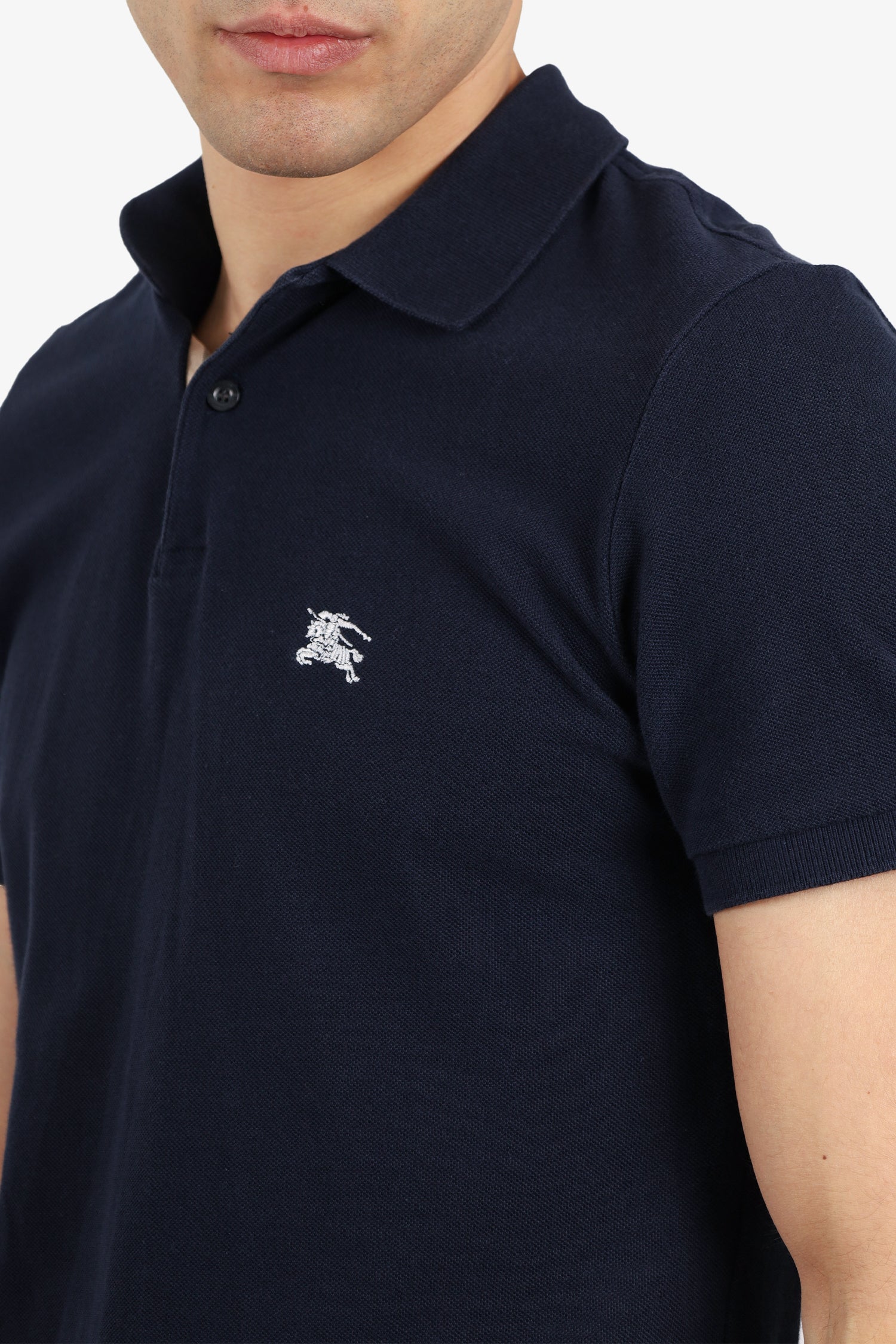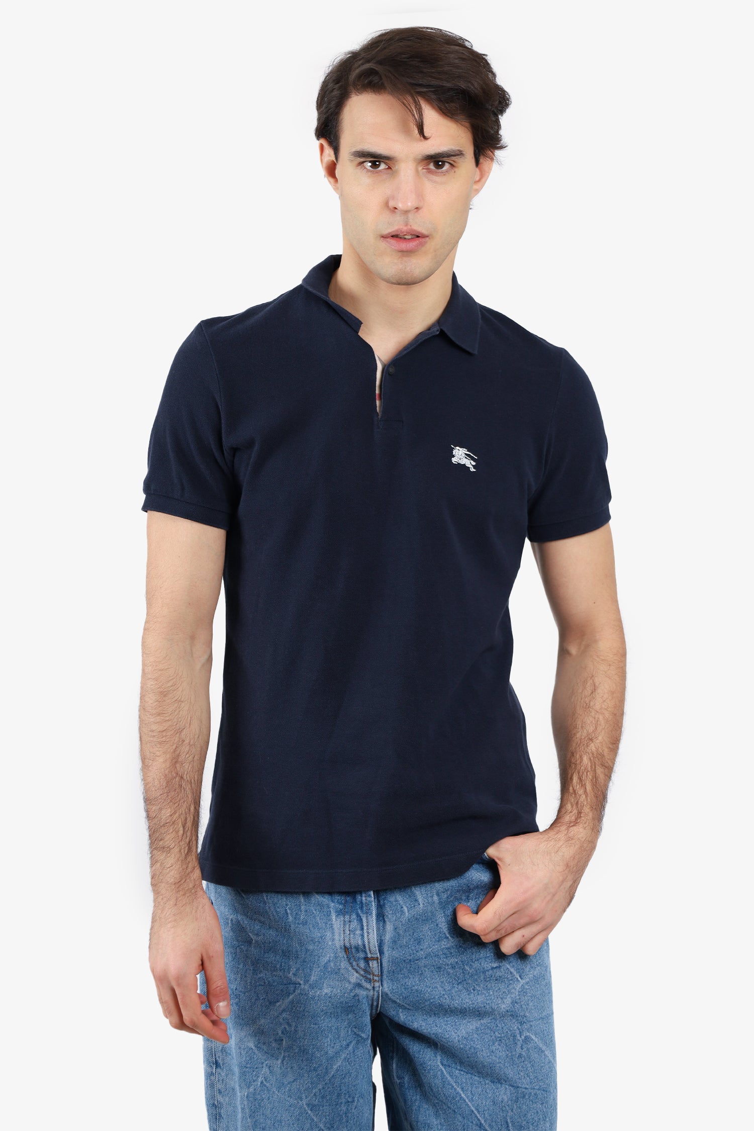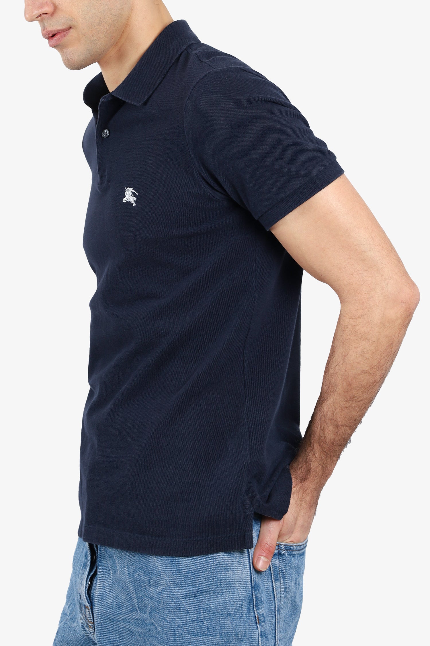 Refresh availabilityBurberry Brit Navy Cotton Polo Shirt. Embroidered logo detail. 2 button collar. Tonal stitching.