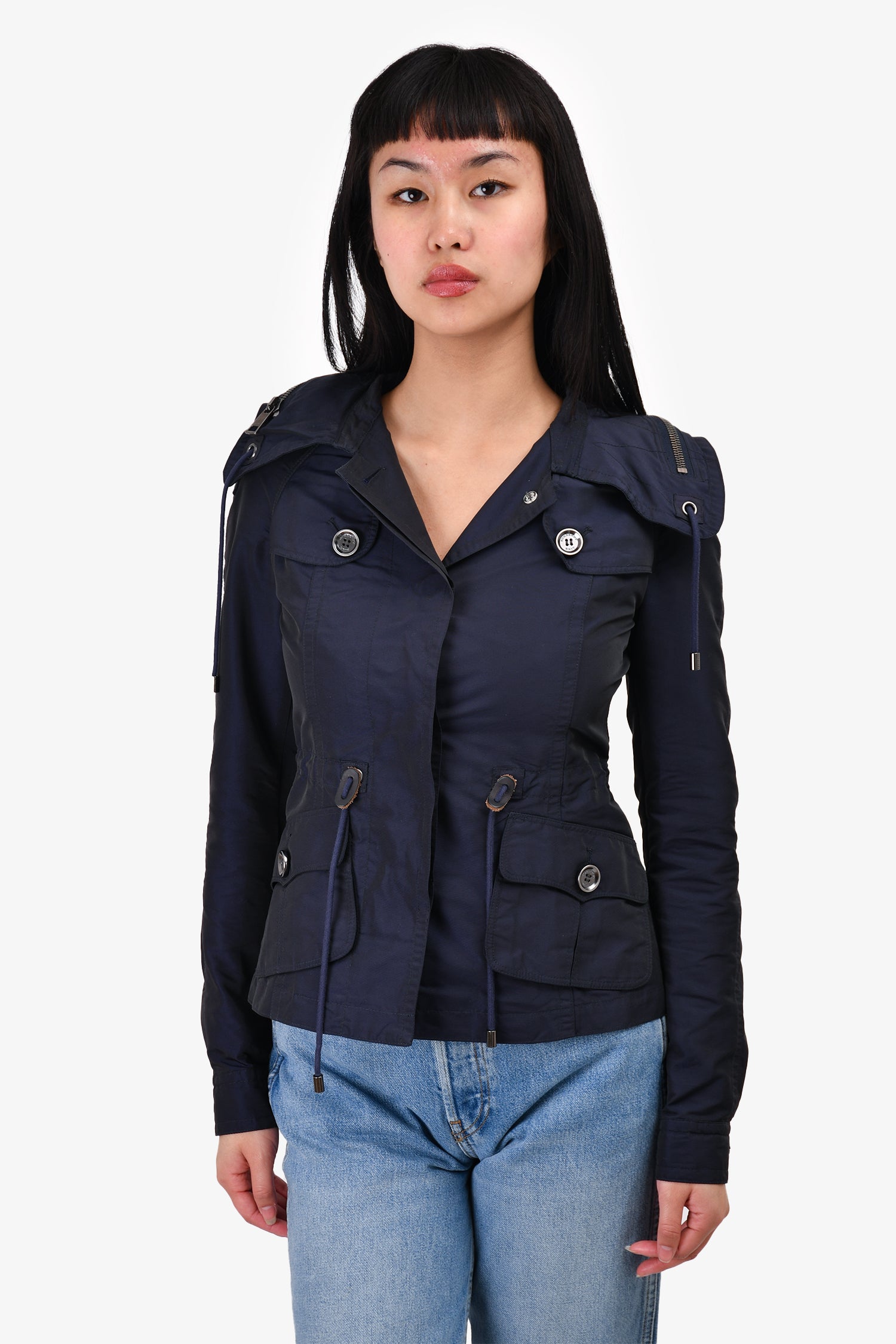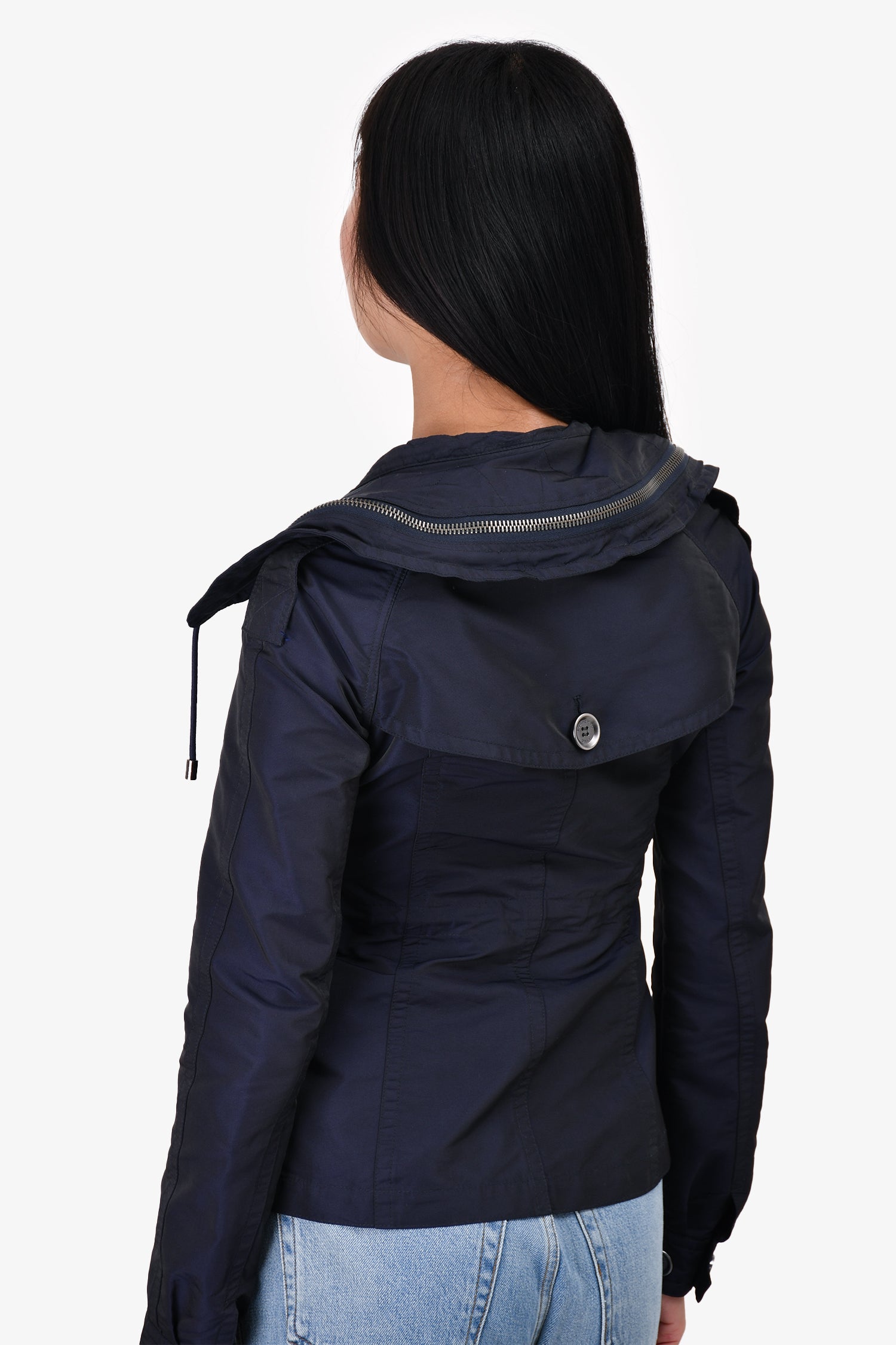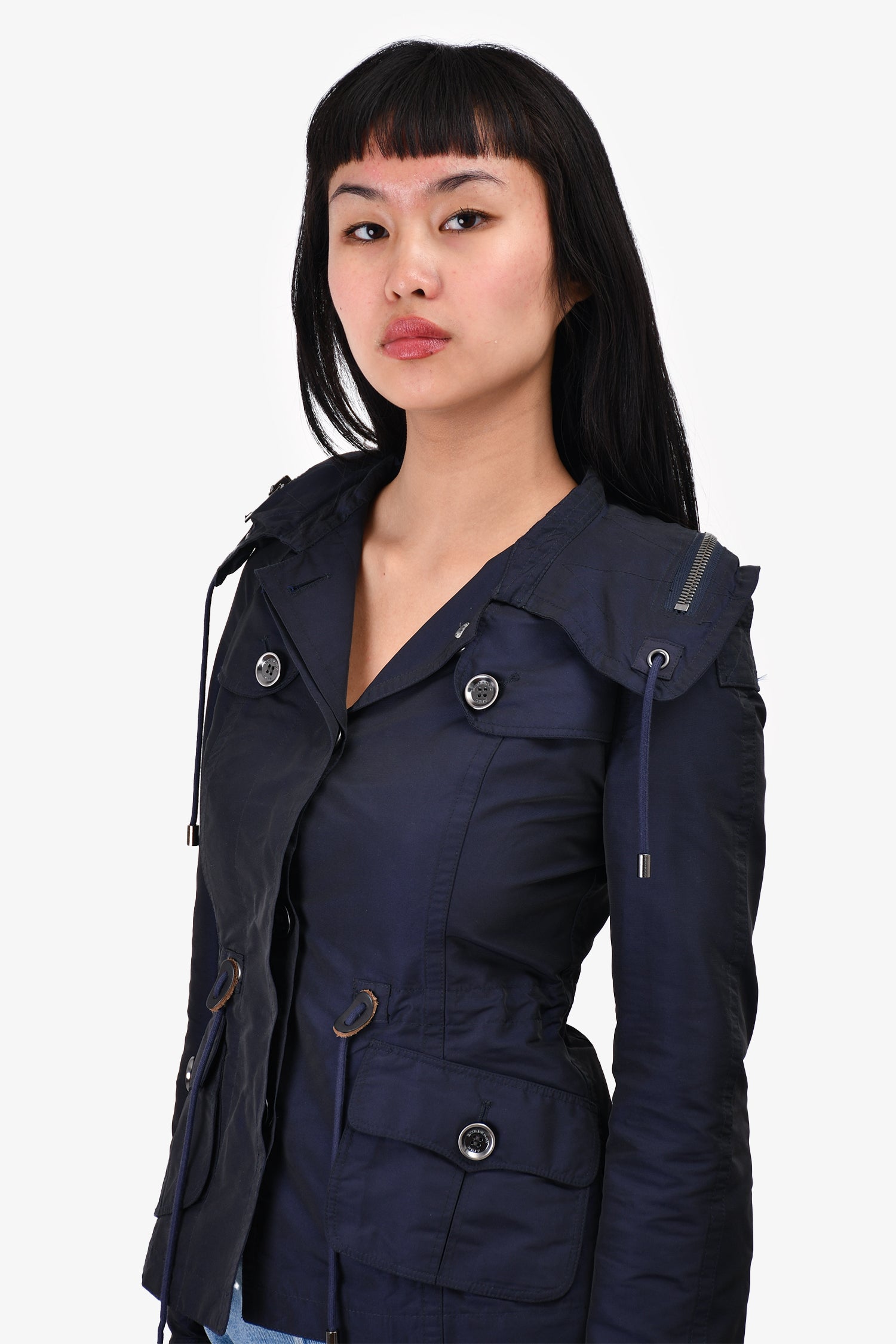 Burberry Brit Navy Single Breasted Hooded Jacket Size 2 US