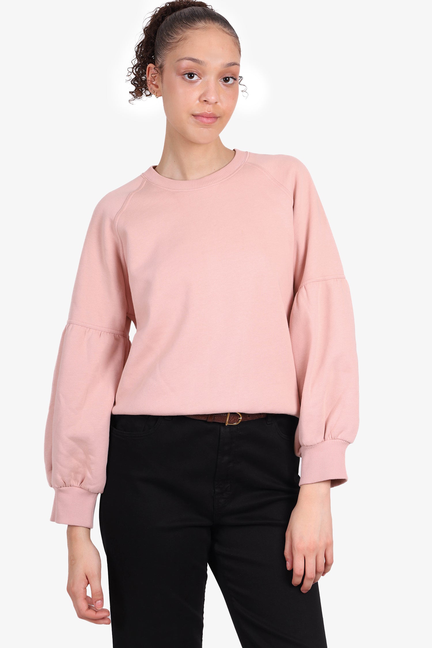 Refresh availabilityBurberry Brit Pink Puff Sleeve Crew Neck. Round elastic collar. Puff sleeves. Tonal stitching.