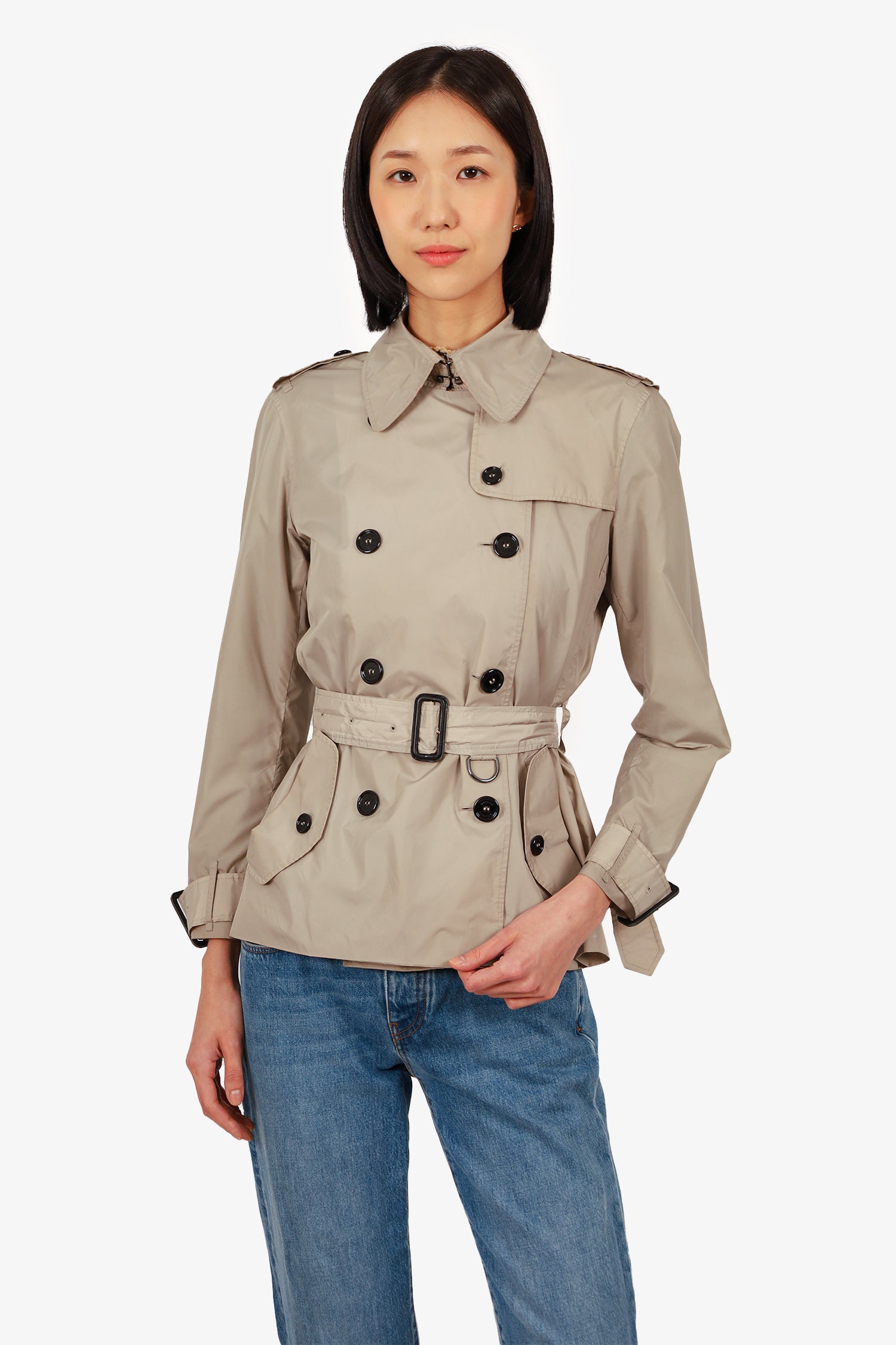 Burberry Brit Taupe Double-Breasted Belted Trench Coat Size 6