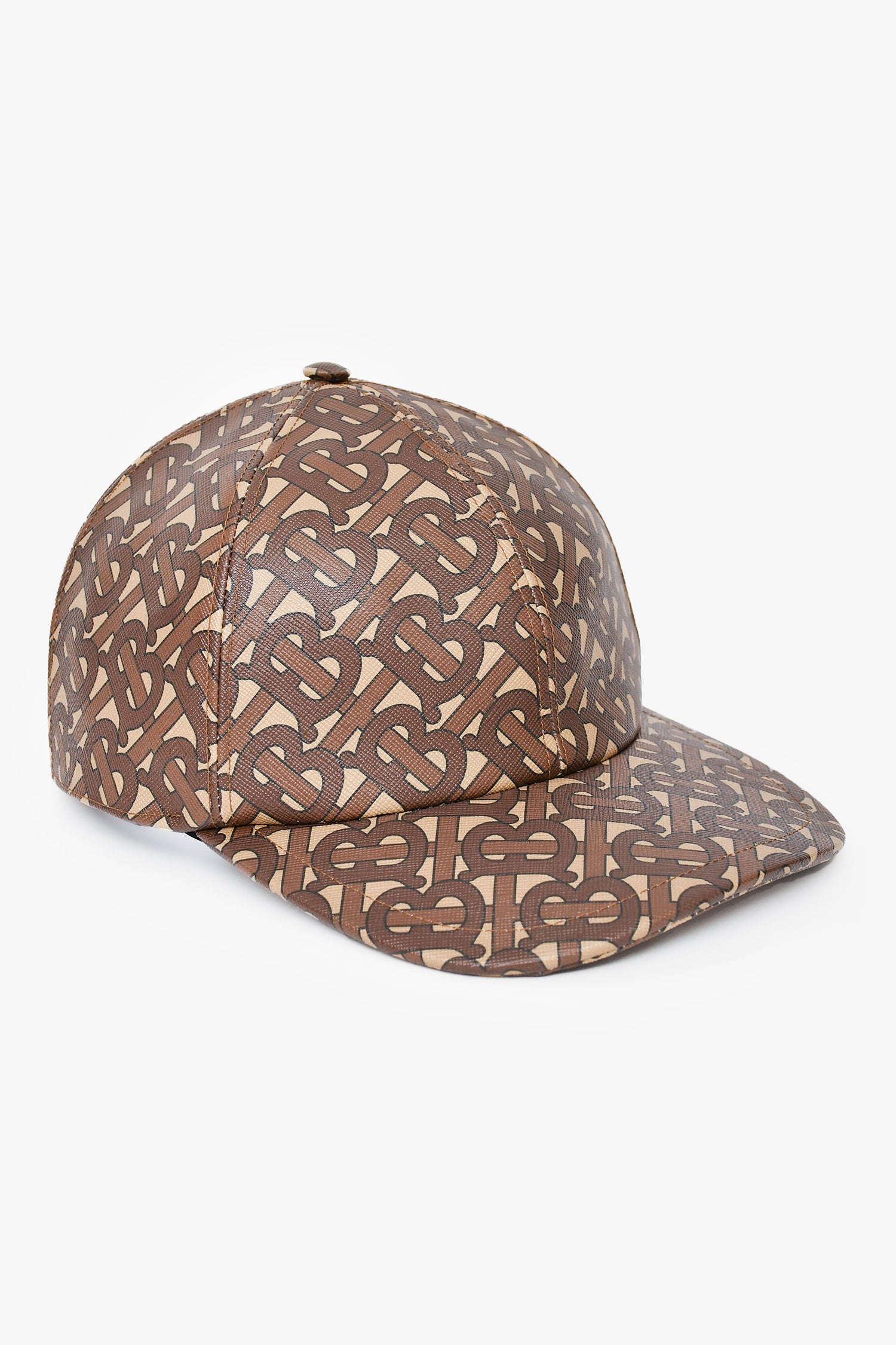 Refresh availabilityBurberry Brown Coated Cotton TB Monogram Hat. Adjustable rear strap with snap button closure. Gold-toned hardware. Tonal stitching.