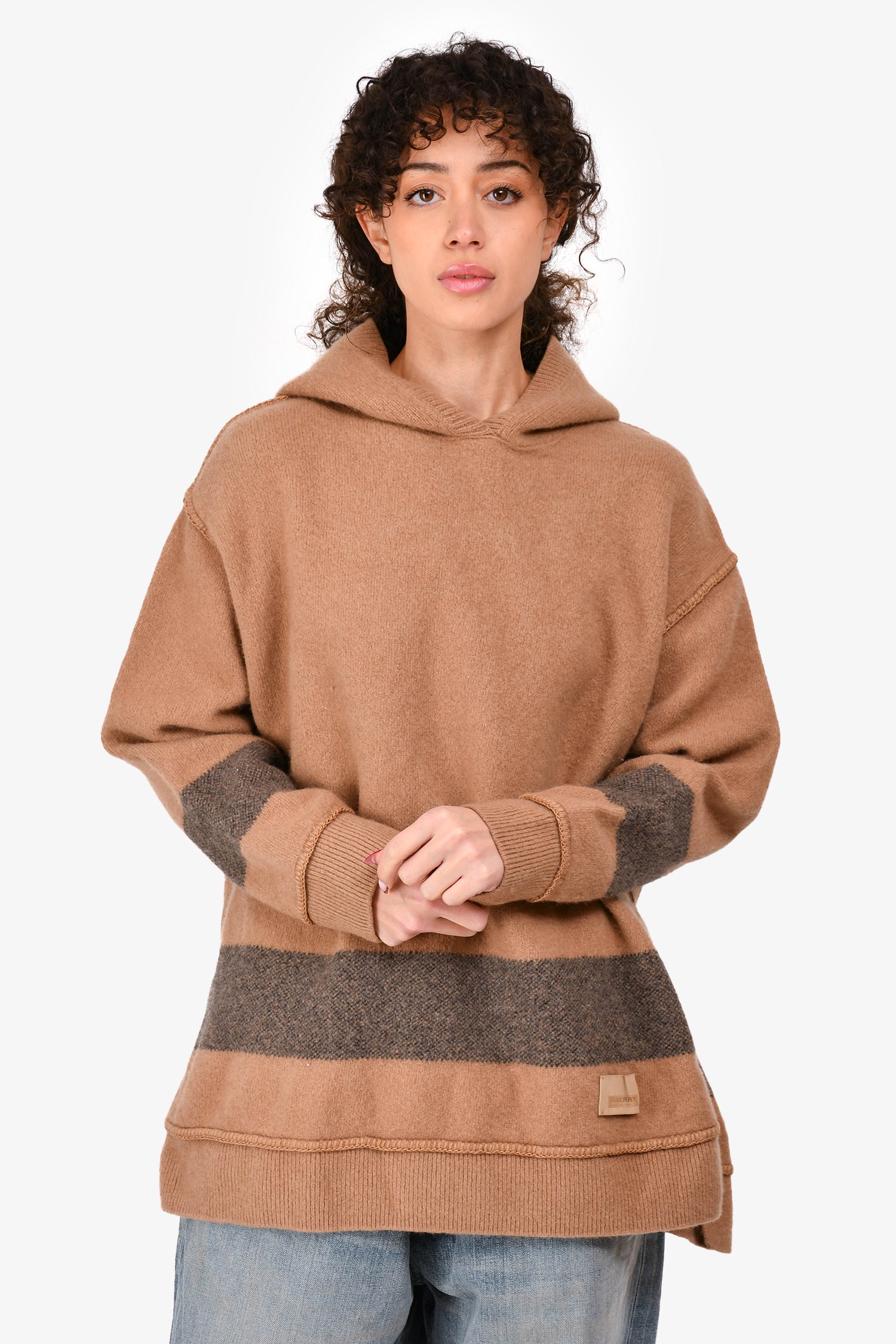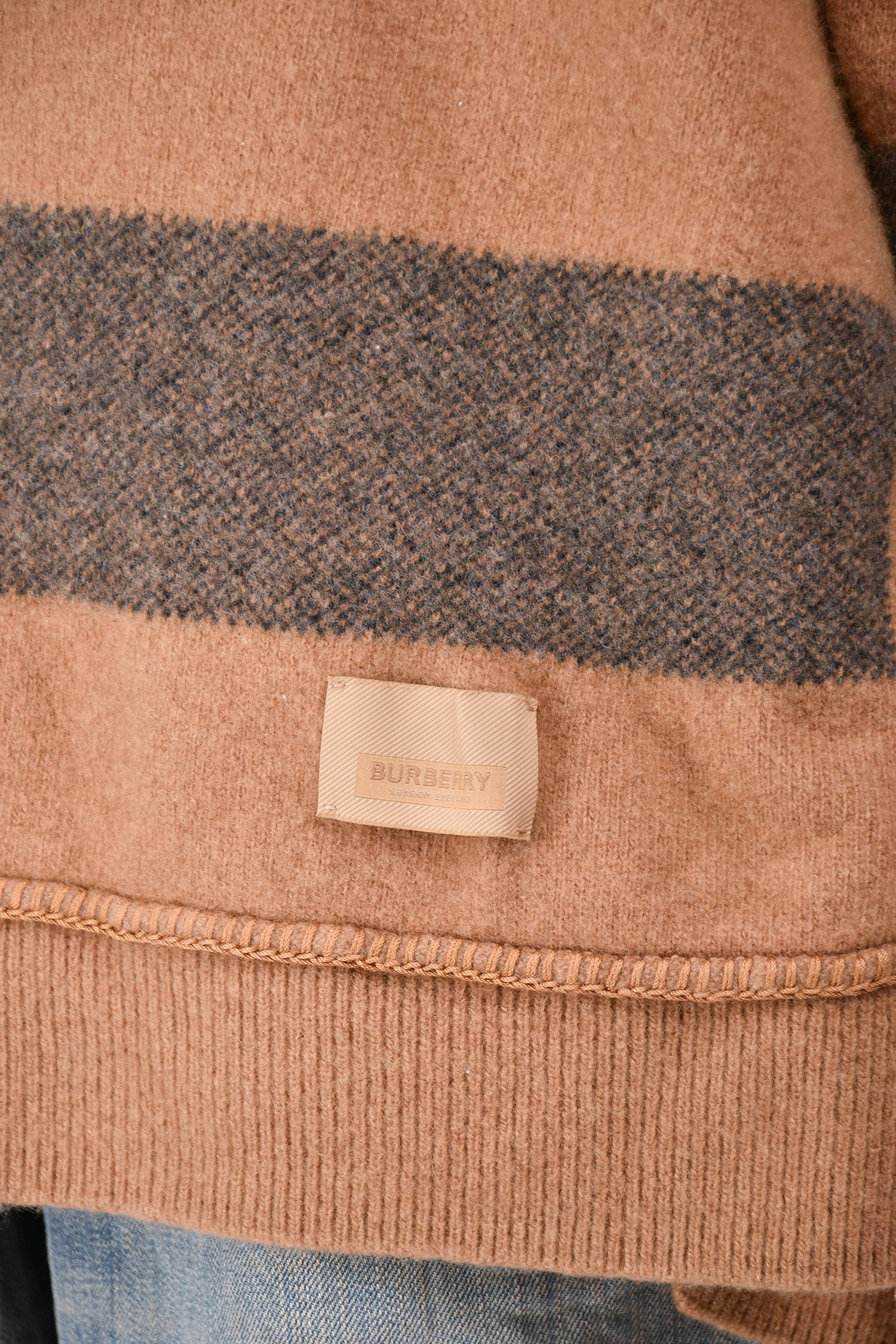Refresh availabilityBurberry Brown/Grey Wool Striped Hoodie. Pull-on. Ribbed trimmings. Side slits. Unlined. Tonal stitching.