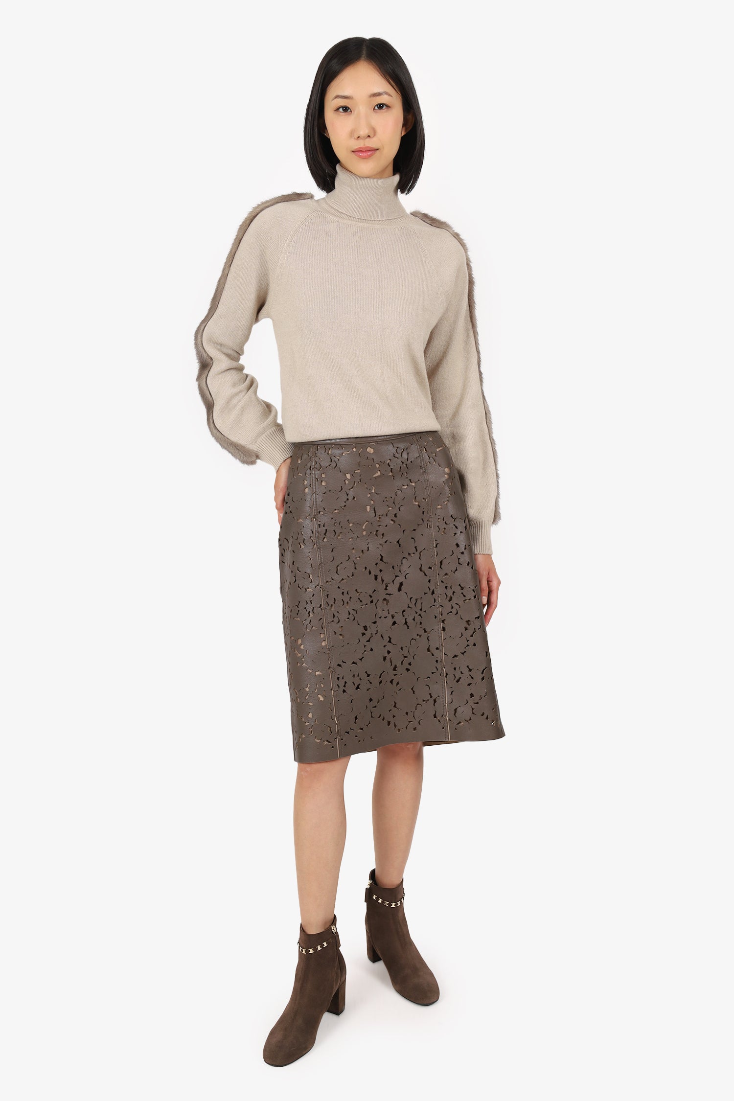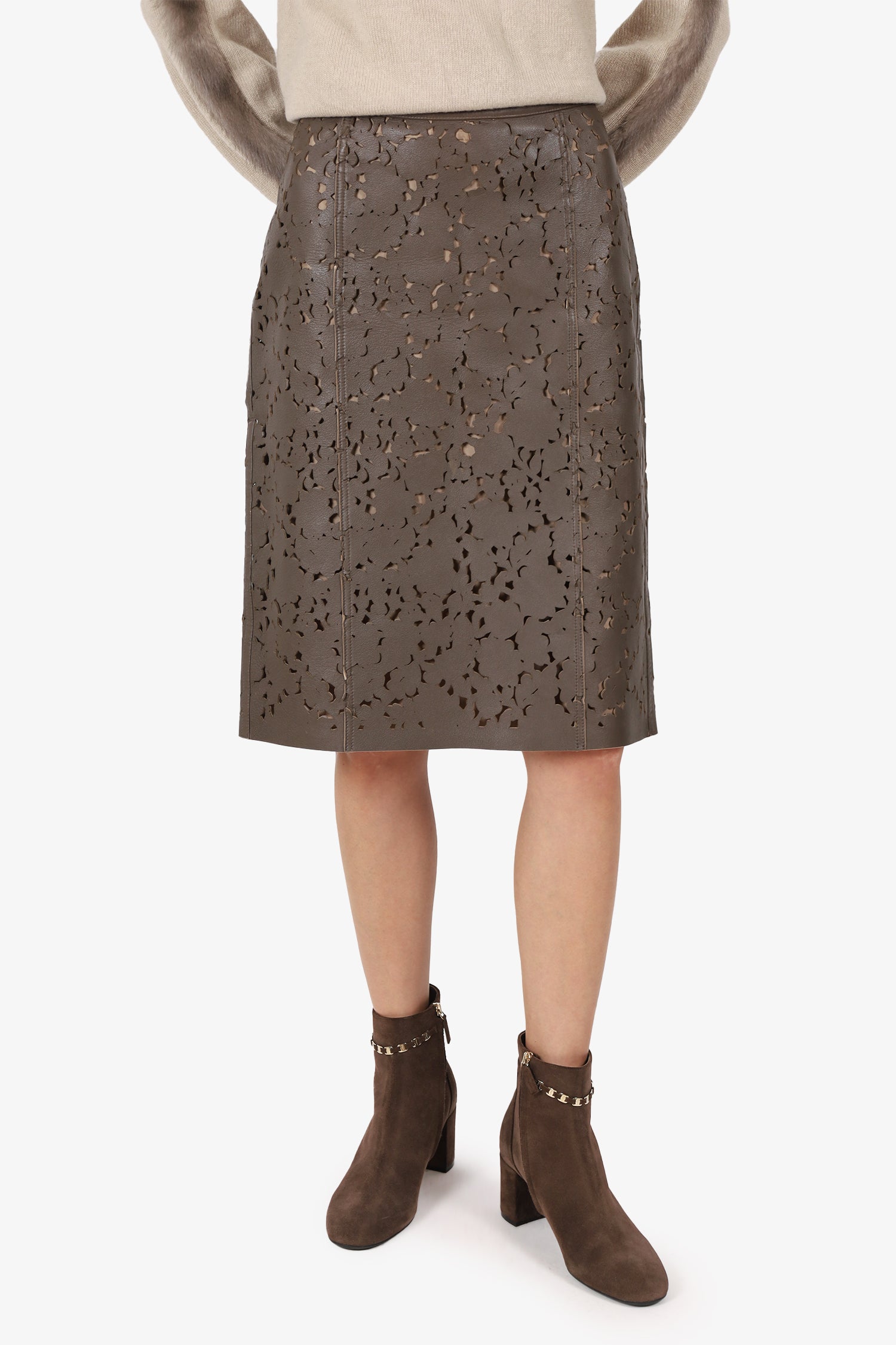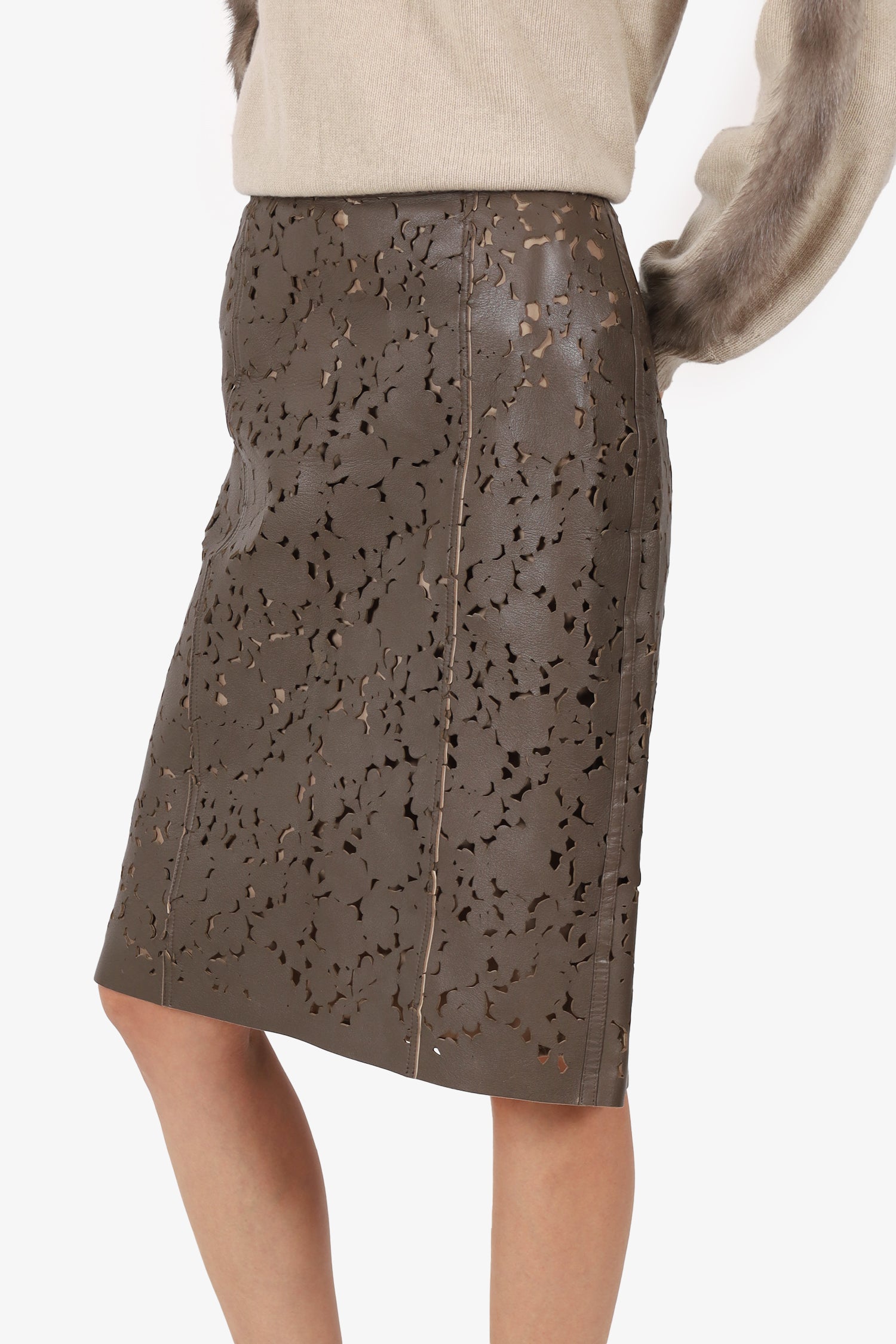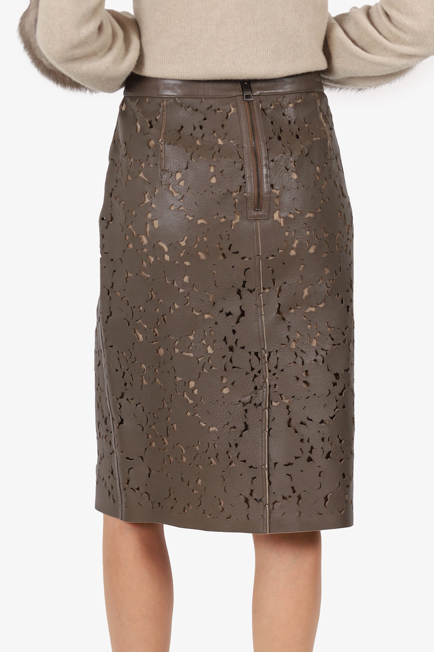 Burberry Brown Leather Cut-Out Midi Skirt Size 8