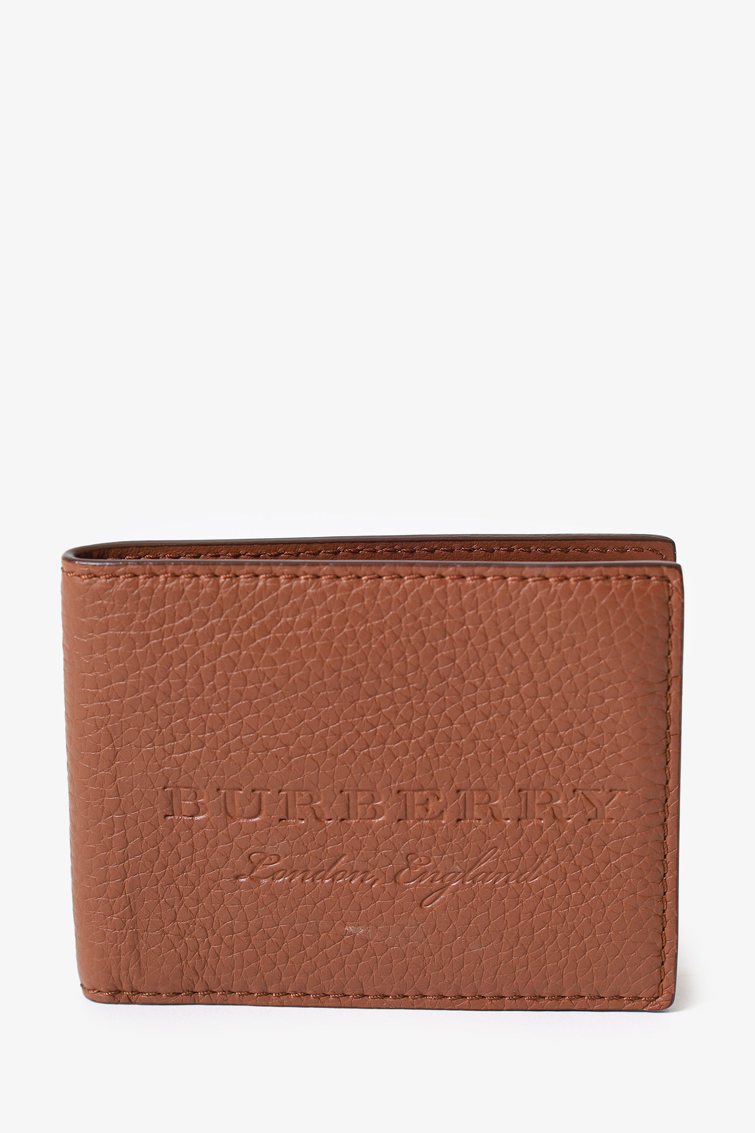 Refresh availabilityBurberry Brown Leather Logo Wallet. 8 interior card slip pockets. 1 interior wide slip pocket. Tonal stitching.