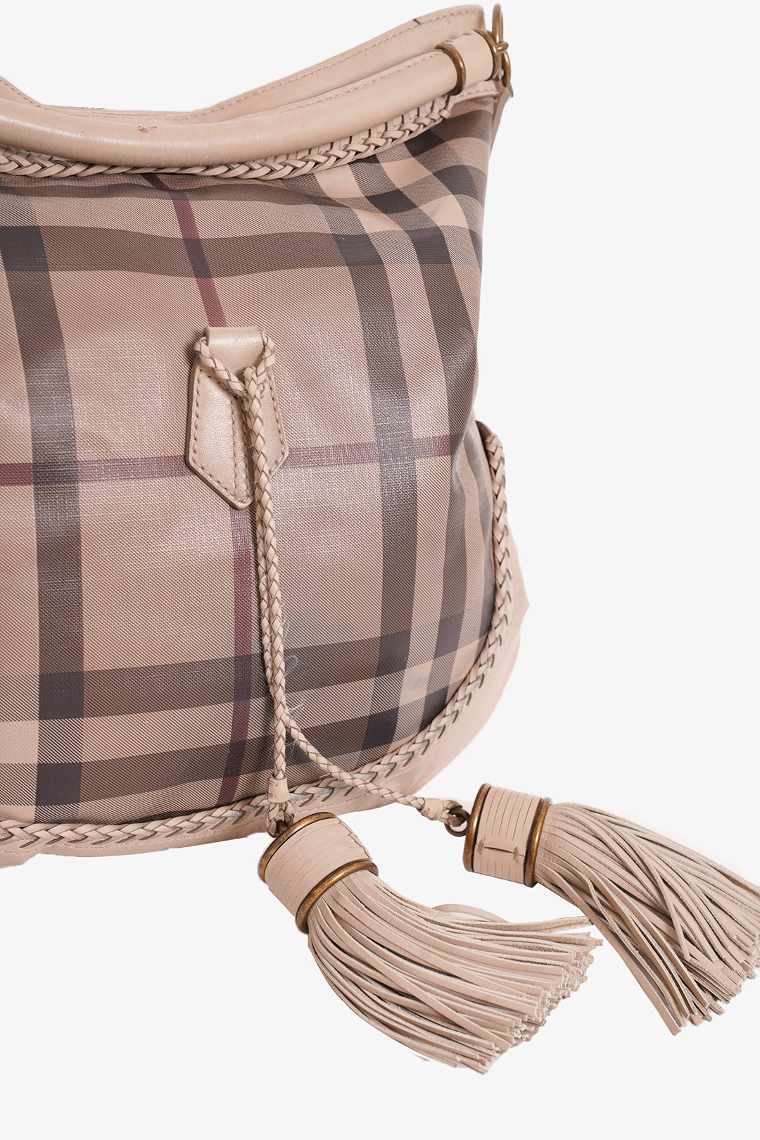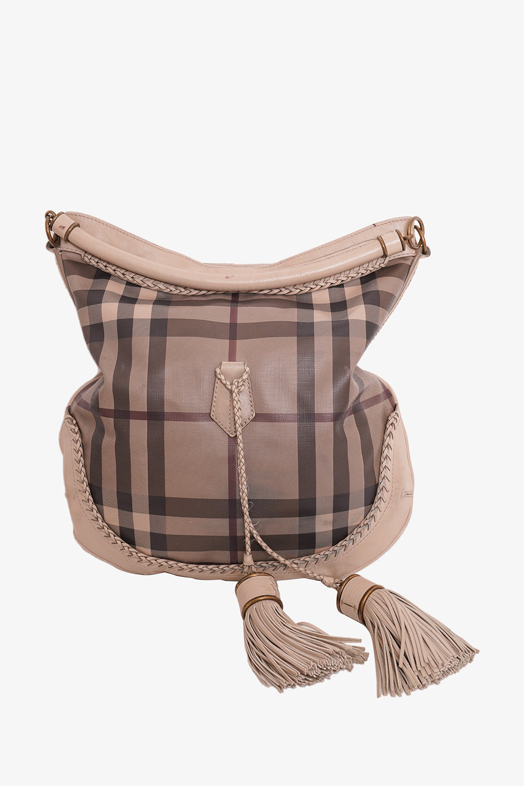Burberry Brown Smoked Check Parade Tassel Hobo Bag