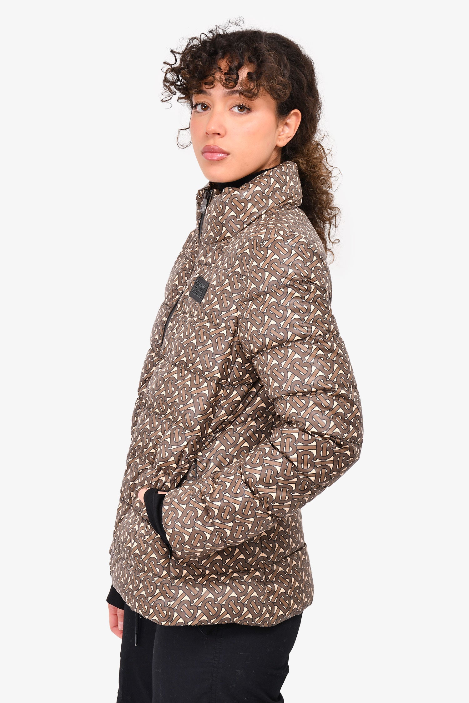 Burberry Brown TB Monogram Down Puffer Jacket Size S