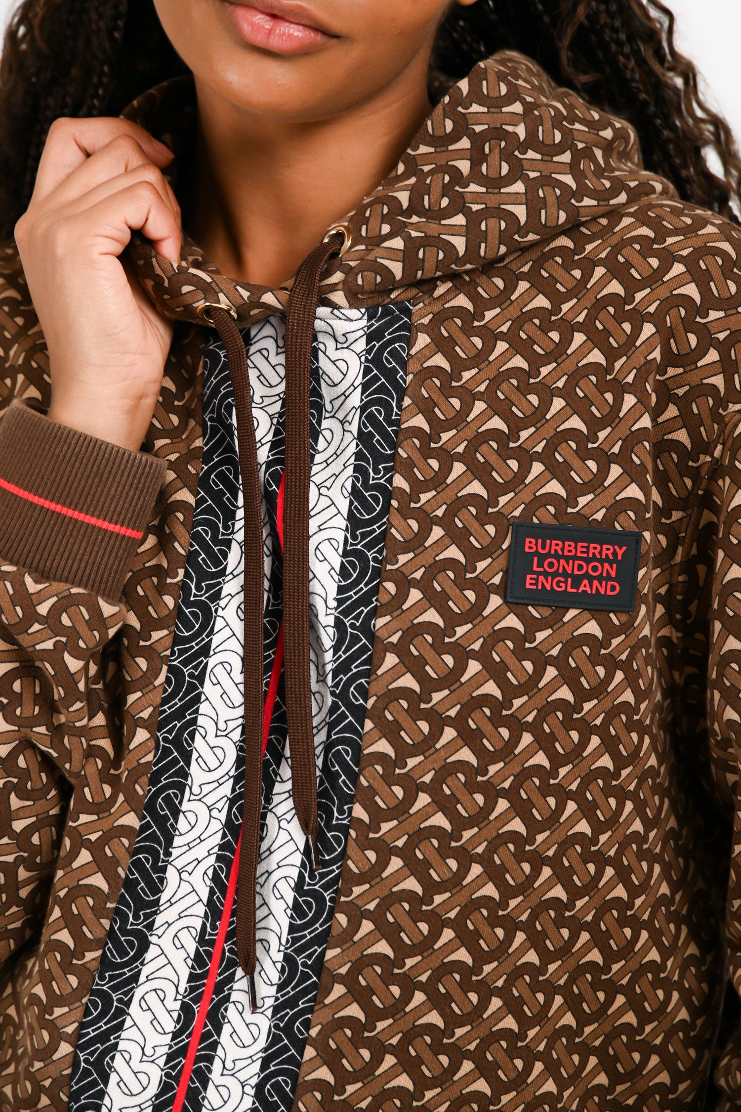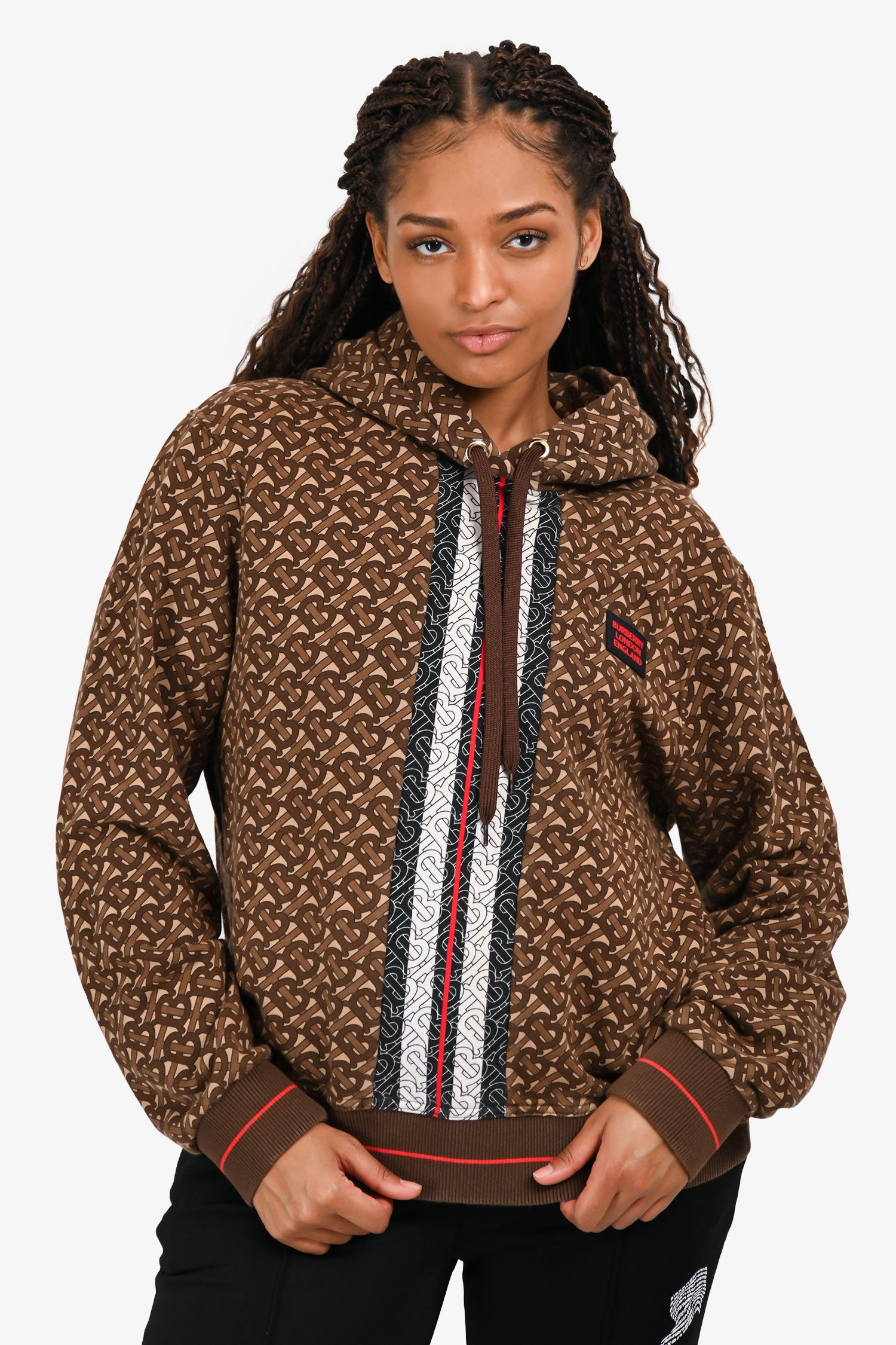 Refresh availabilityBurberry Brown TB Monogram Hoodie. Pull-on. Drawstrings on the collar. Ribbed cuffs and hem. Tonal stitching.