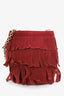 Burberry Burgundy 'Suede Baby' Fringe Crossbody Bucket Bag