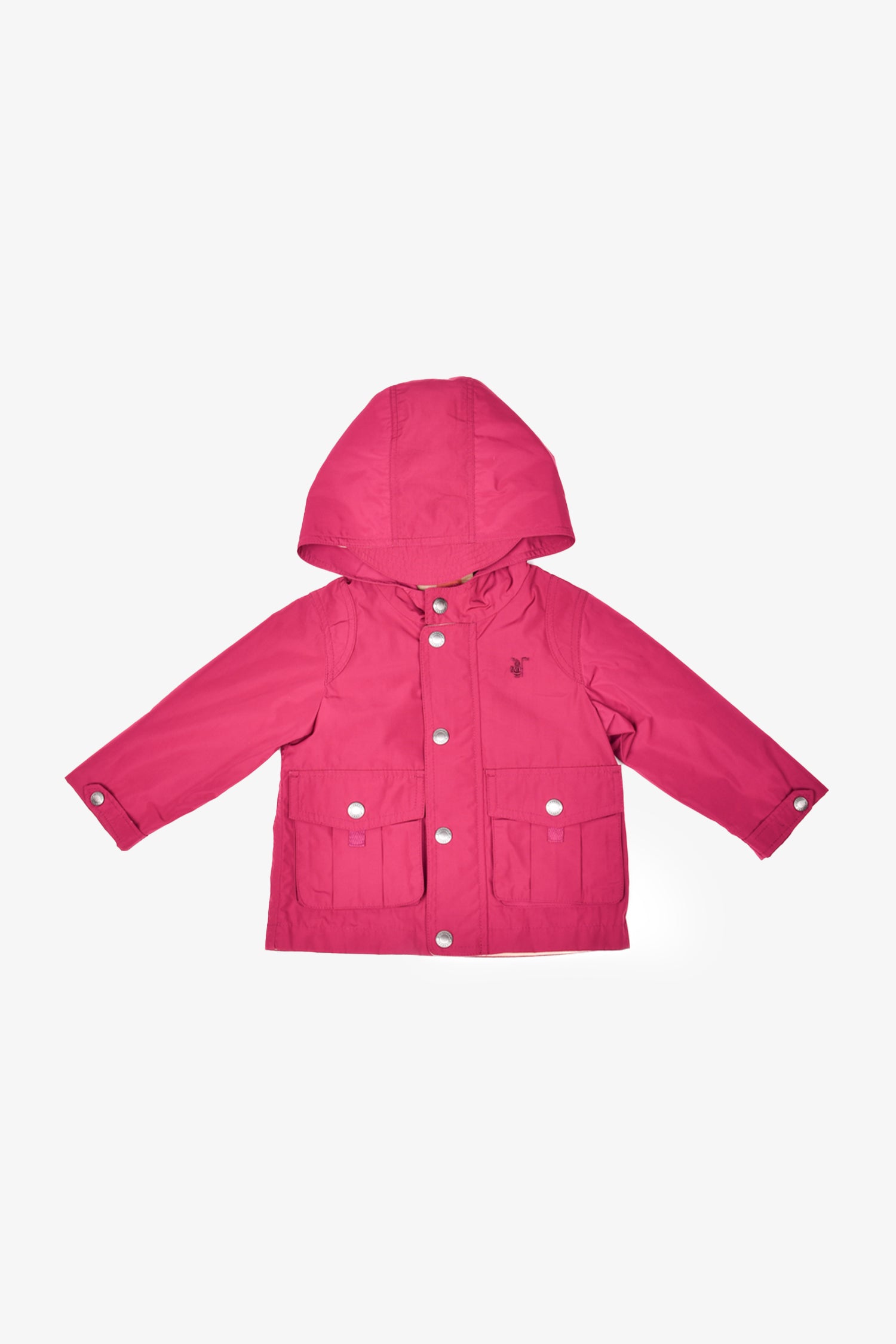Refresh availabilityBurberry Children Dark Magenta Nylon Nova Check Lined Rain Jacket. Front zip closure. Front pockets with snap-button closure. Snap-button closure on the cuffs. Tonal stitching.