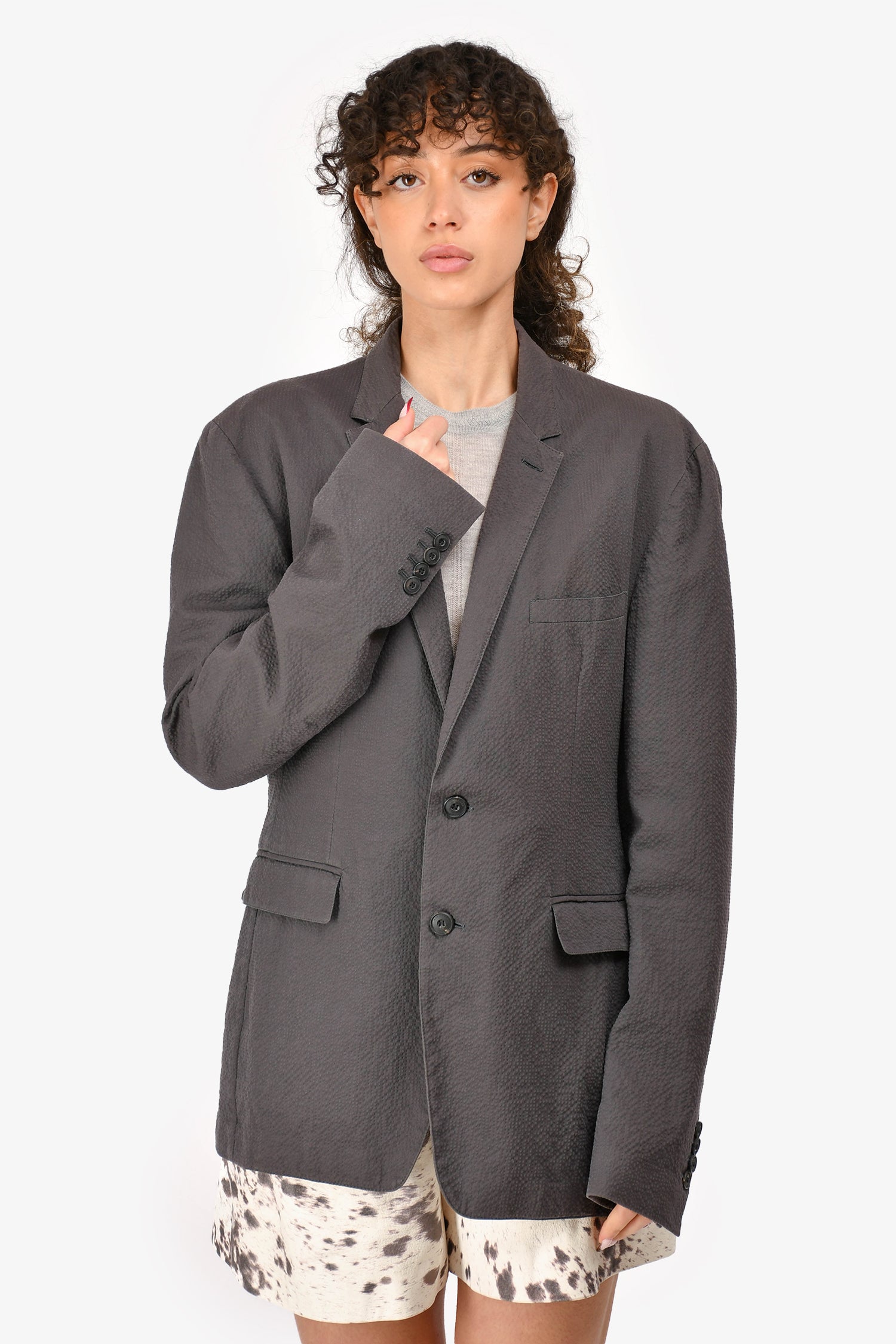Burberry Grey Cotton Blend Relaxed Fit Blazer Size 52 R