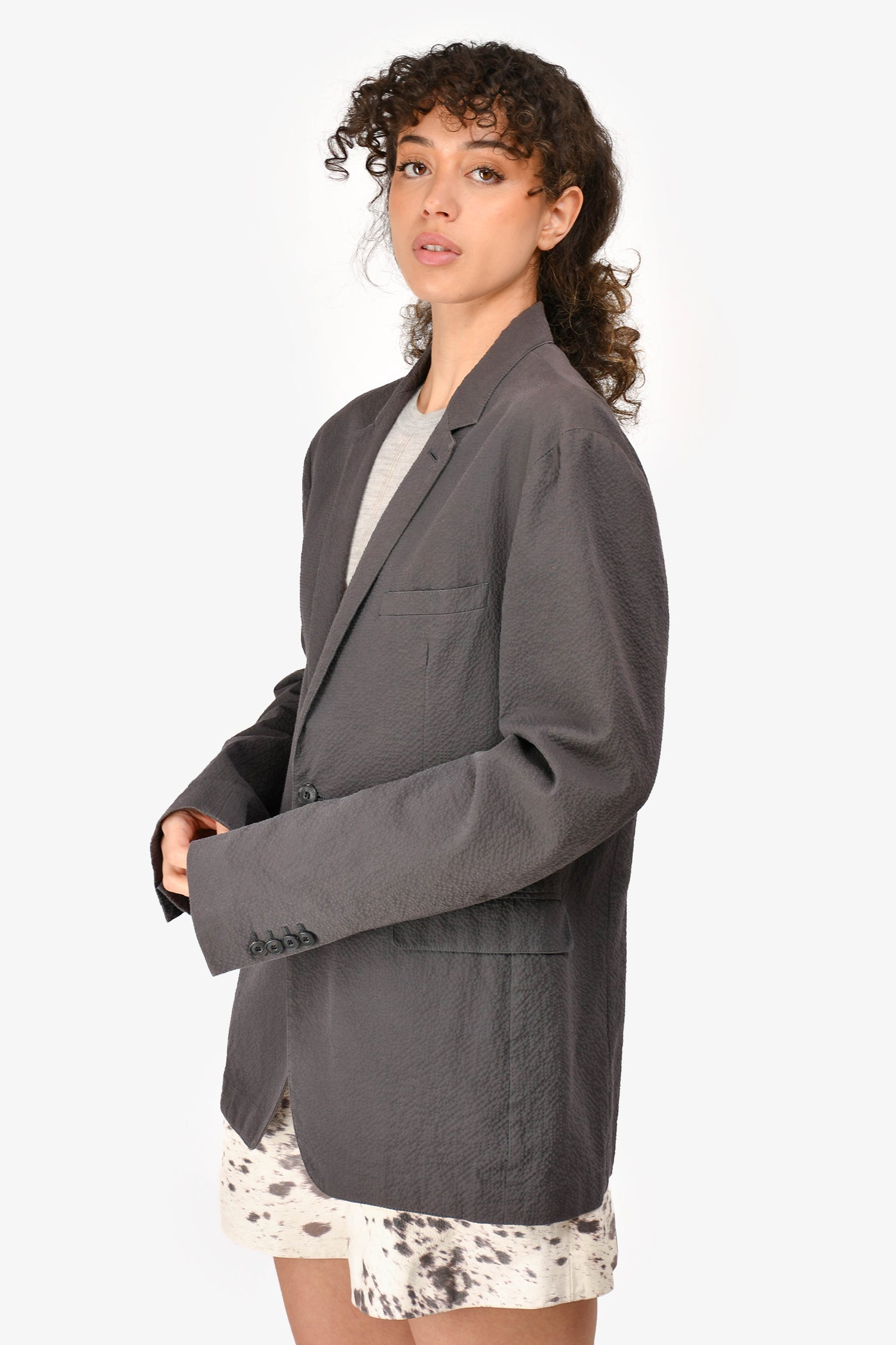 Refresh availabilityBurberry Grey Cotton Blend Relaxed Fit Blazer. Front button closure. Front slip pockets. Unlined. Tonal stitching.
