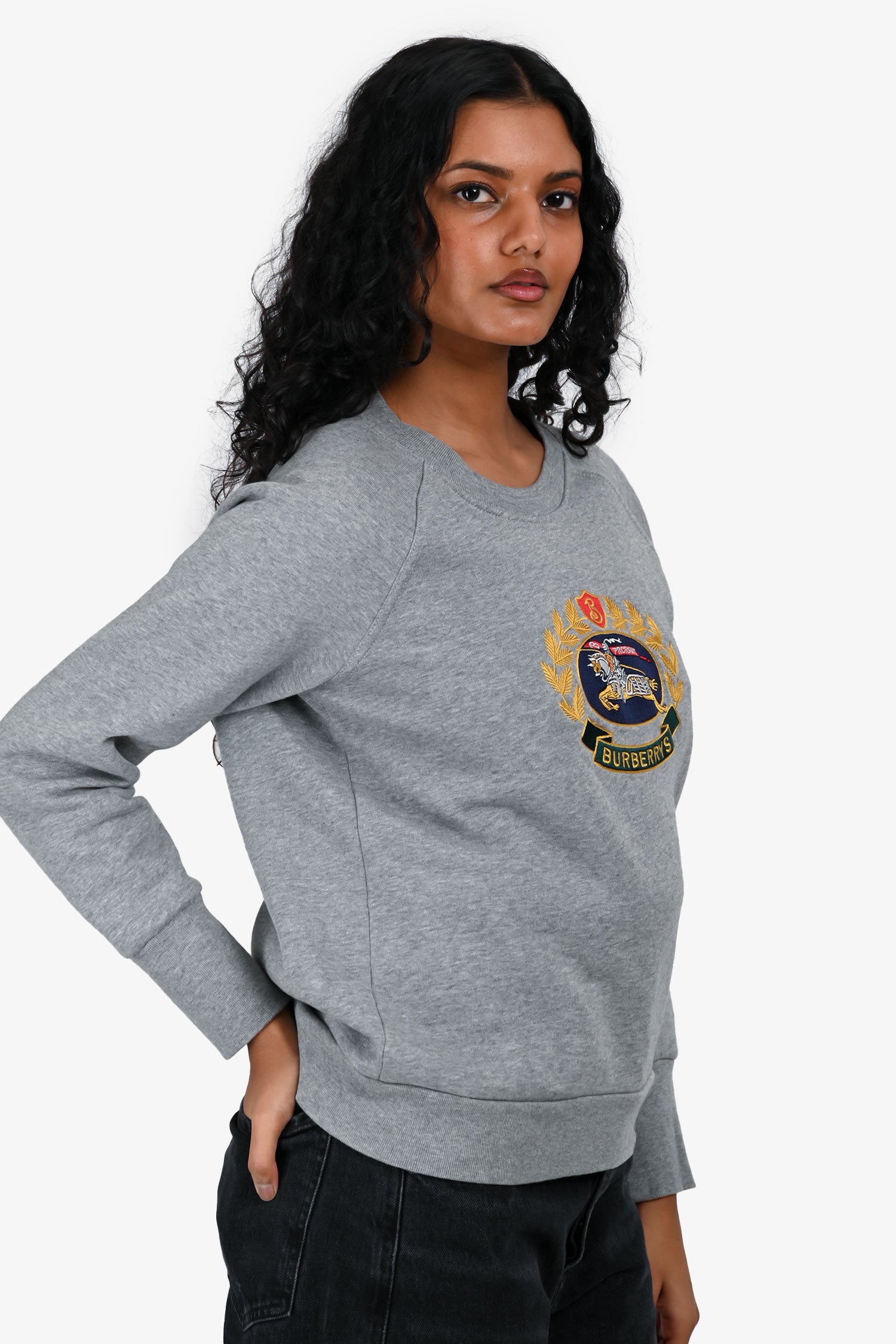 Burberry Grey Logo Embroidered Crewneck Sweater Size XS