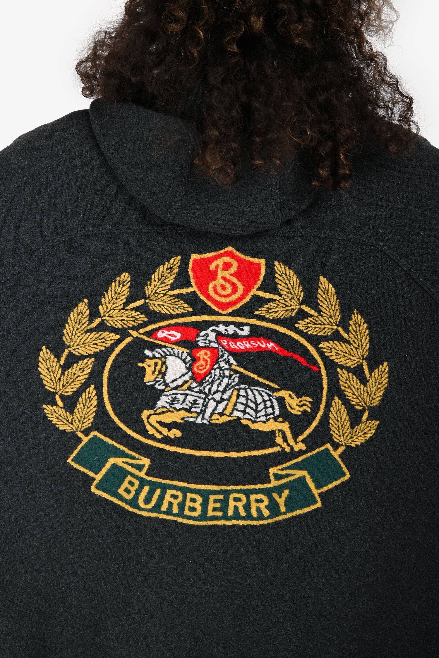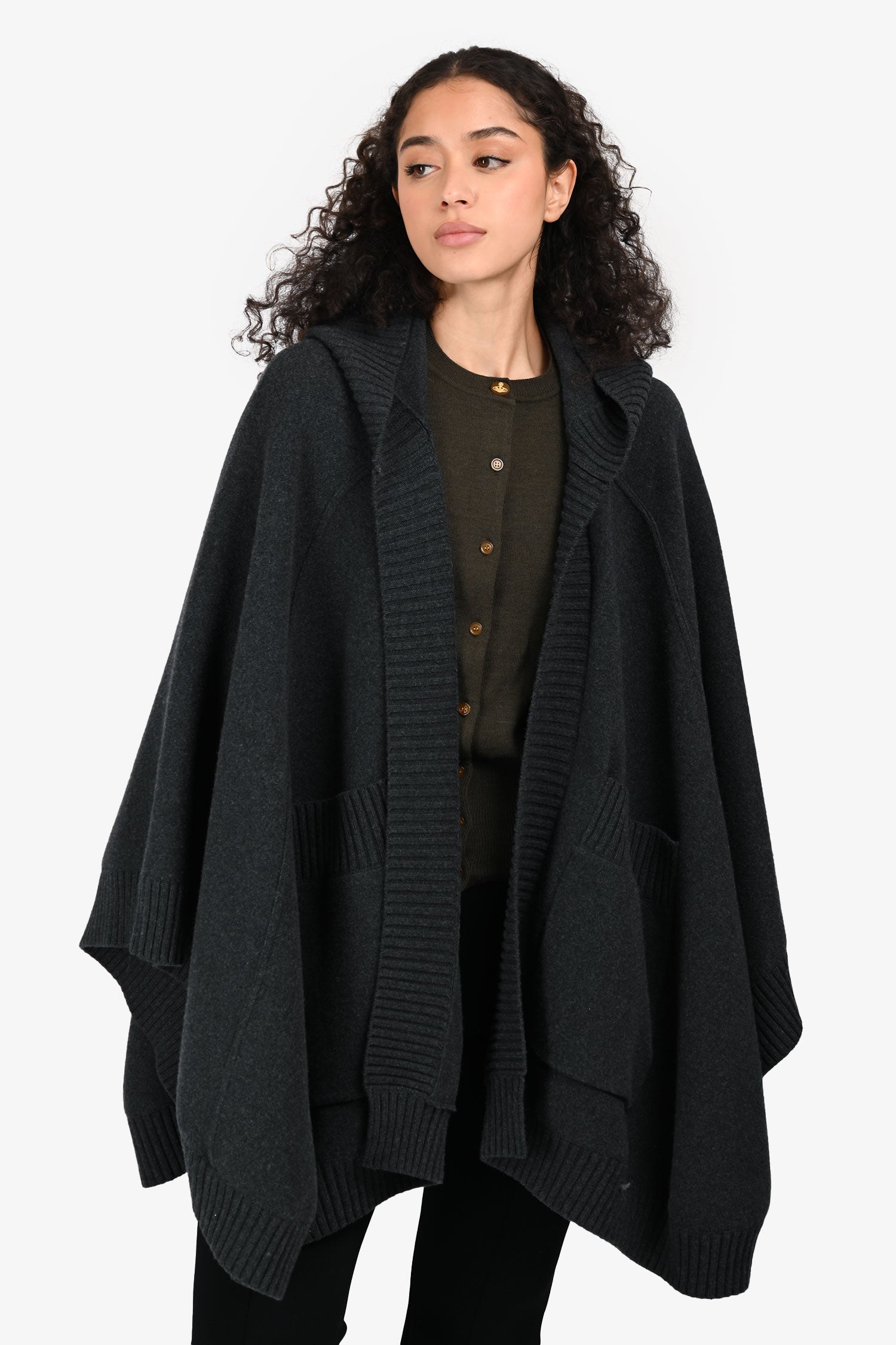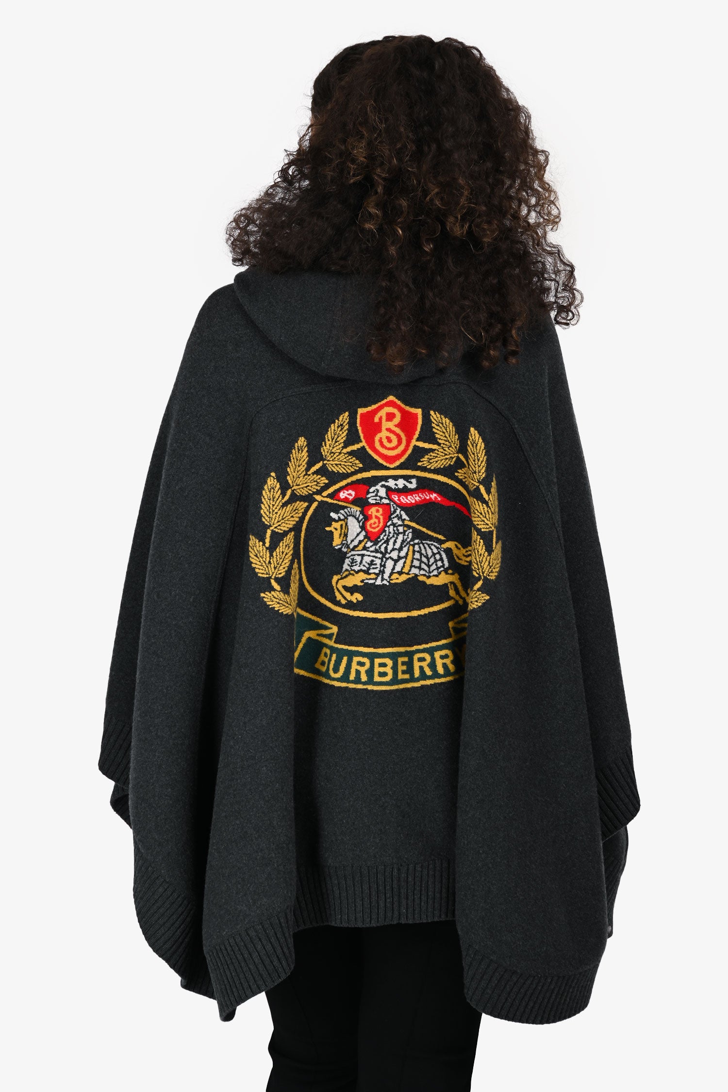 Refresh availabilityBurberry Grey Wool/Cashmere Poncho Cardigan. Slip-on. Open front. Hooded neckline. 2 exterior slip pockets. Unlined. Tonal stitching.