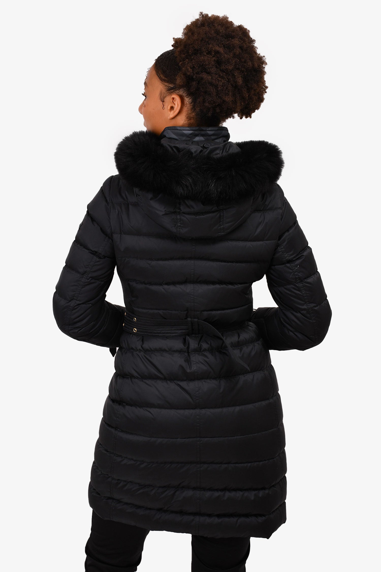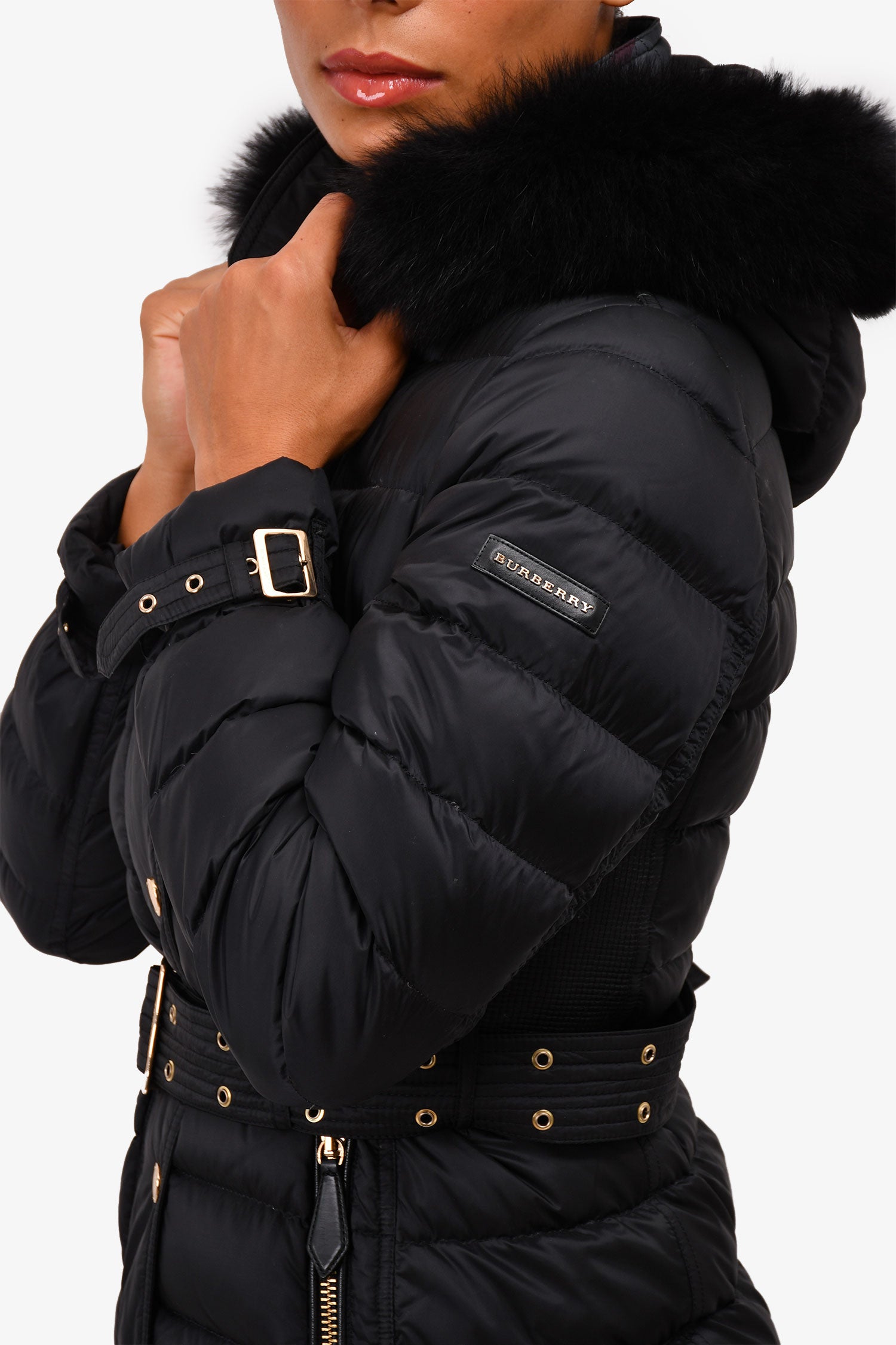 Burberry London Black Nylon/Fur Belted Jacket GHW Size S