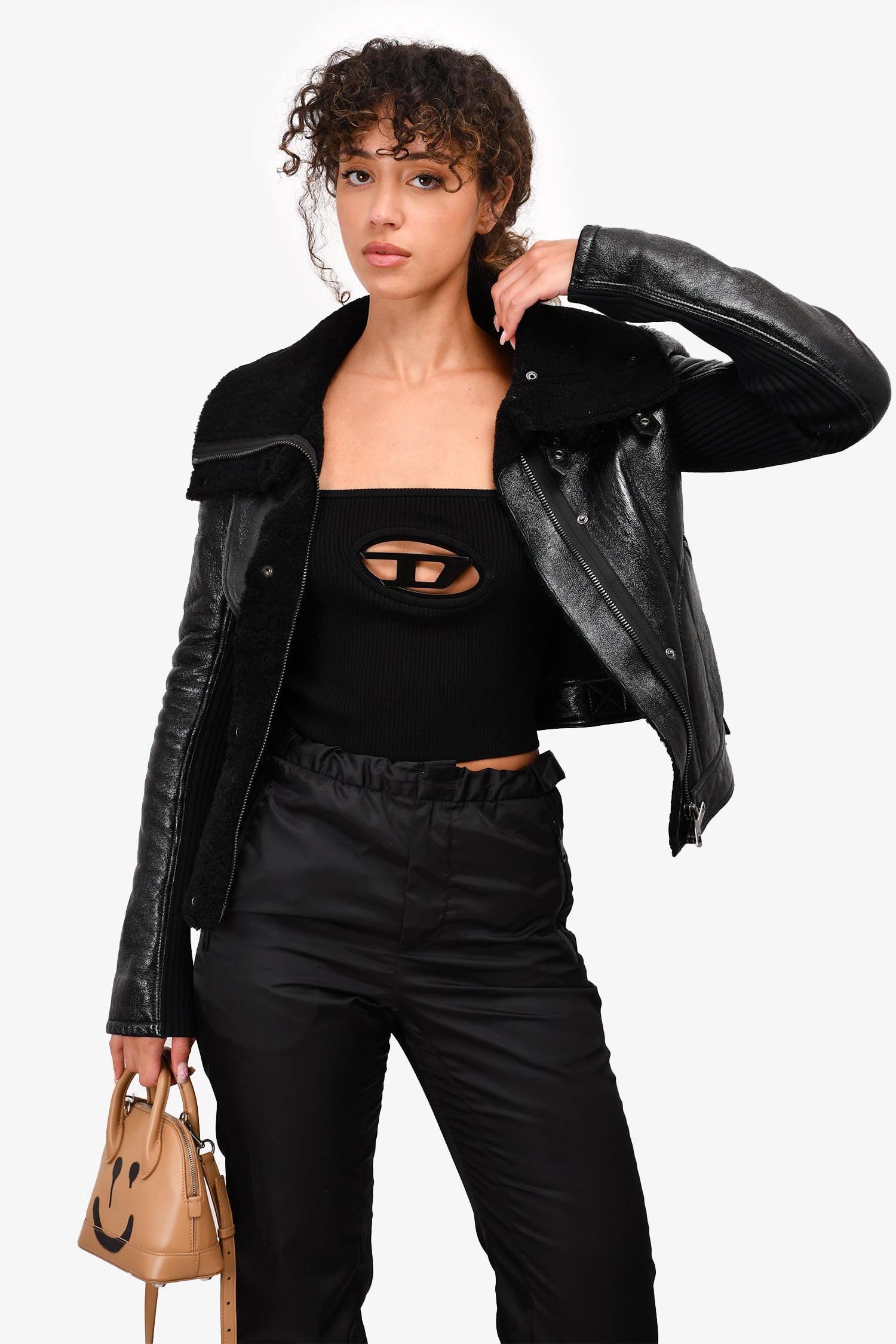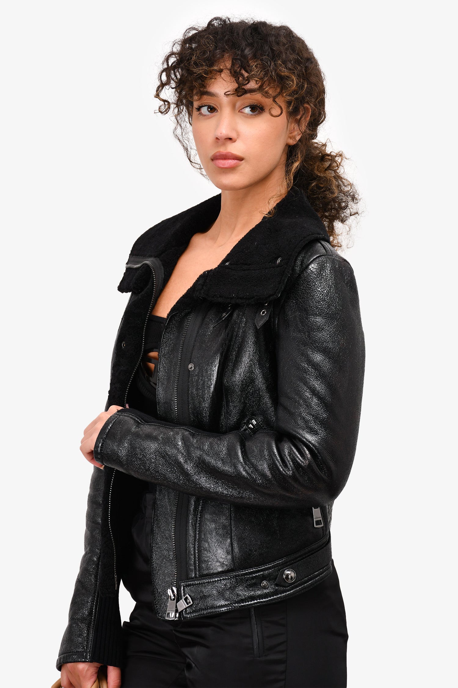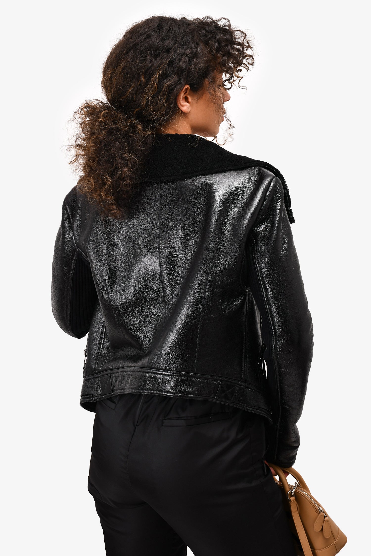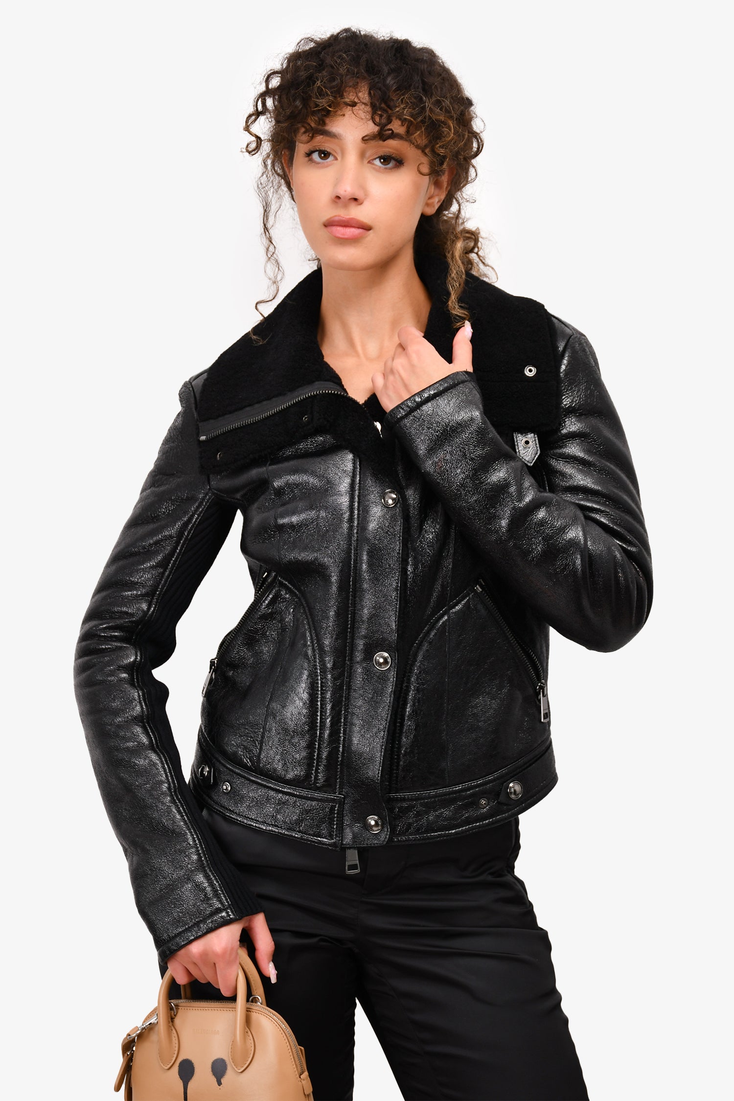 Burberry London Black Shearling Lined Biker Jacket Size 8 US