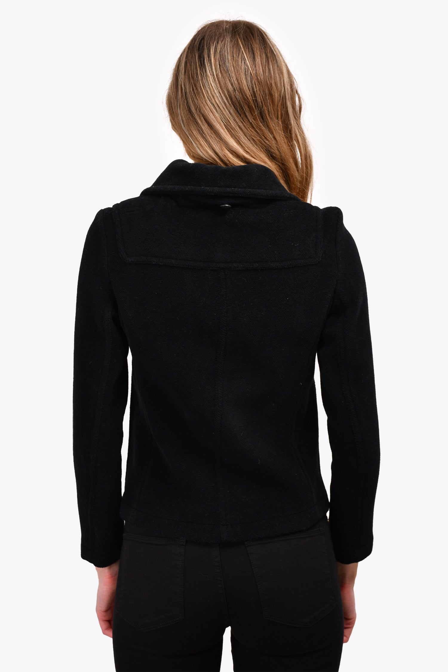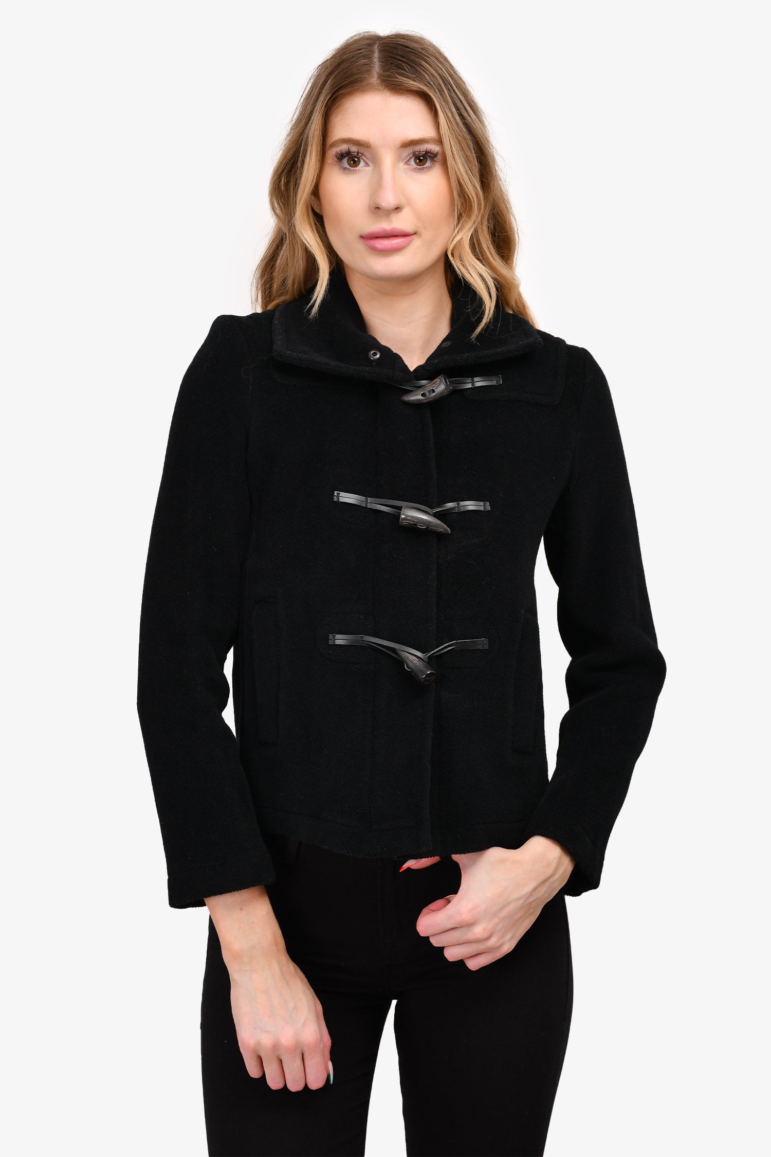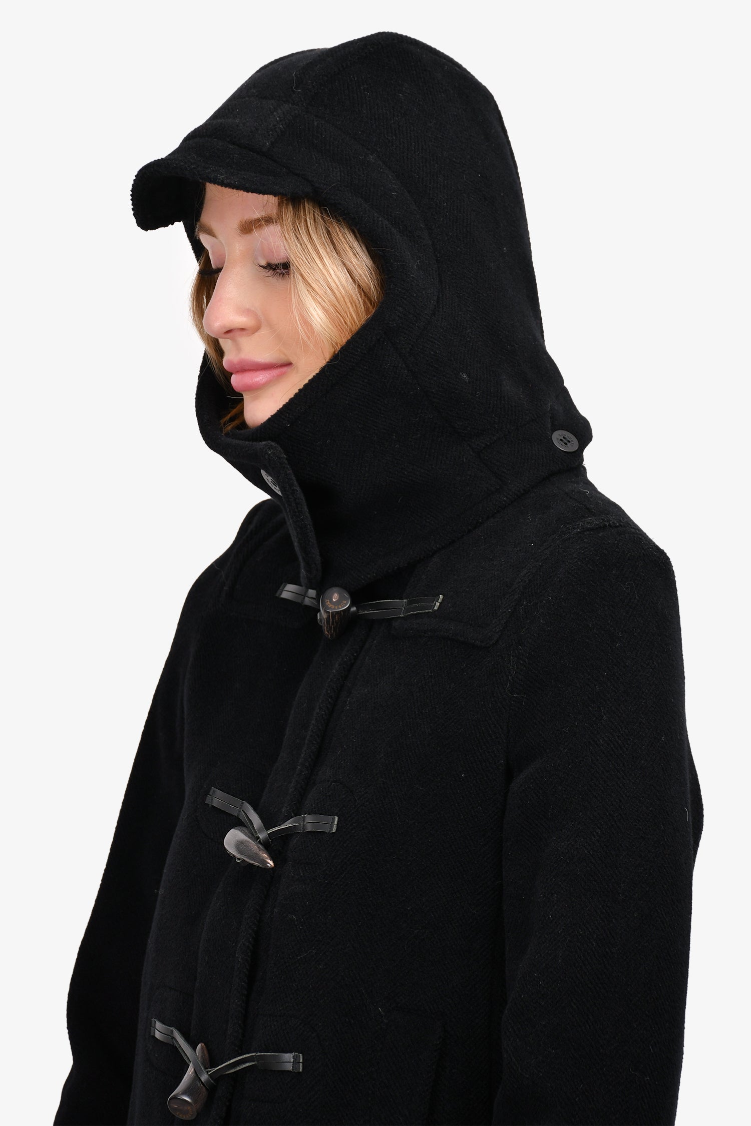 Refresh availabilityBurberry London Black Wool Duffle Jacket. Front button up closure. Tonal stitching.