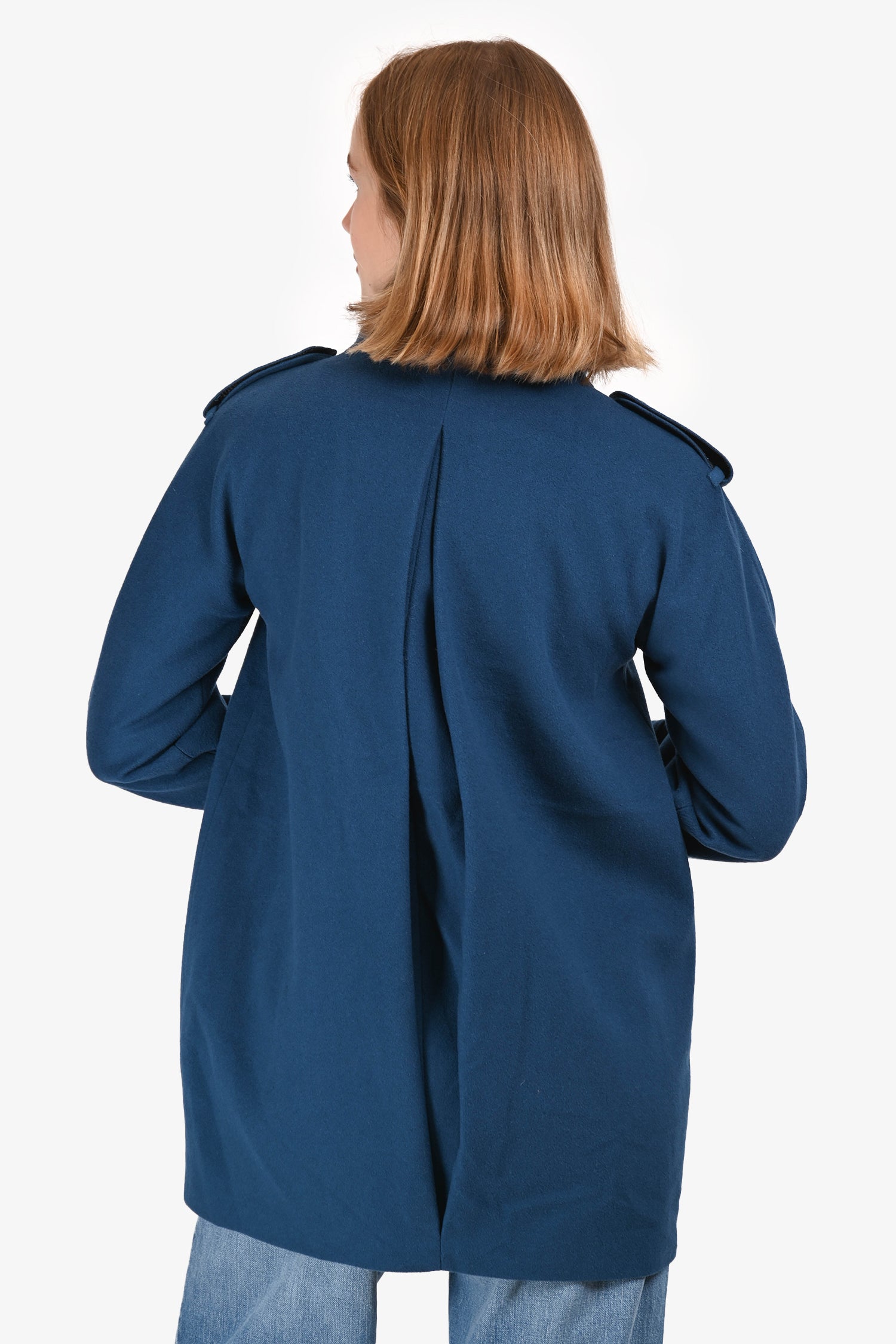 Burberry London Blue Wool Double Breasted Coat Size 2 US