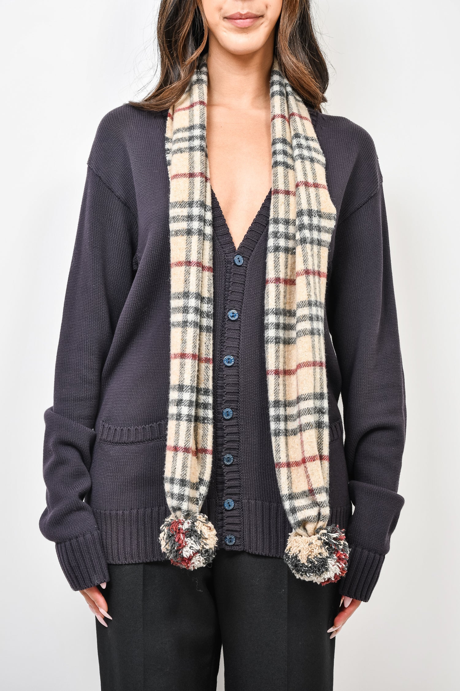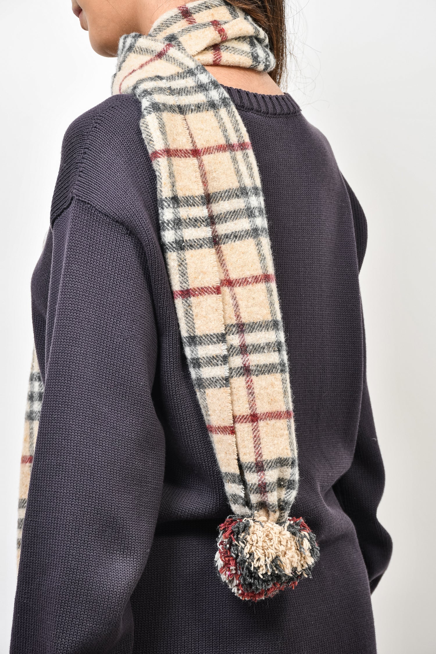 Refresh availabilityBurberry London Brown Check Lambswool PomPom End Scarf. Tonal stitching.