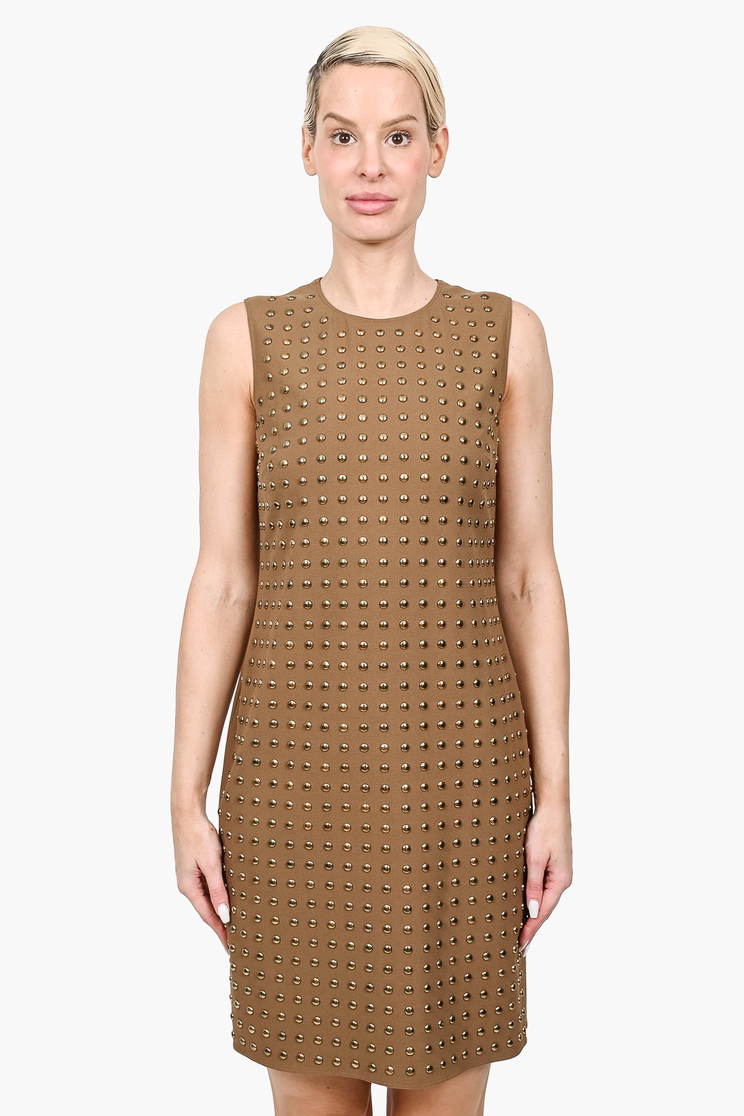 Refresh availabilityBurberry London Brown Sleeveless Gold Beaded Dress. Round neck. Rear zip closure. Unlined. Tonal stitching.