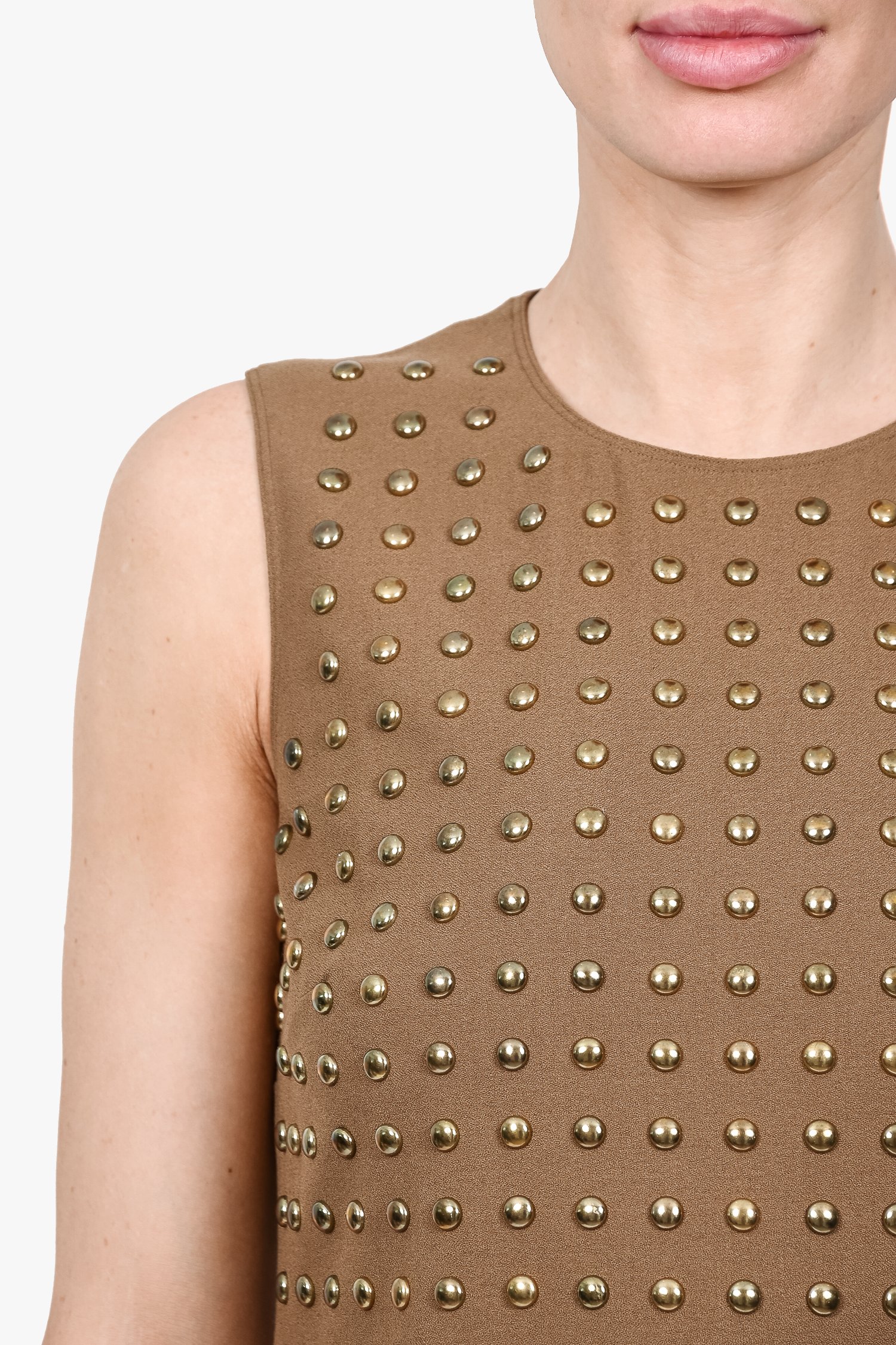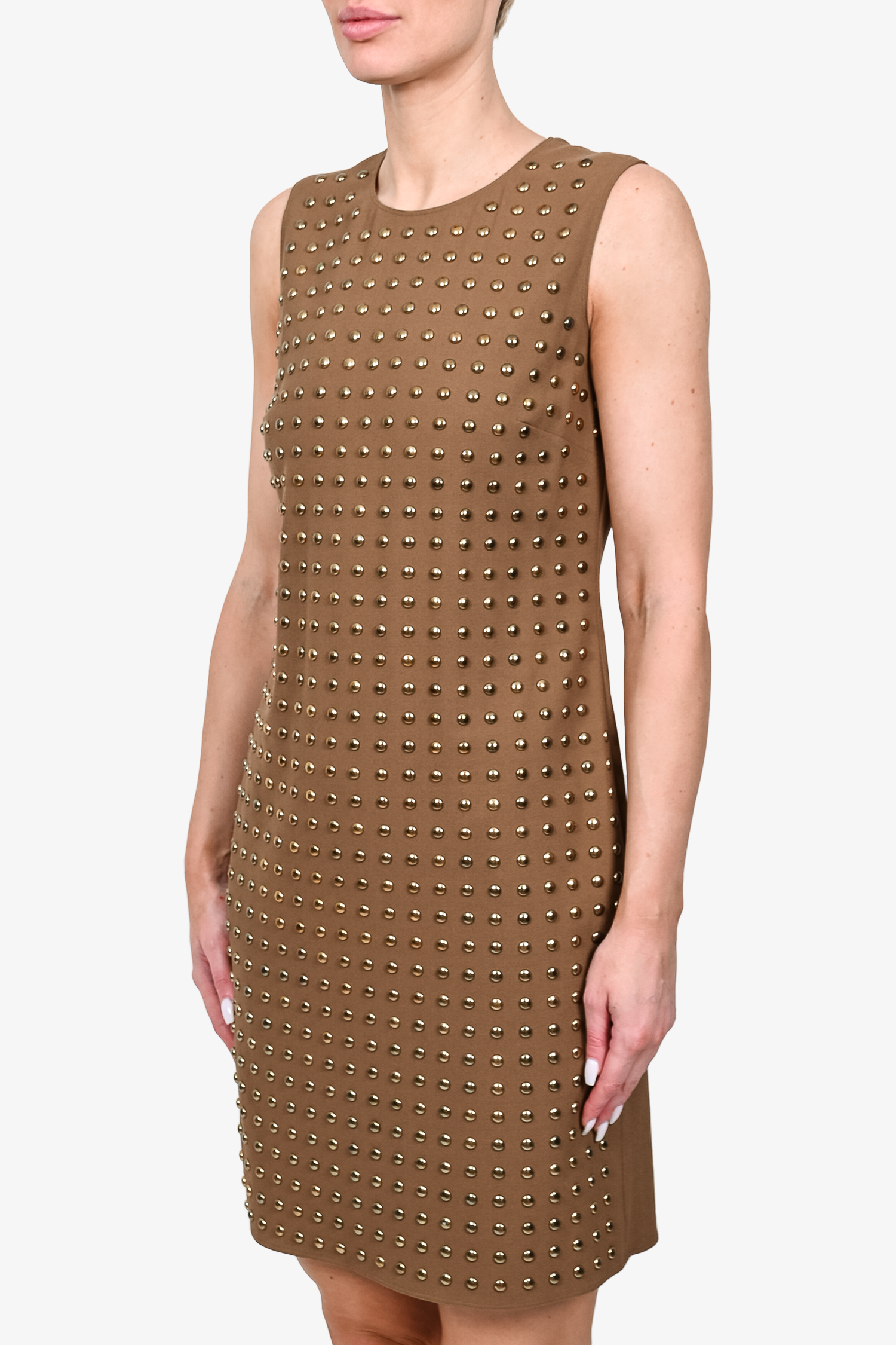 Burberry London Brown Sleeveless Gold Beaded Dress Size 6