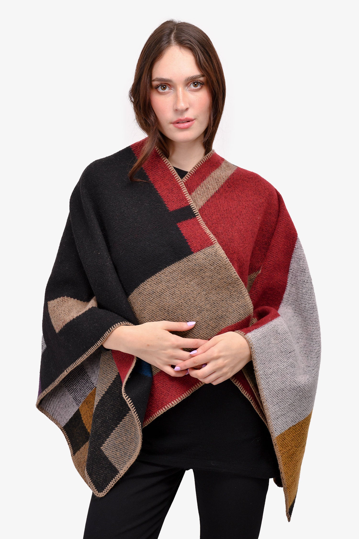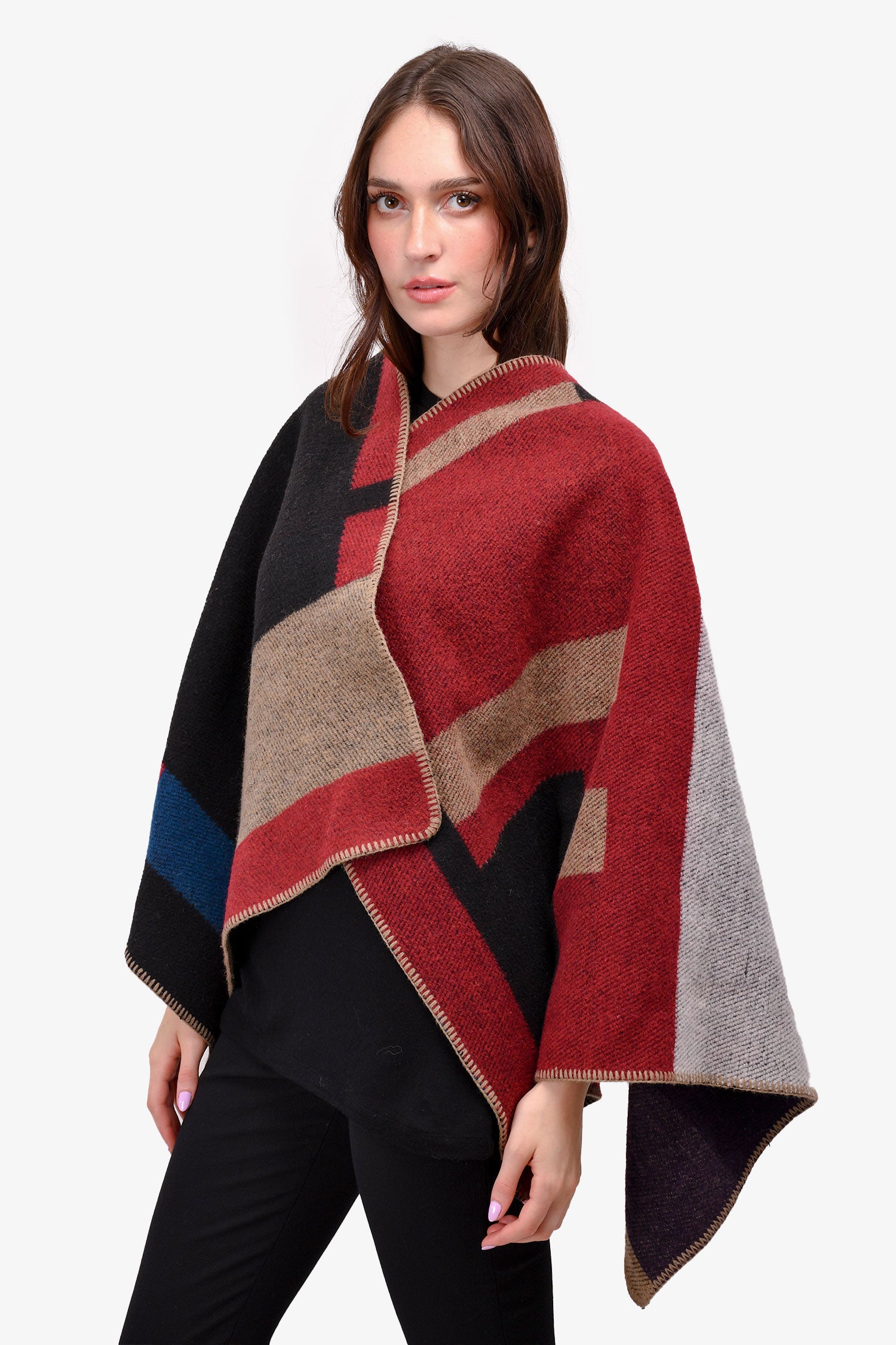 Refresh availabilityBurberry London Burgundy/Teal Check Blanket Poncho.