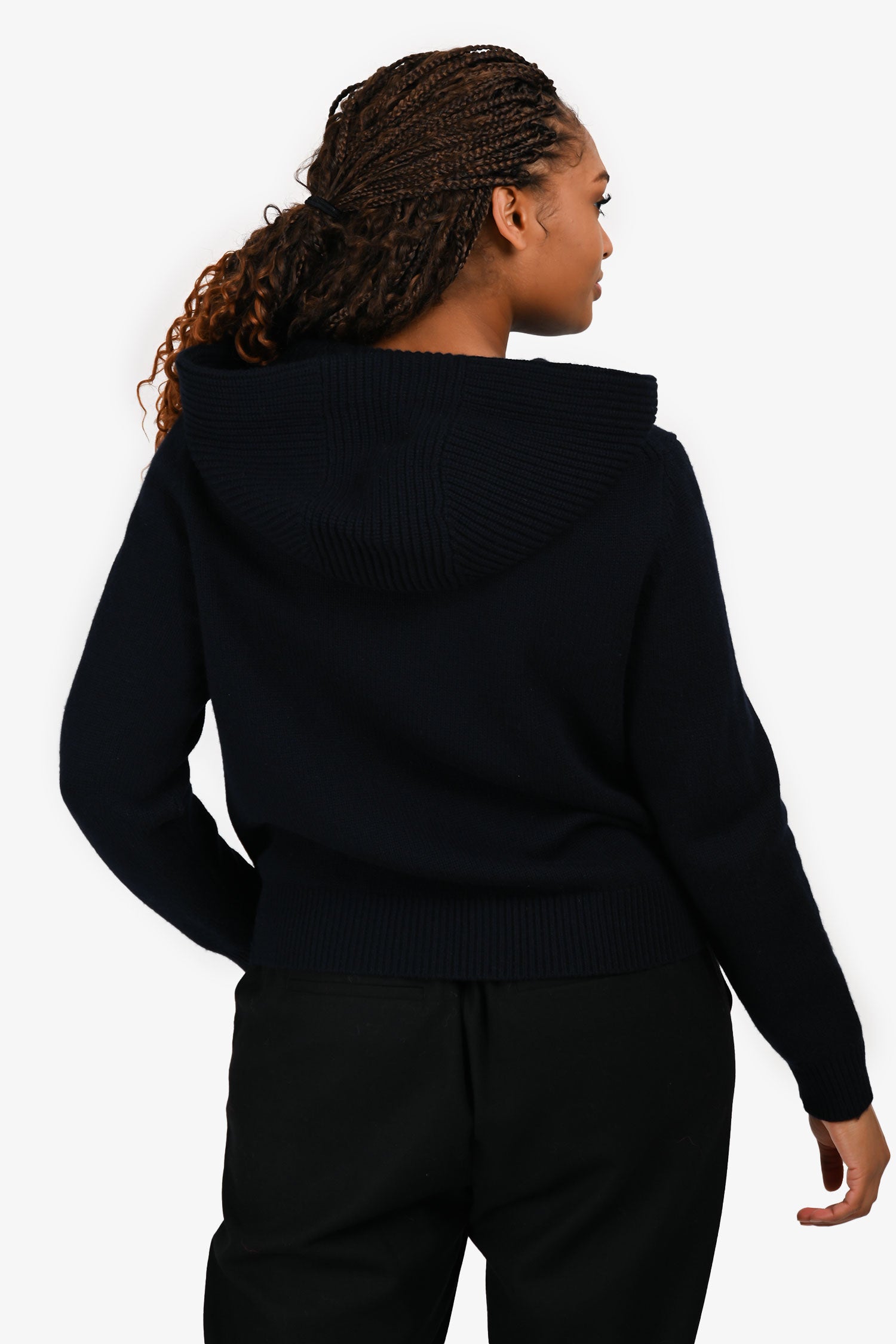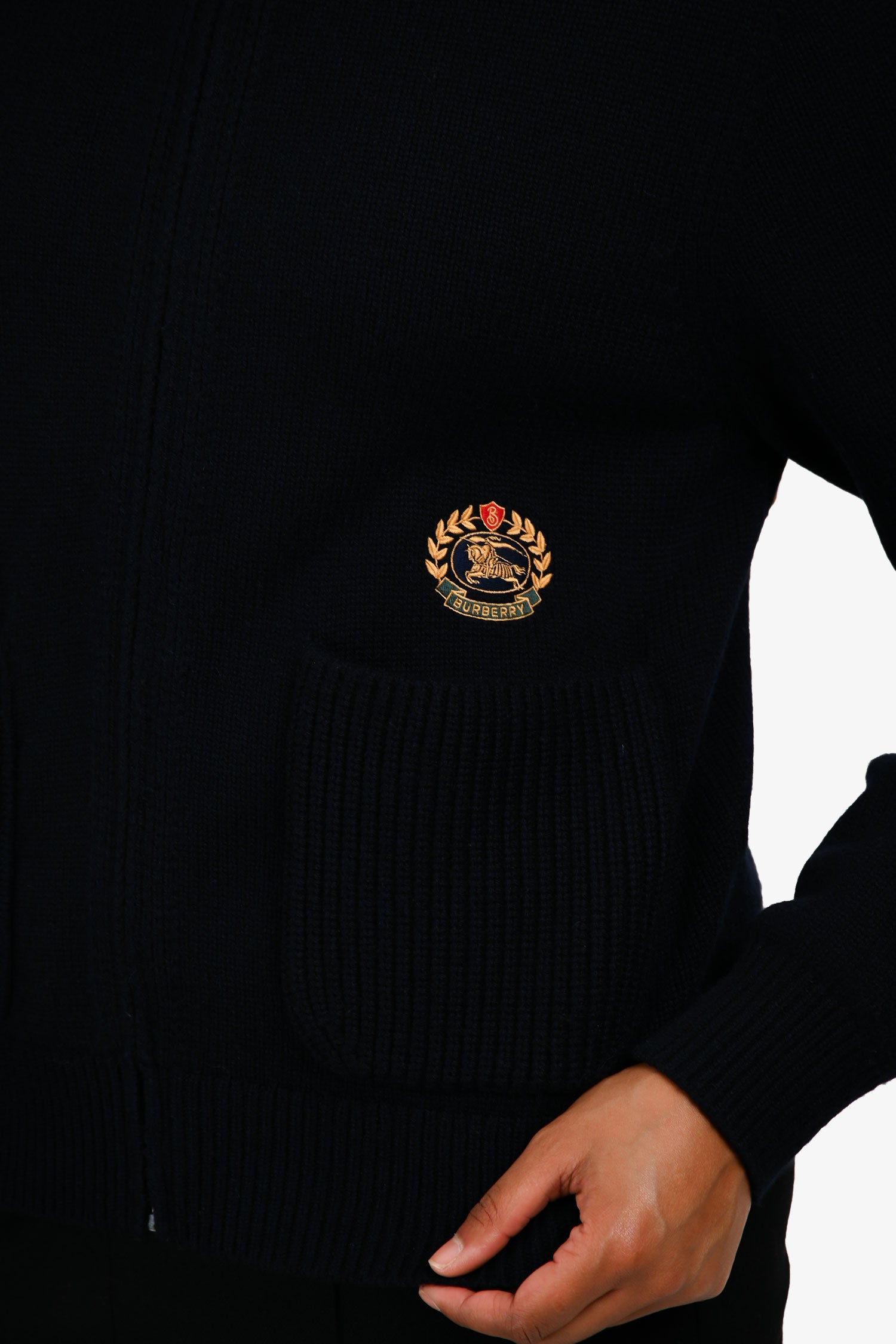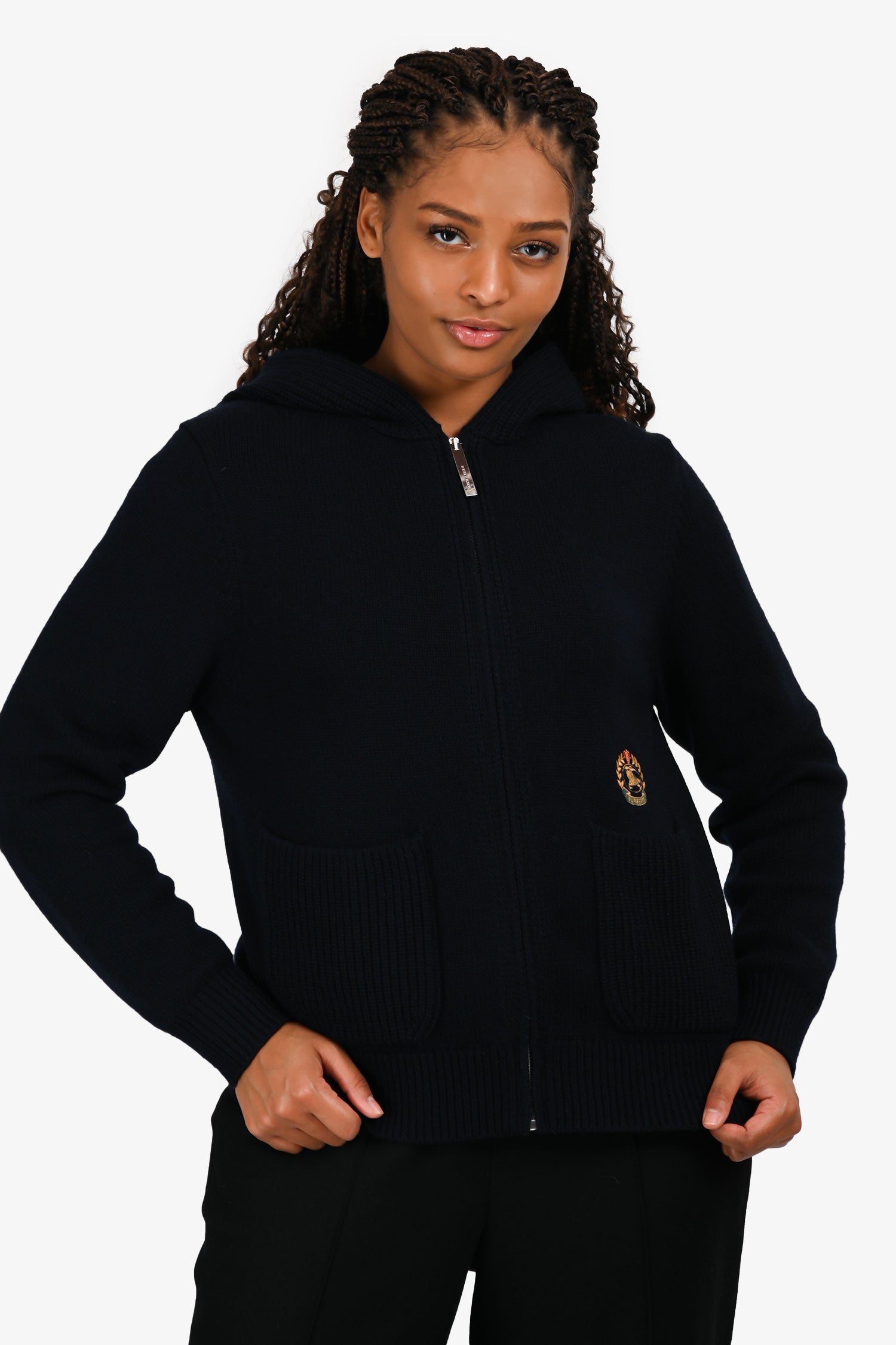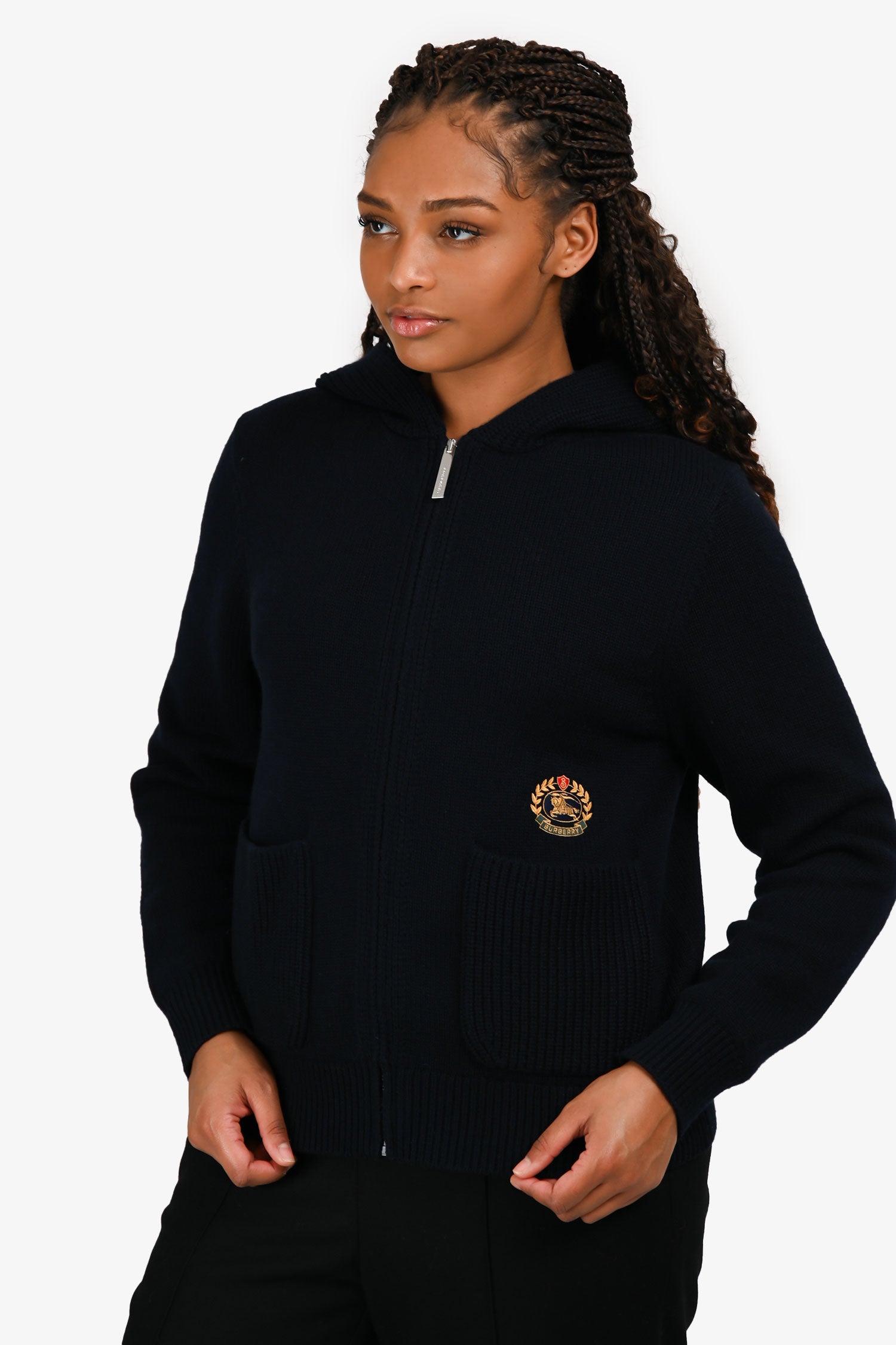 Burberry London Navy Cashmere Logo Hooded Zip Up Cardigan Size M