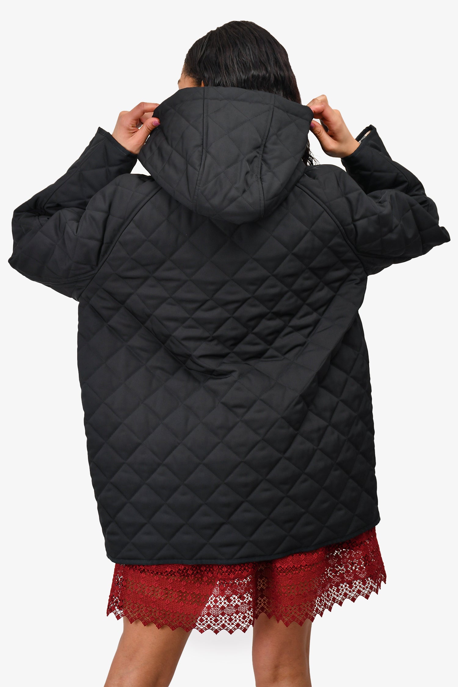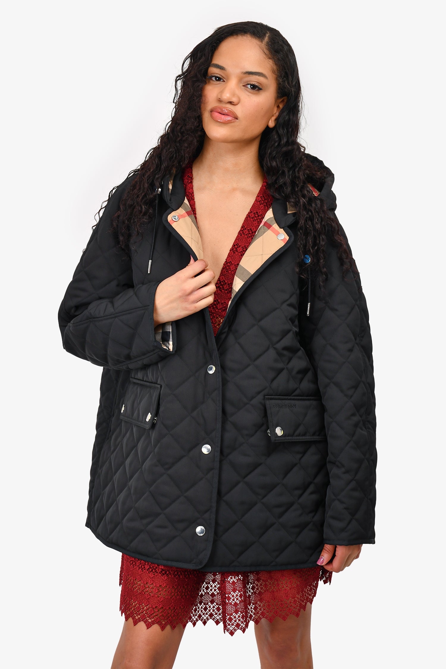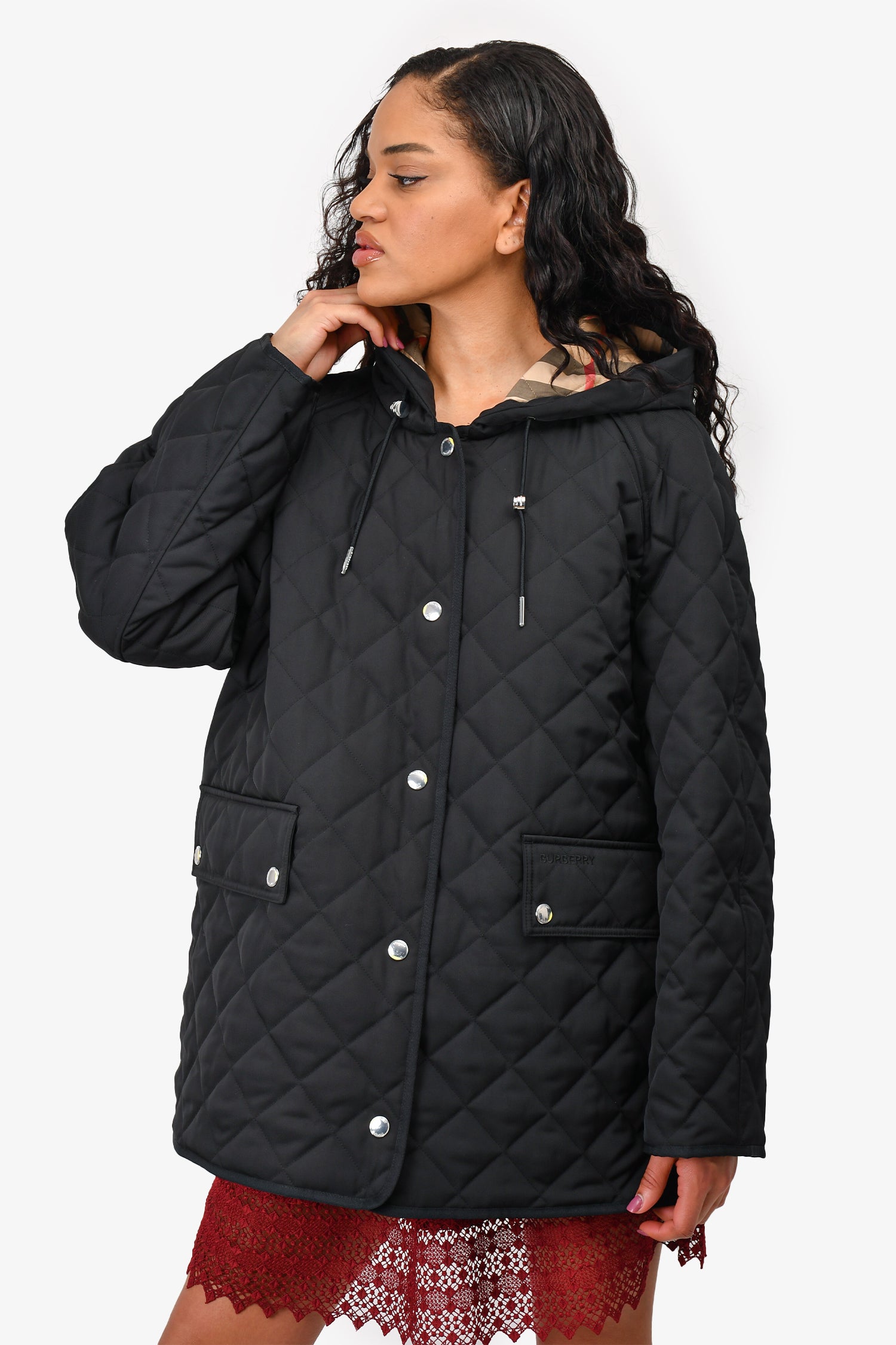 Refresh availabilityBurberry London Nylon Quilted Jacket with Tags. Snap button closures. 2 hand pockets with button closures. Small interior pocket. Silver hardware. Lined. Tonal Stitching.