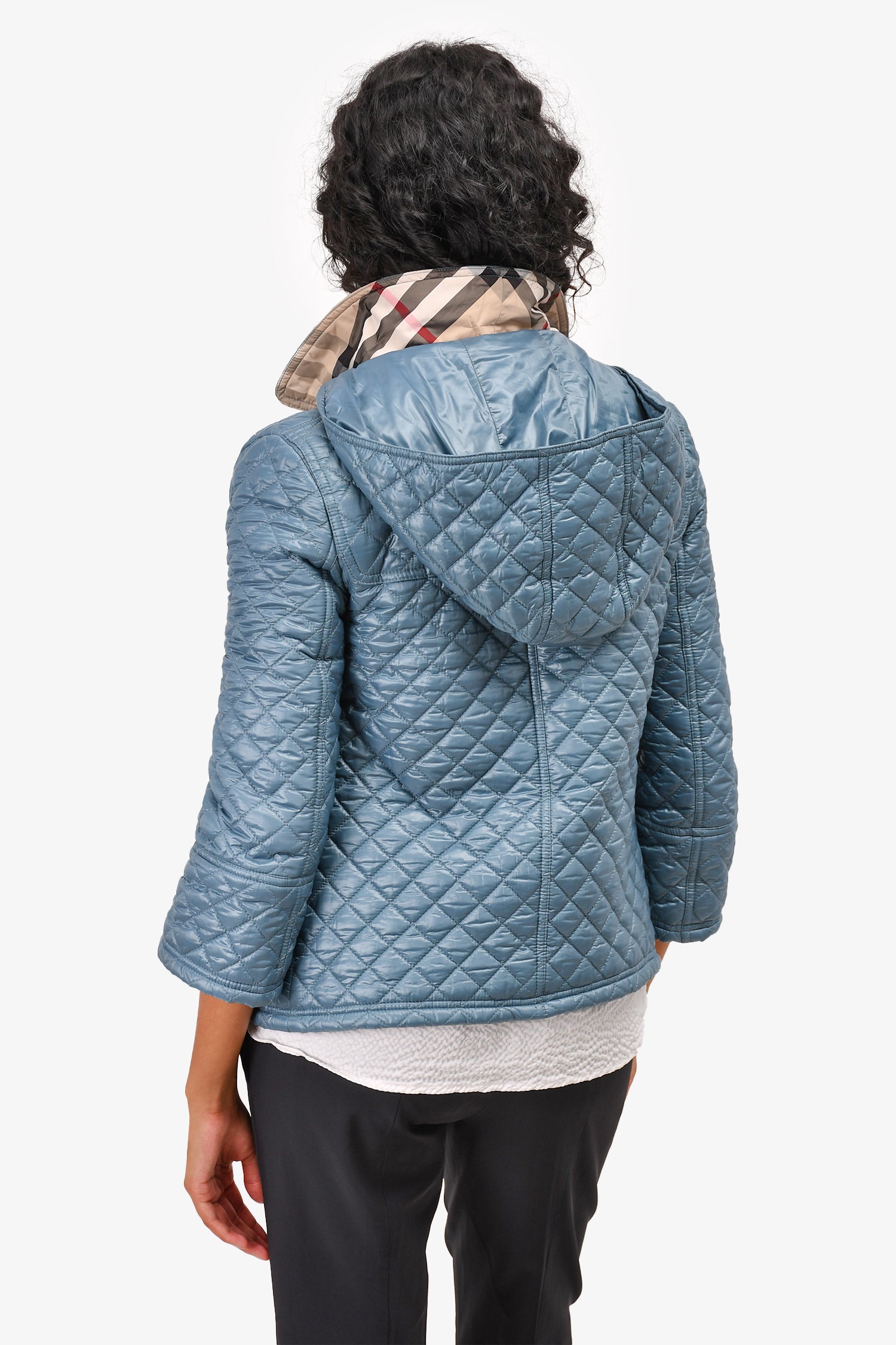 Burberry London Blue Quilted Long Sleeve Jacket Size 2