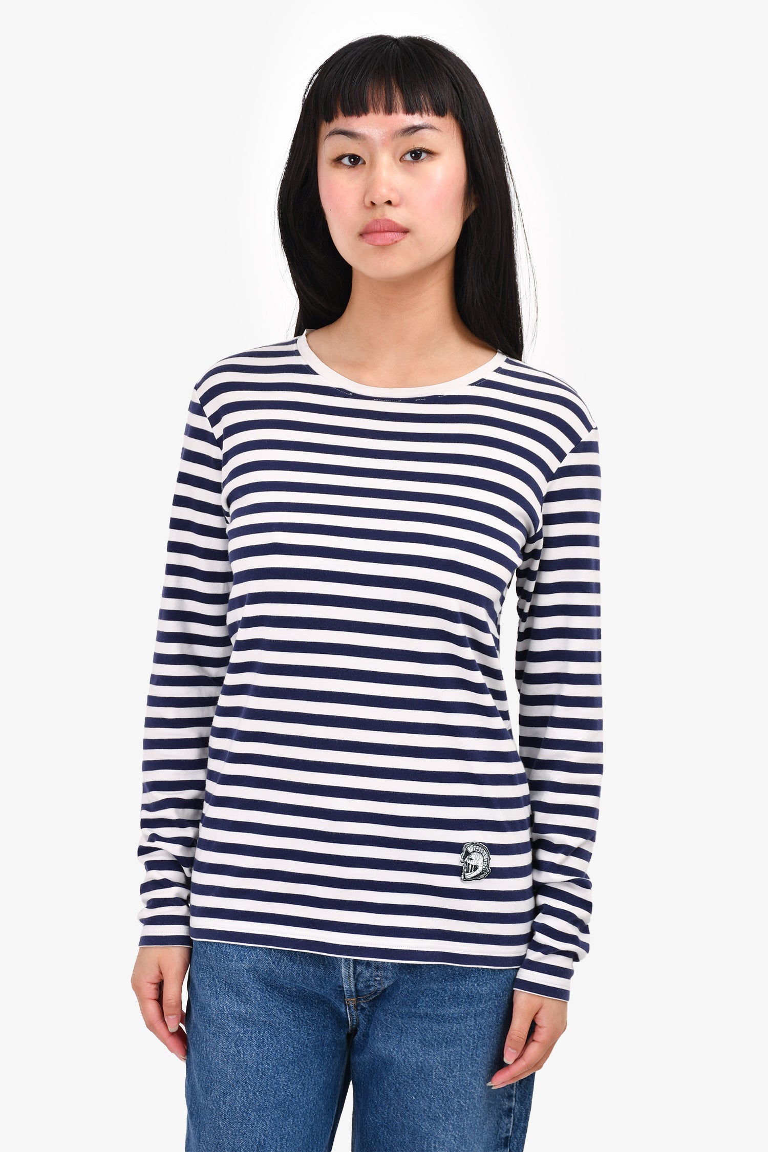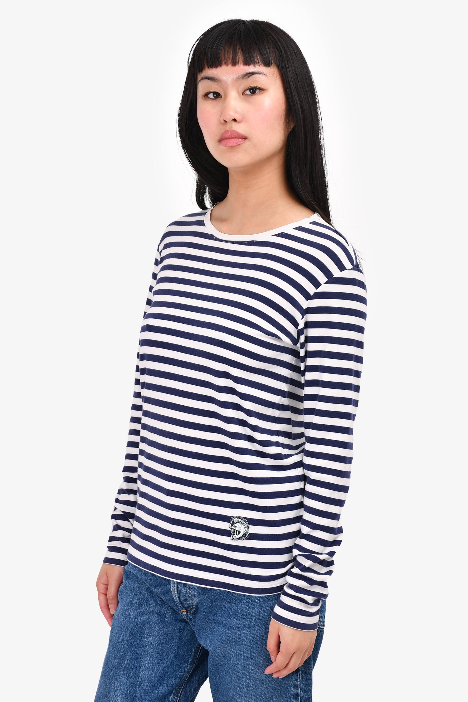 Refresh availabilityBurberry Navy/White Striped Top. Round neck. Pull-on.