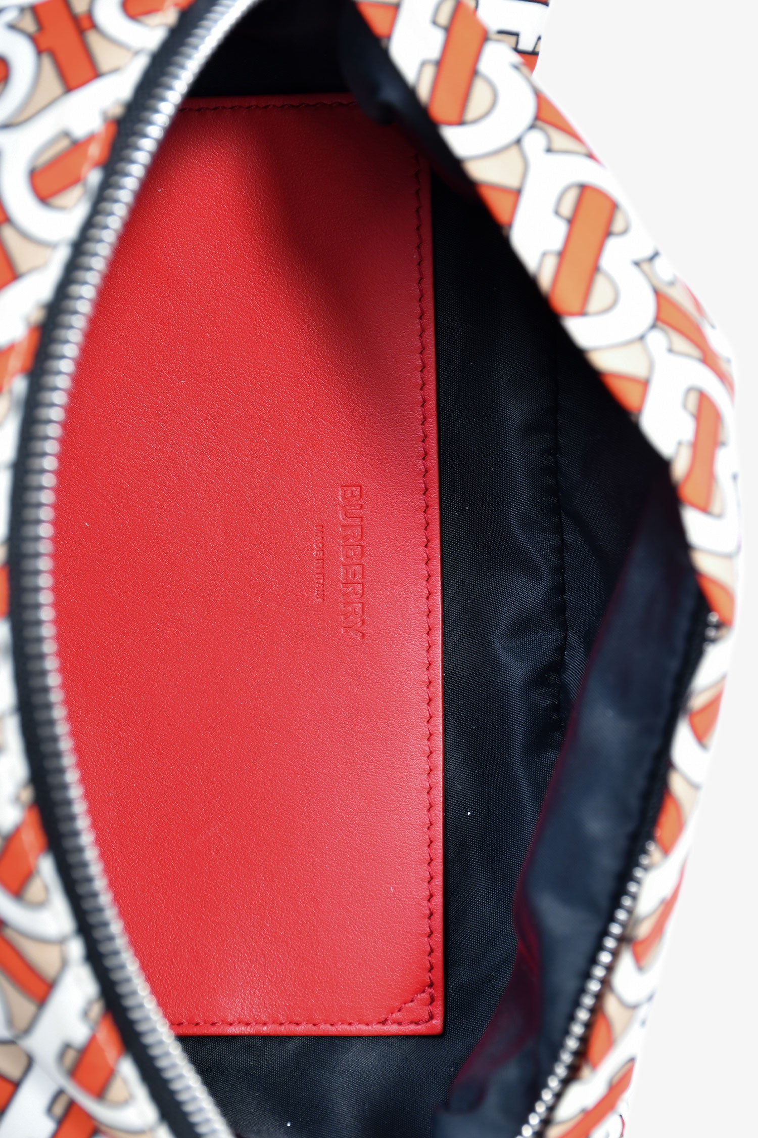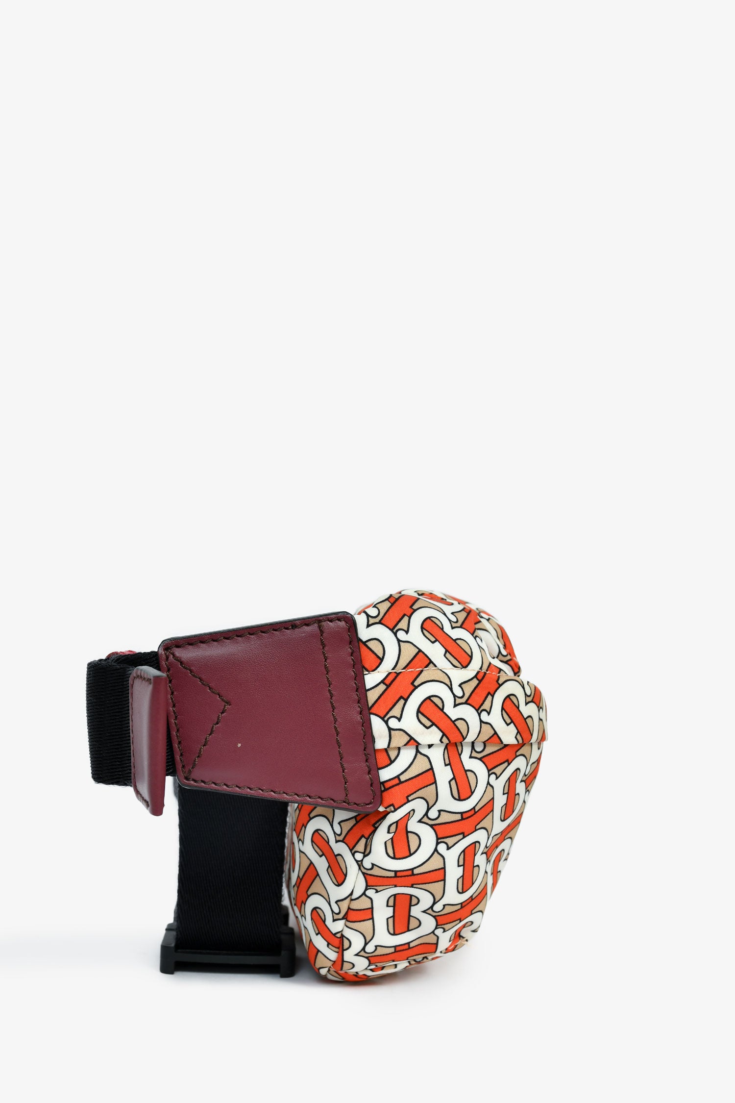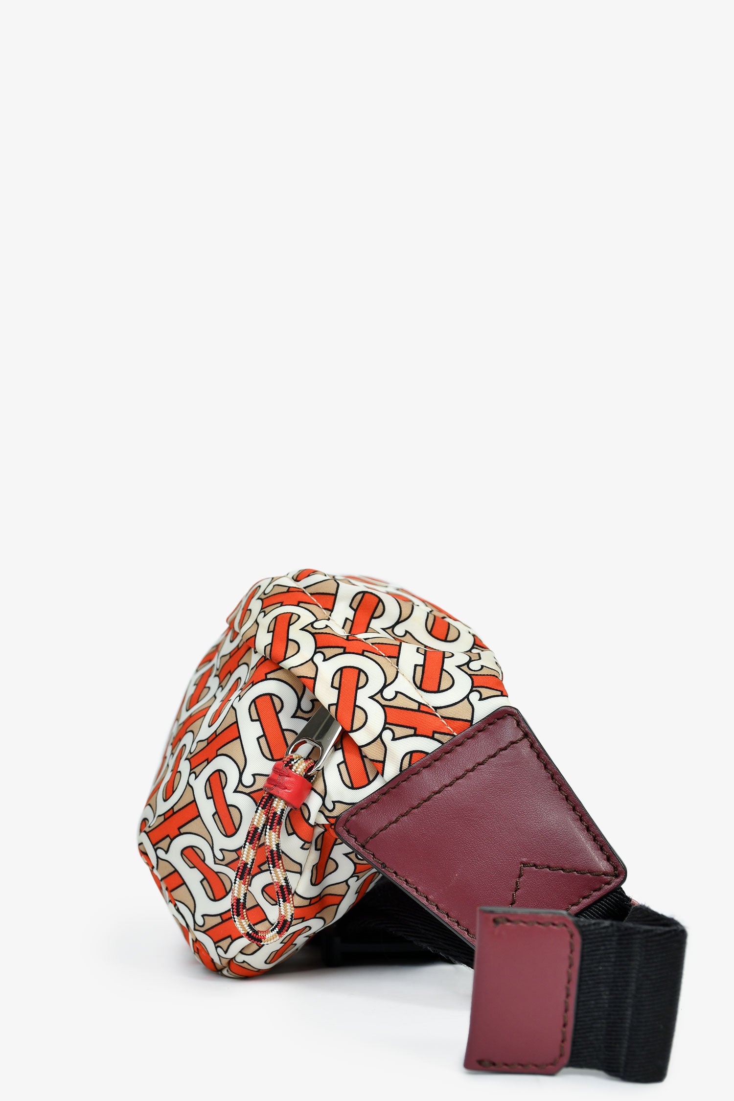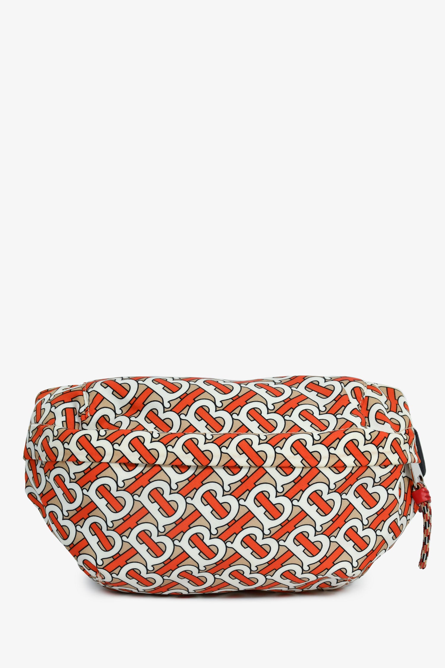Refresh availabilityBurberry Orange/White 'TB' Nylon Belt Bag. Silver-tone hardware. Leather trim. Nylon exterior. Tonal stitching.