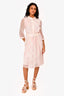 Burberry Pink Check Silk Belted Midi Dress Est Size S