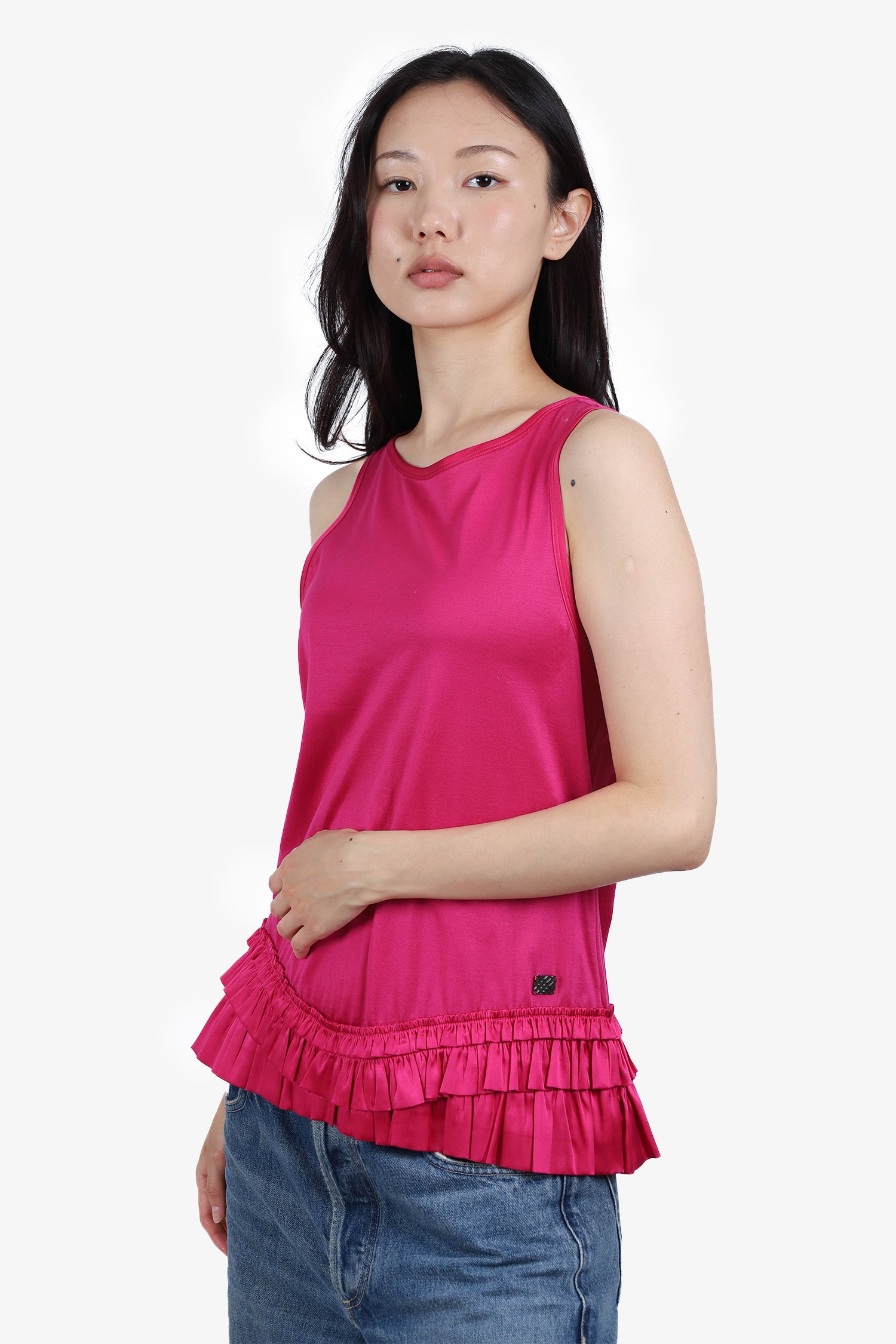 Refresh availabilityBurberry Pink Silk Ruffle Hem Sleeveless Top. Rear zip closure. Tonal stitching.