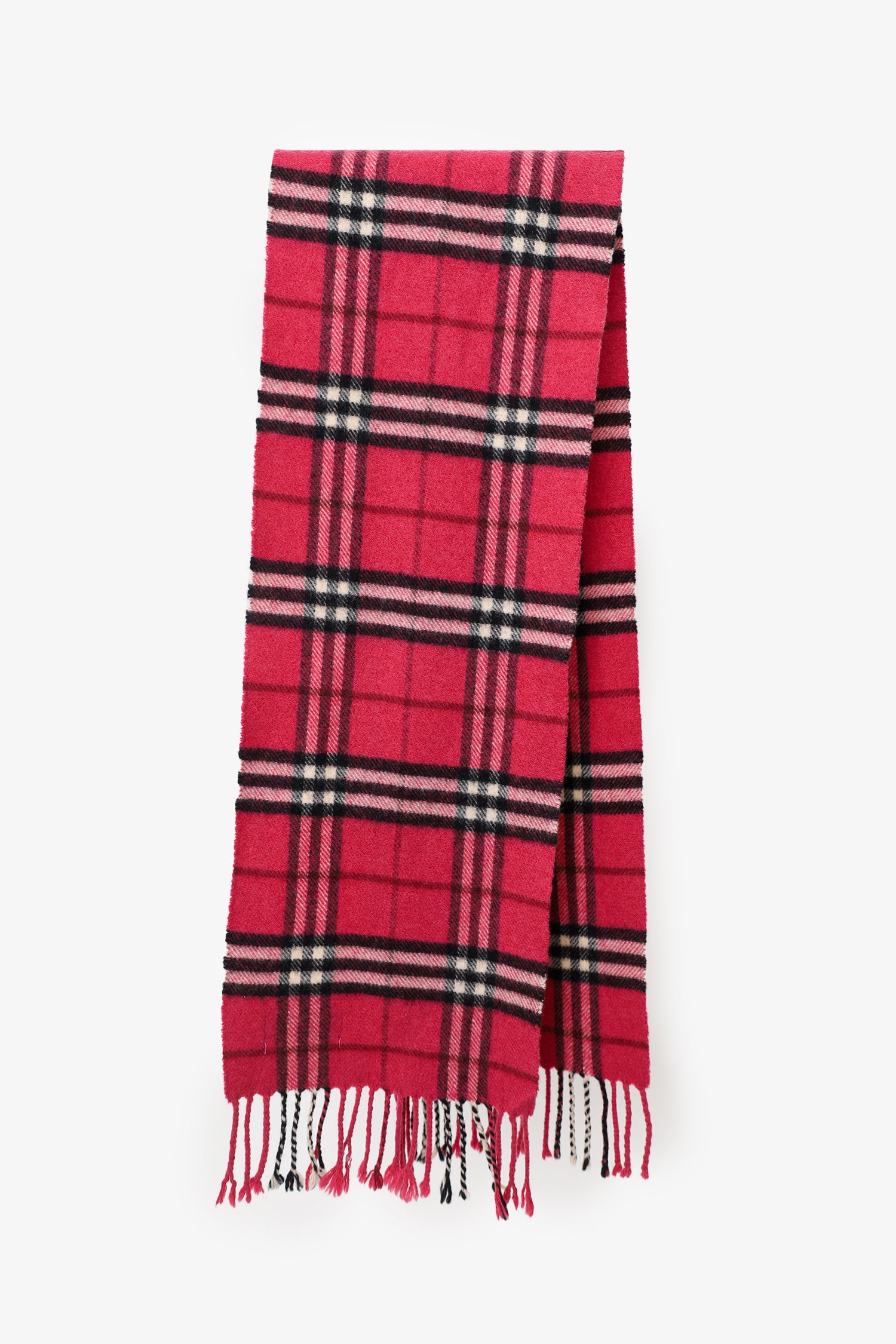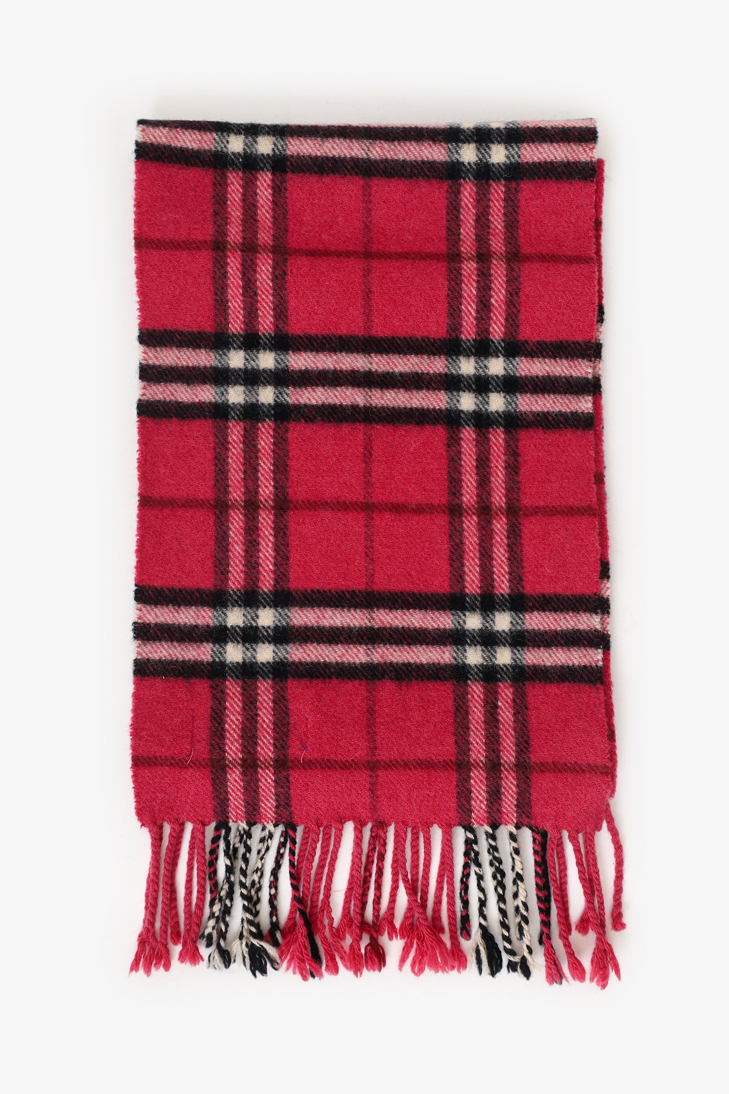 Refresh availabilityBurberry Pink Wool/Cashmere Nova Check Fringe Scarf. Tonal stitching.