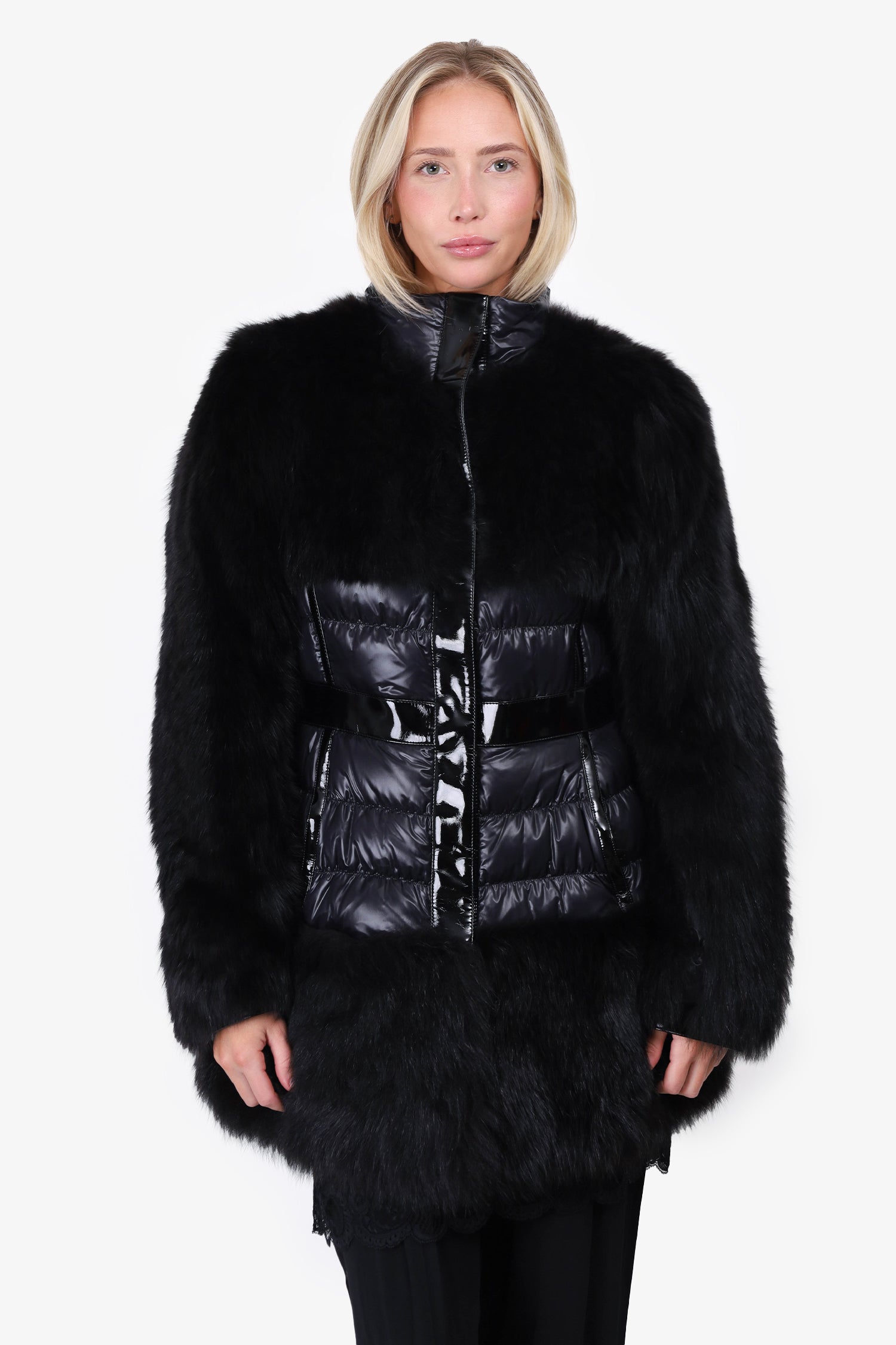 Refresh availabilityBurberry Prorsum Black Fox Fur Puffer Jacket. Front zip and snap button closure. Two side zip closure pockets. Black-tone hardware. Lined. Tonal stitching.