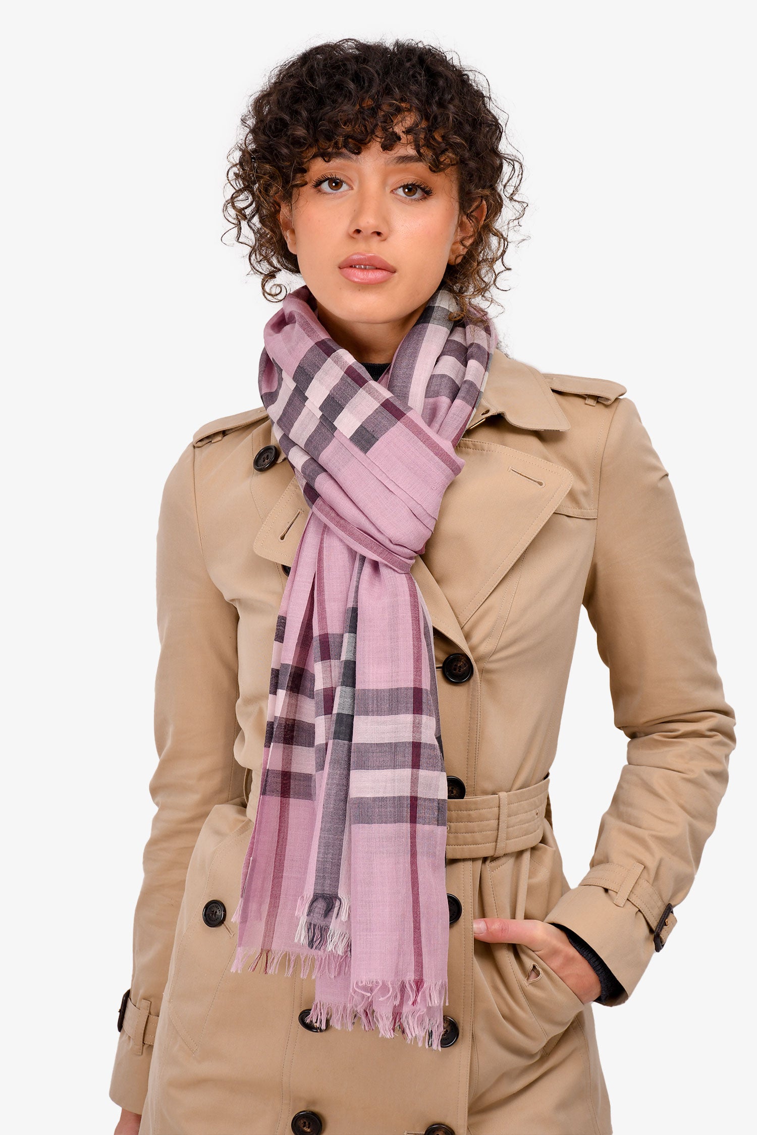 Refresh availabilityBurberry Purple/Black Check Wool/Silk Thin Scarf. Tonal stitching.