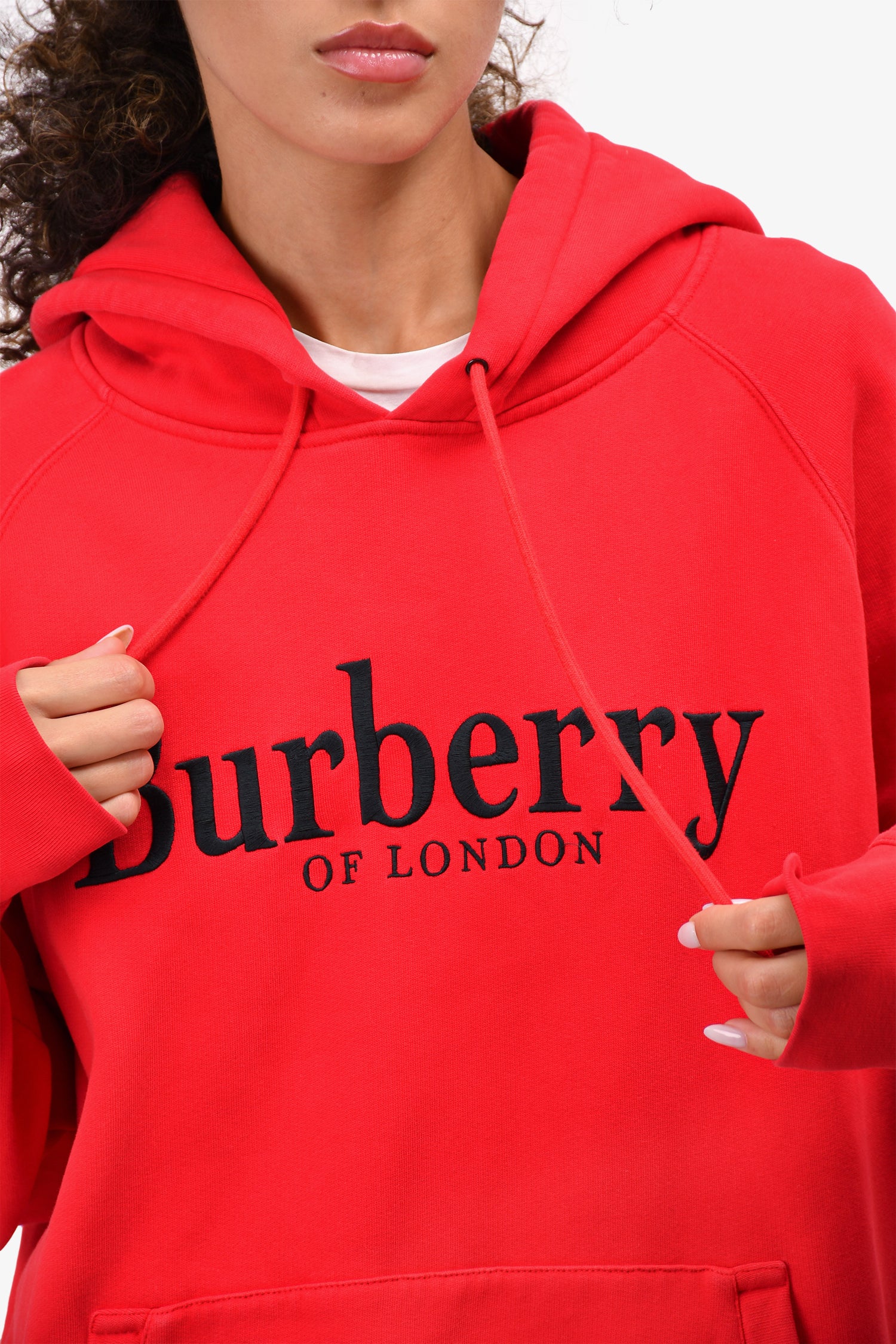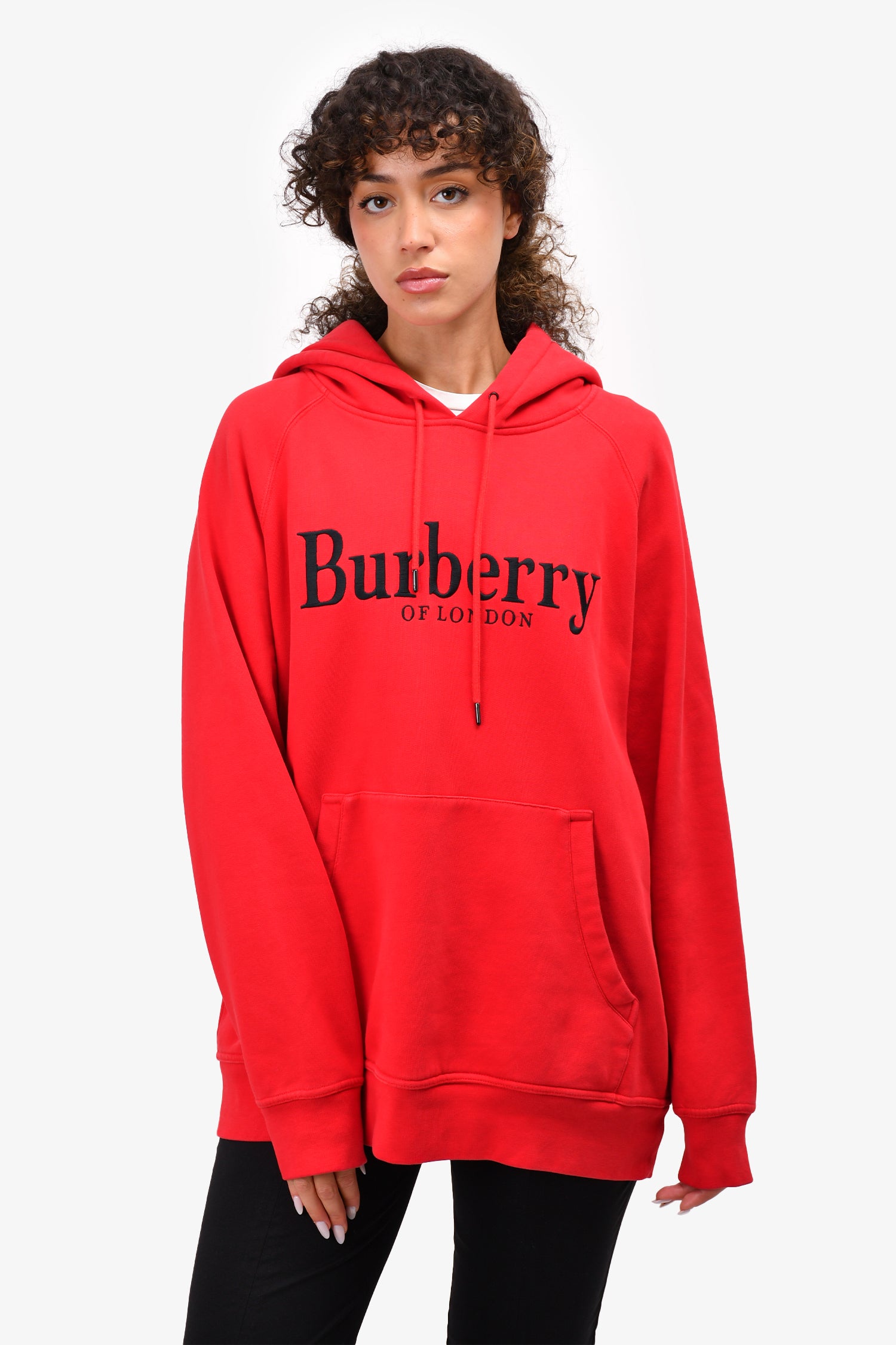 Refresh availabilityBurberry Red Logo Embroidered Hoodie. Pull-on. Front pockets. Fleece lining.