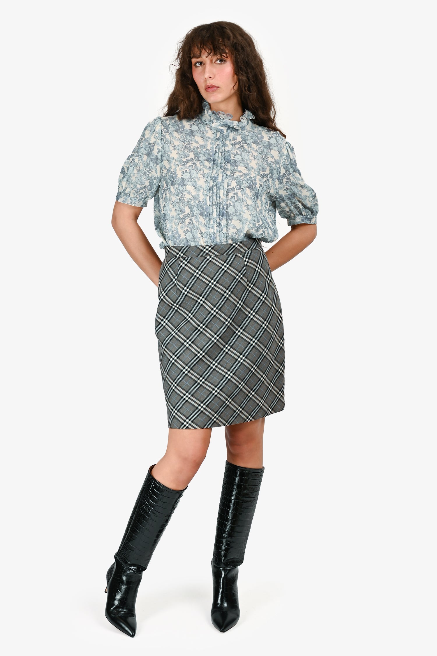 Burberry's Grey/White Novacheck Midi Skirt Size P