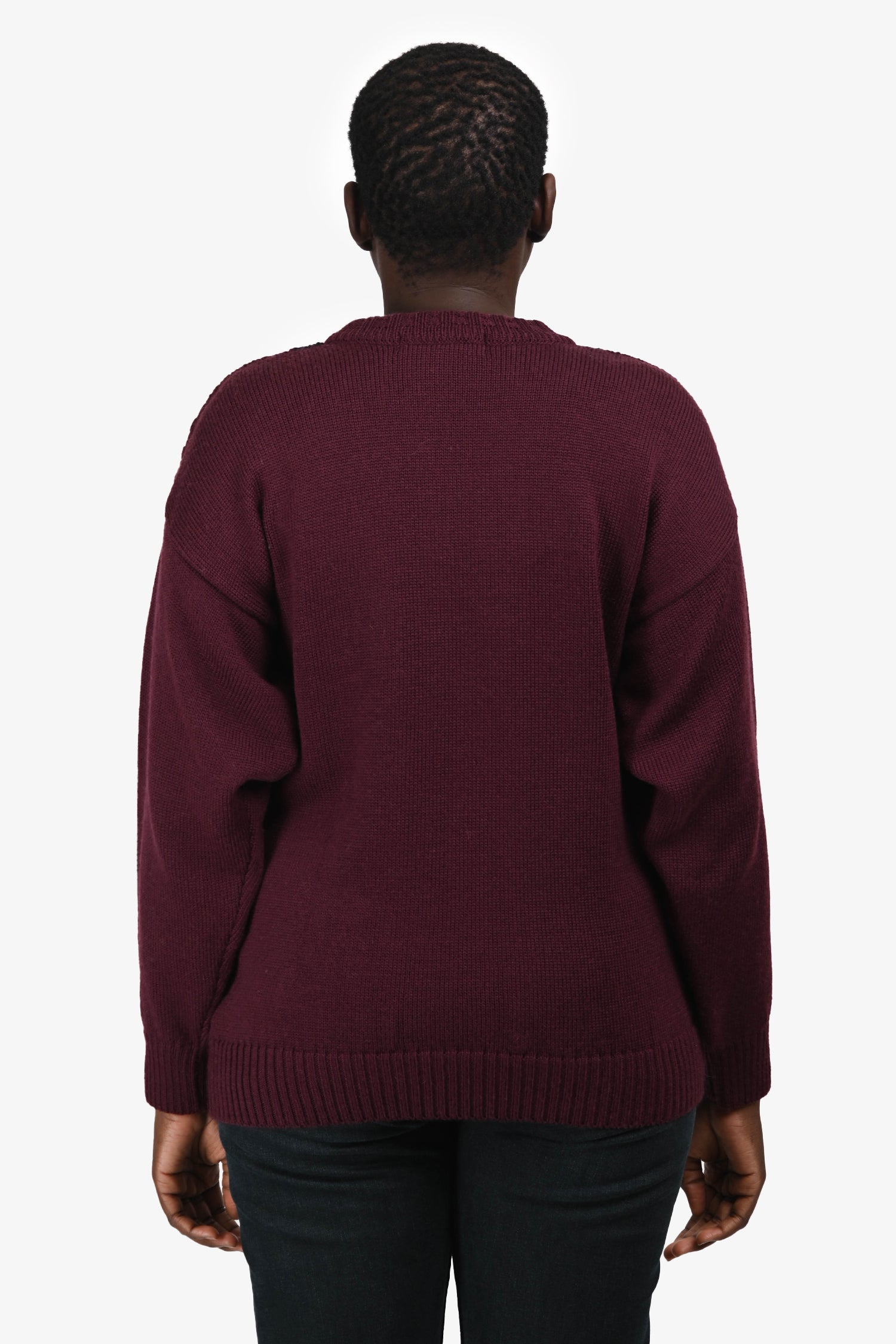 Burberrys Maroon/Navy Wool Embroidered Logo Check Sweater Est. Size M