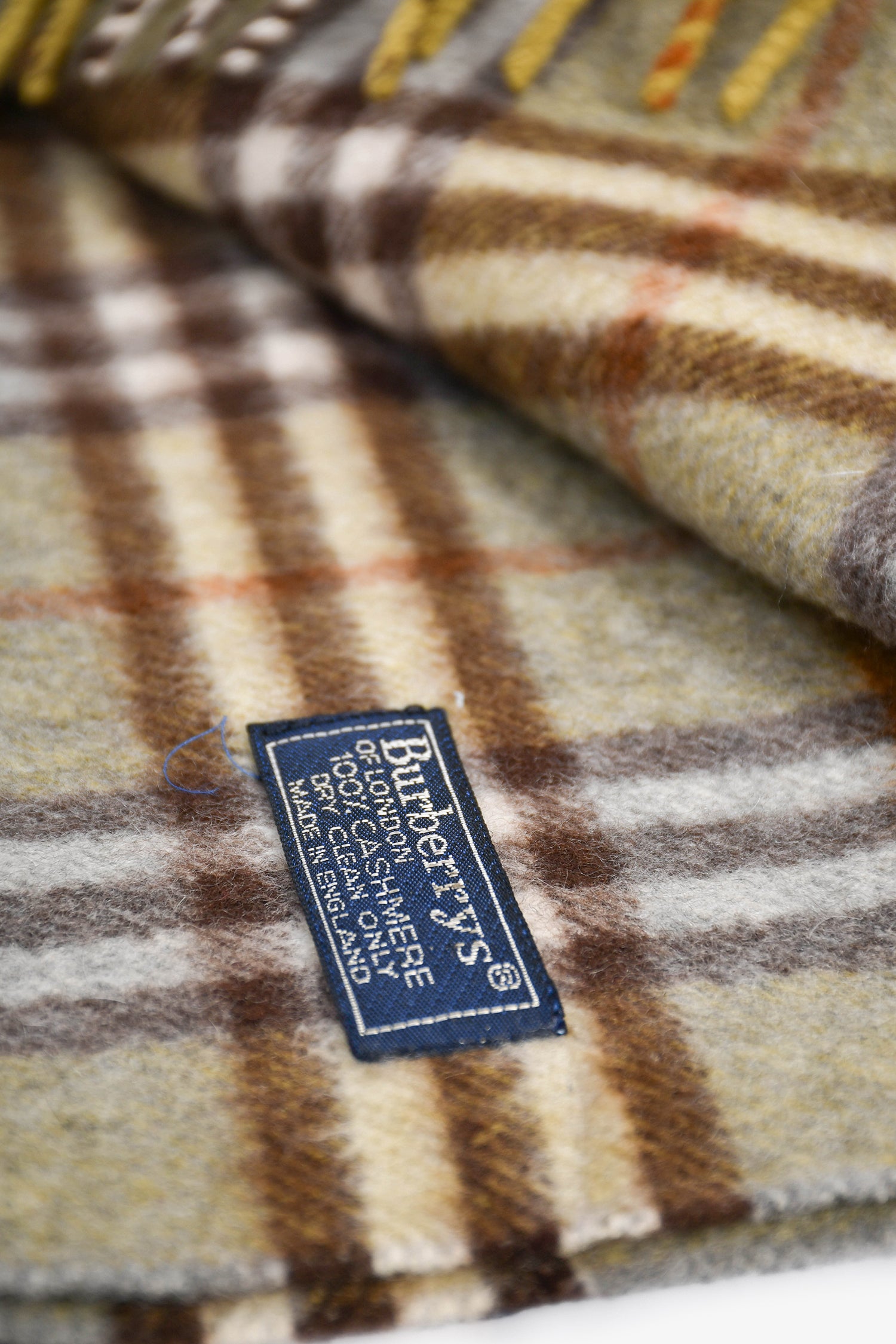 Refresh availabilityBurberrys Vintage Novacheck Cashmere Scarf. Fringe ends. Tonal stitching.