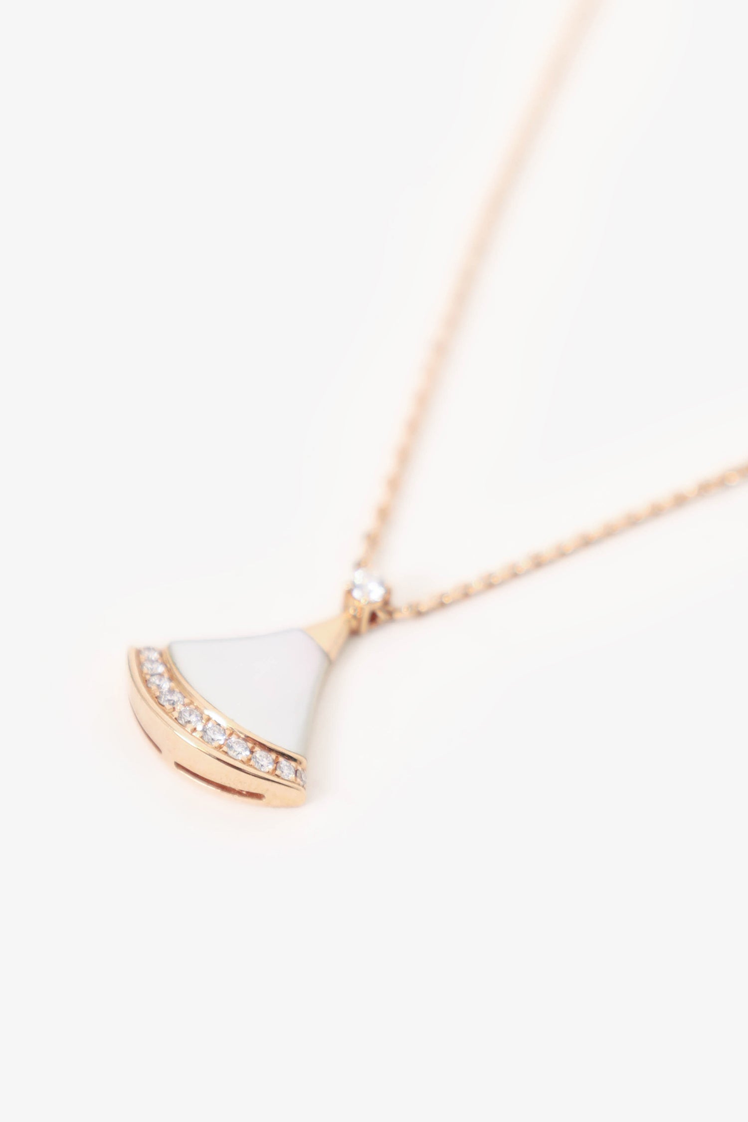 Refresh availabilityBvlgari 18K Rose Gold Mother of Pearl Brilliant Cut Diamond 'Divas Dream' Pendant Necklace. Lobster clasp closure.