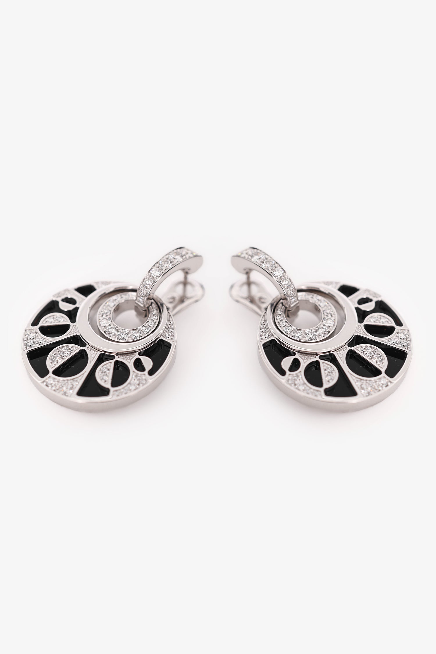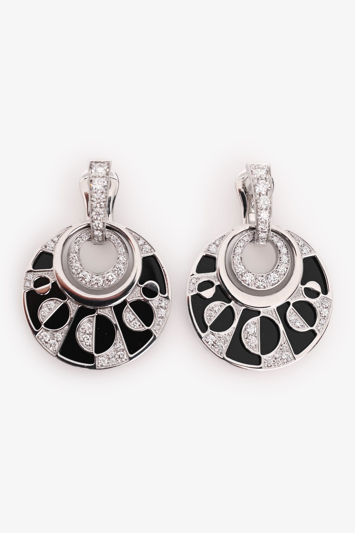 Bvlgari 18K White Gold Diamond/Oynx Set Mediterranean Eden Intarsio Earrings