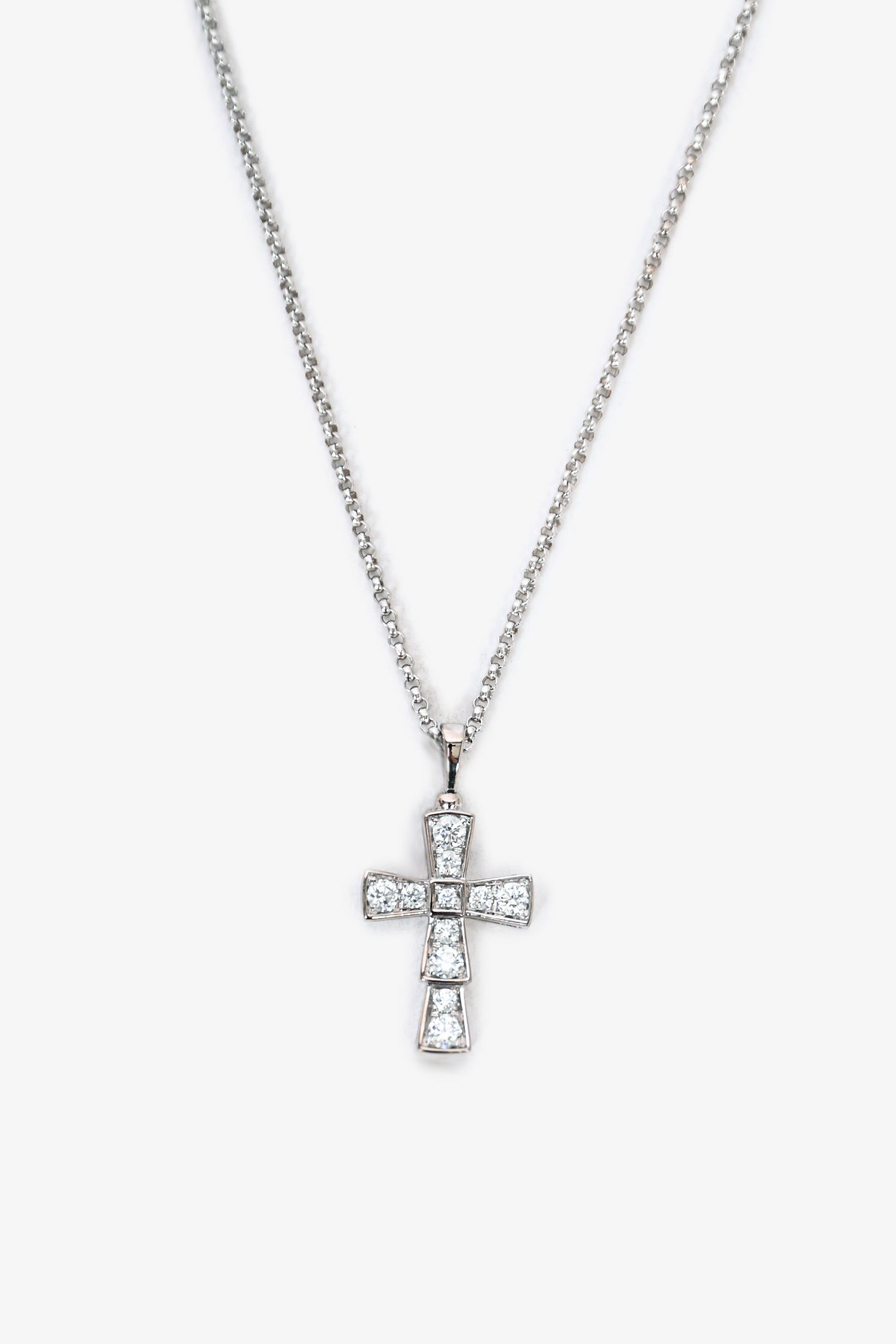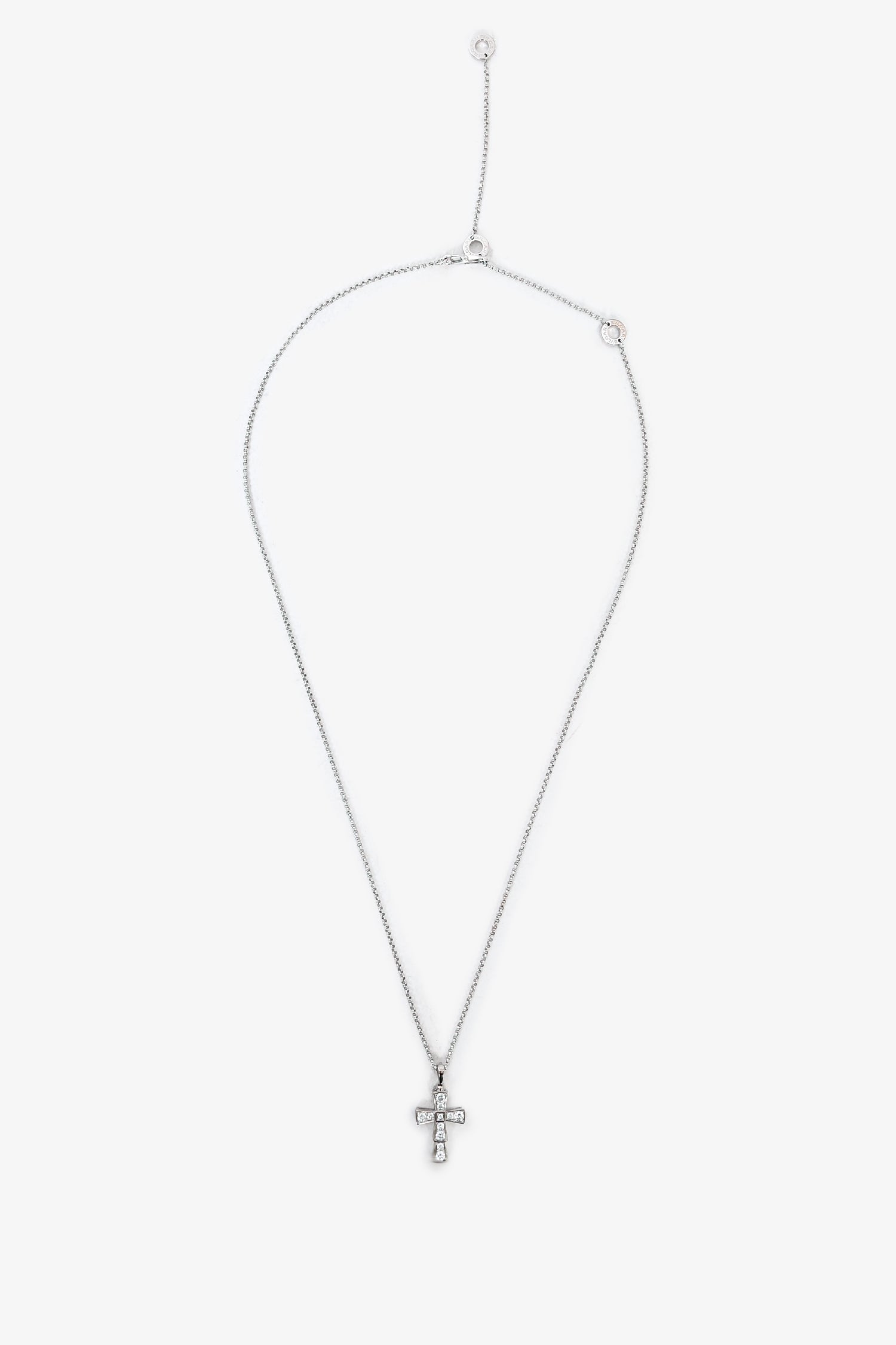 Refresh availabilityBvlgari 18K White Gold Pavé Diamonds Croce Pendant Necklace. Lobster clasp closure.
