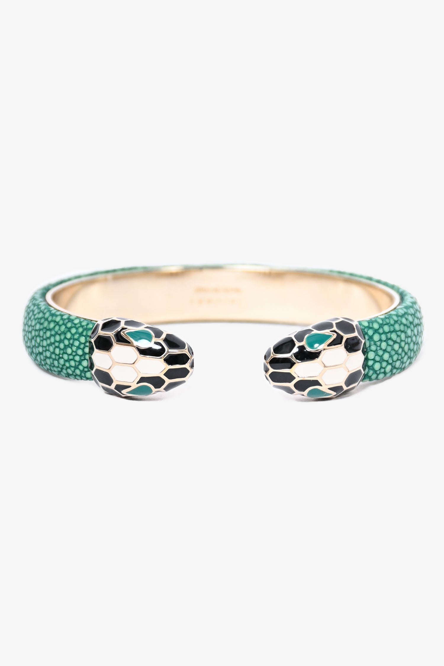 Refresh availabilityBvlgari Green Serpenti Forever Leather Bracelet. Gold-tone hardware.
