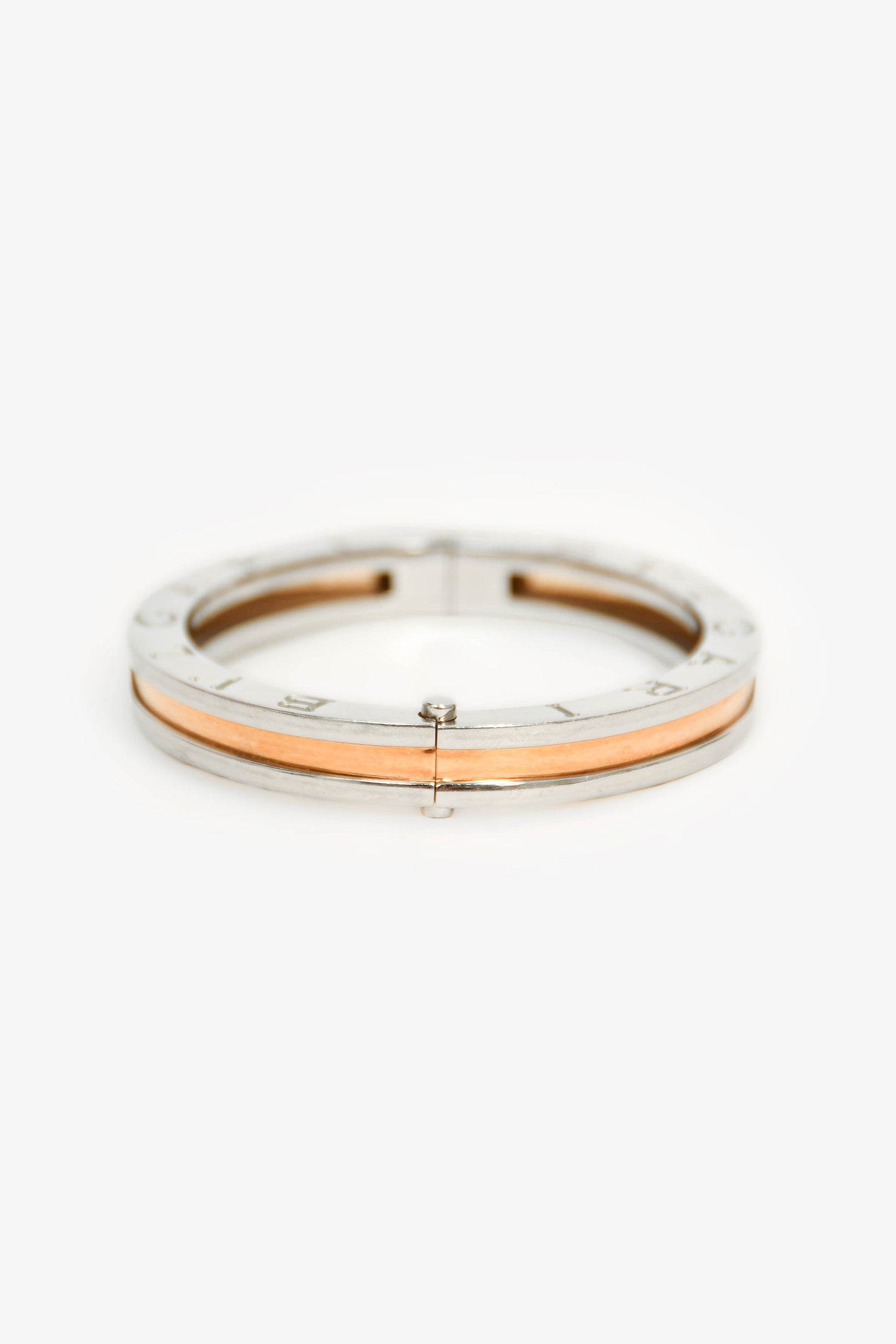 Refresh availabilityBvlgari Stainless Steel/18K Yellow Gold B.Zero1 Bangle Bracelet. Push closure.